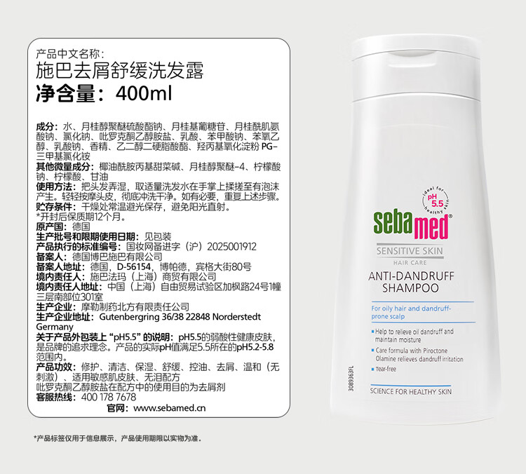 施巴洗发水去屑止痒洗发露控油蓬松洗发液柔顺滋润无硅油 德国进口 【滋润】洗发水400ml*2效期26-4