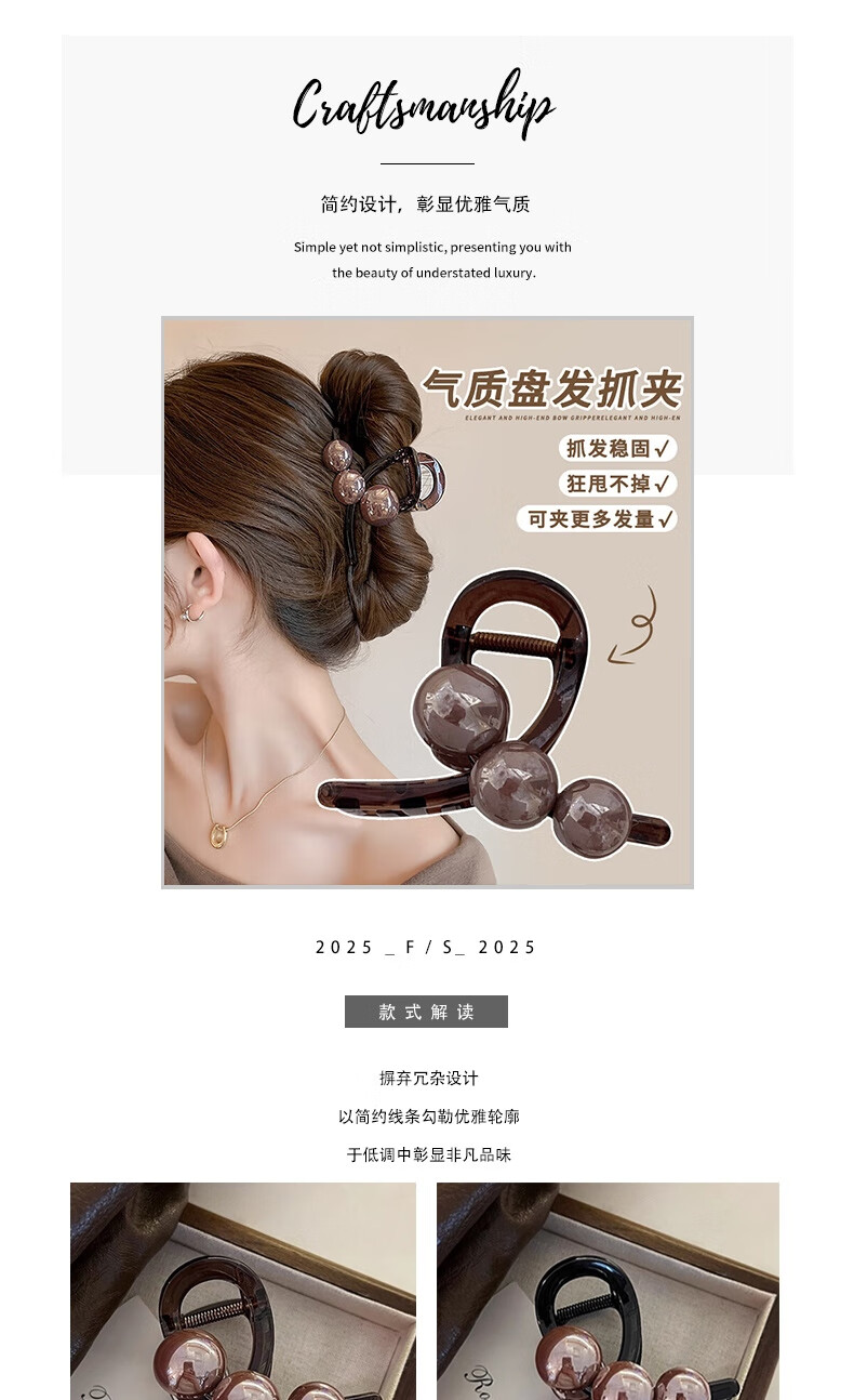 娇雪菲珍珠中号抓夹盘发鲨鱼夹 发夹后脑勺新款高级感夹子头饰发卡女盘