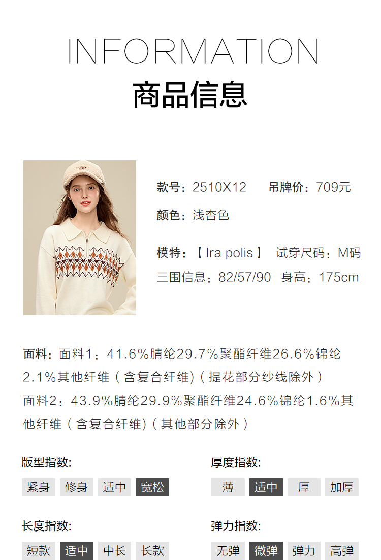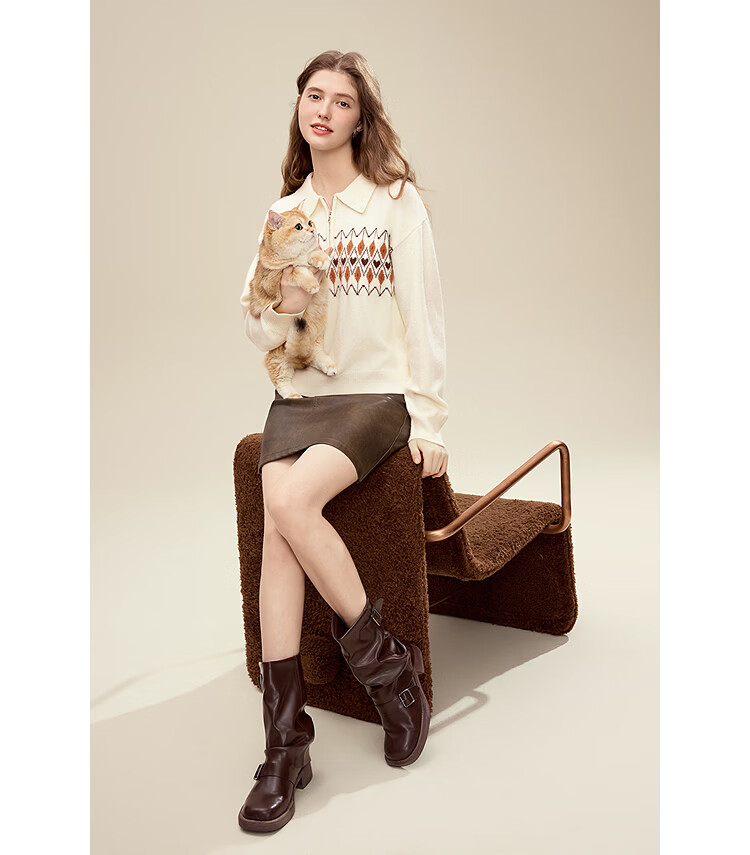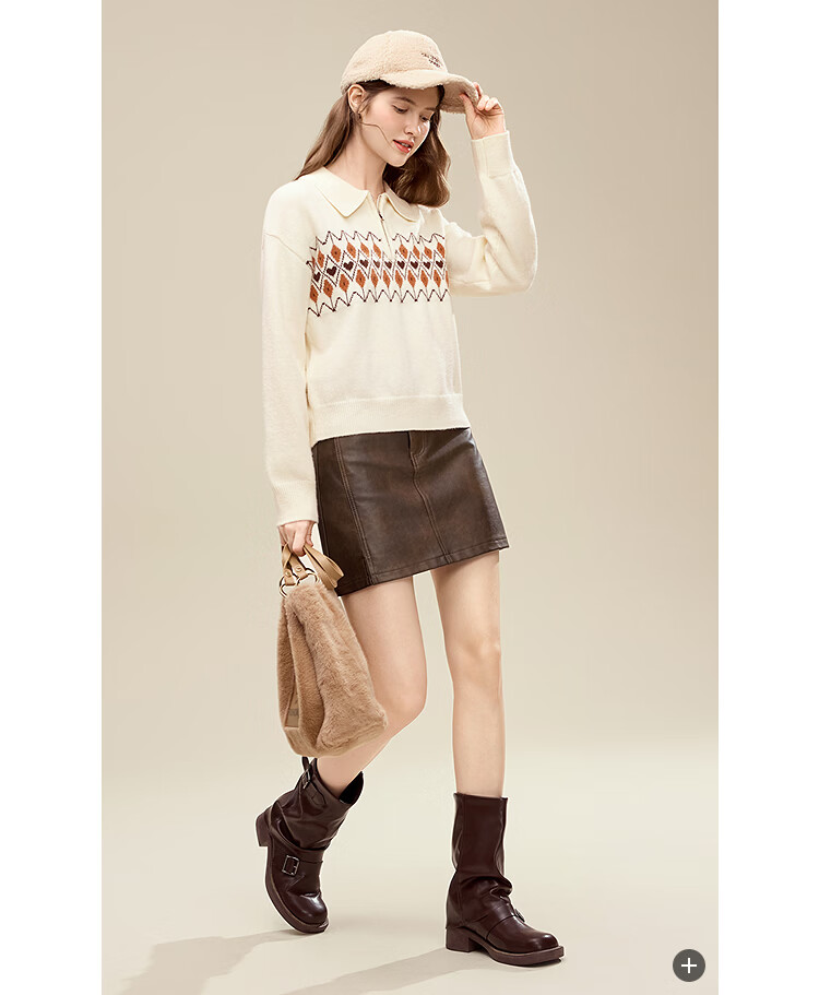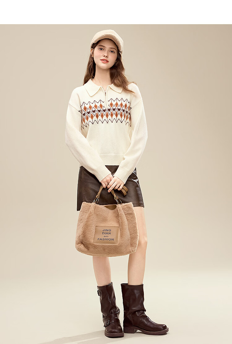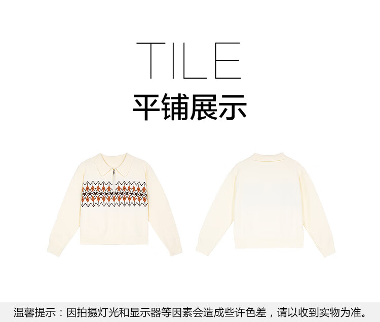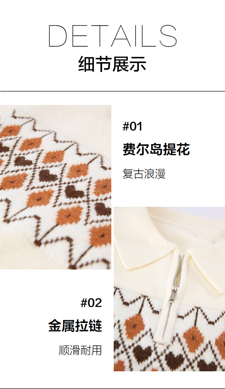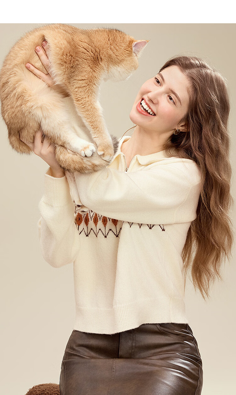 百图(betu)女装2025年冬季新款毛衣半拉链费尔岛提花设计长袖上衣女2510X12 浅杏色 S