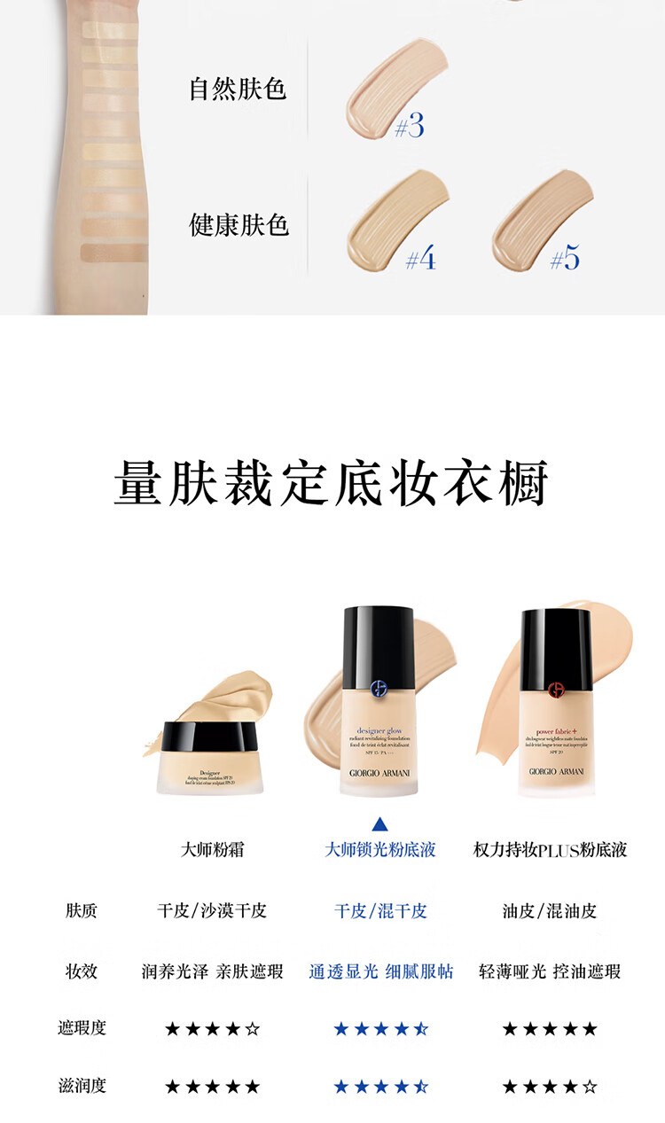 阿玛尼(ARMANI)蓝标大师锁光粉底液#3自然色SPF15/PA+++ 30ml生日新年礼物女