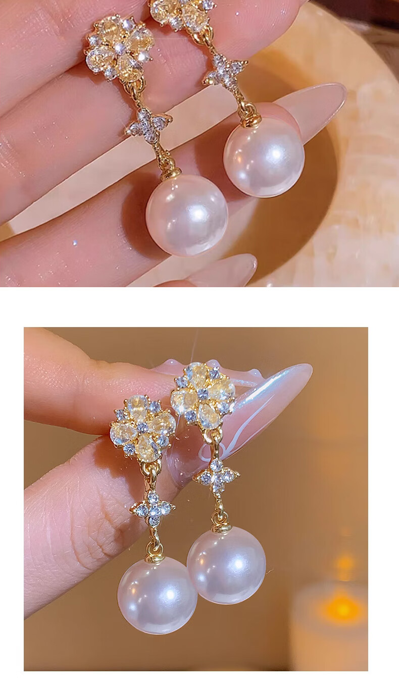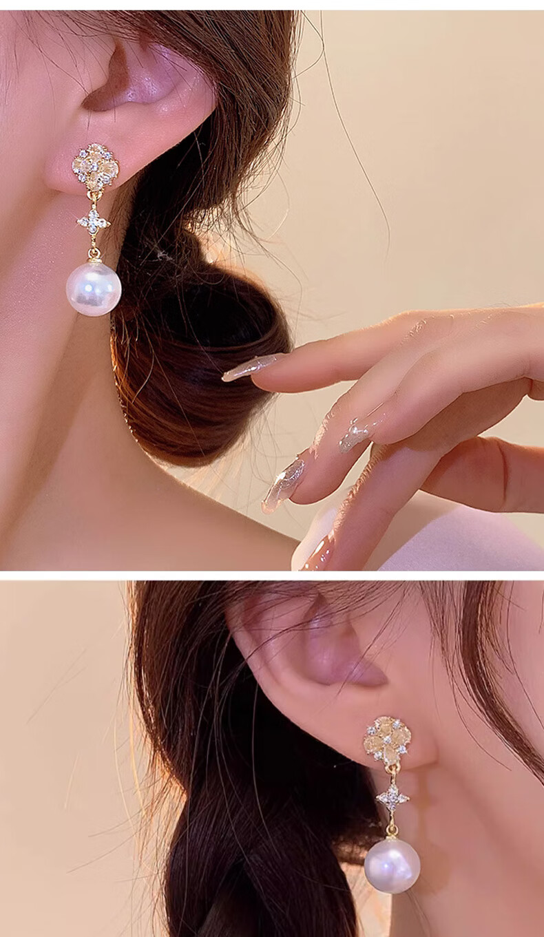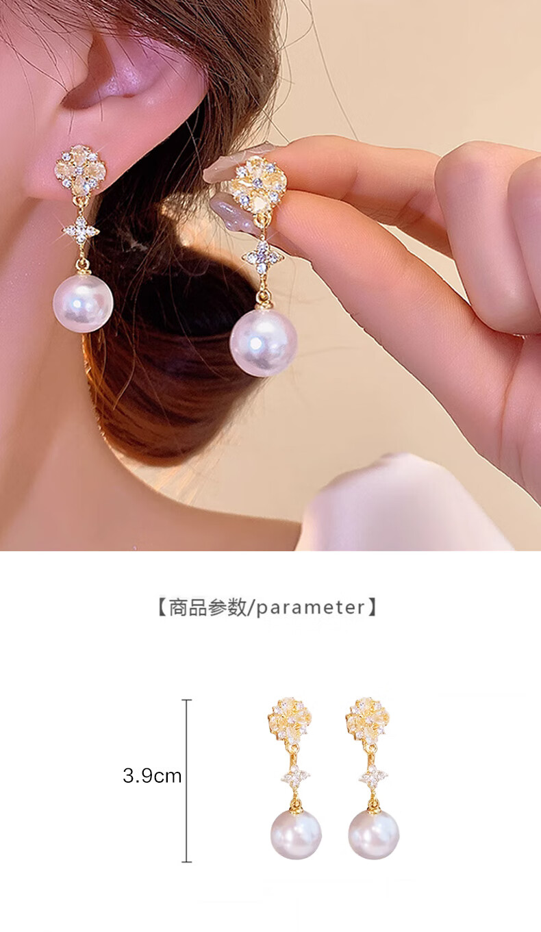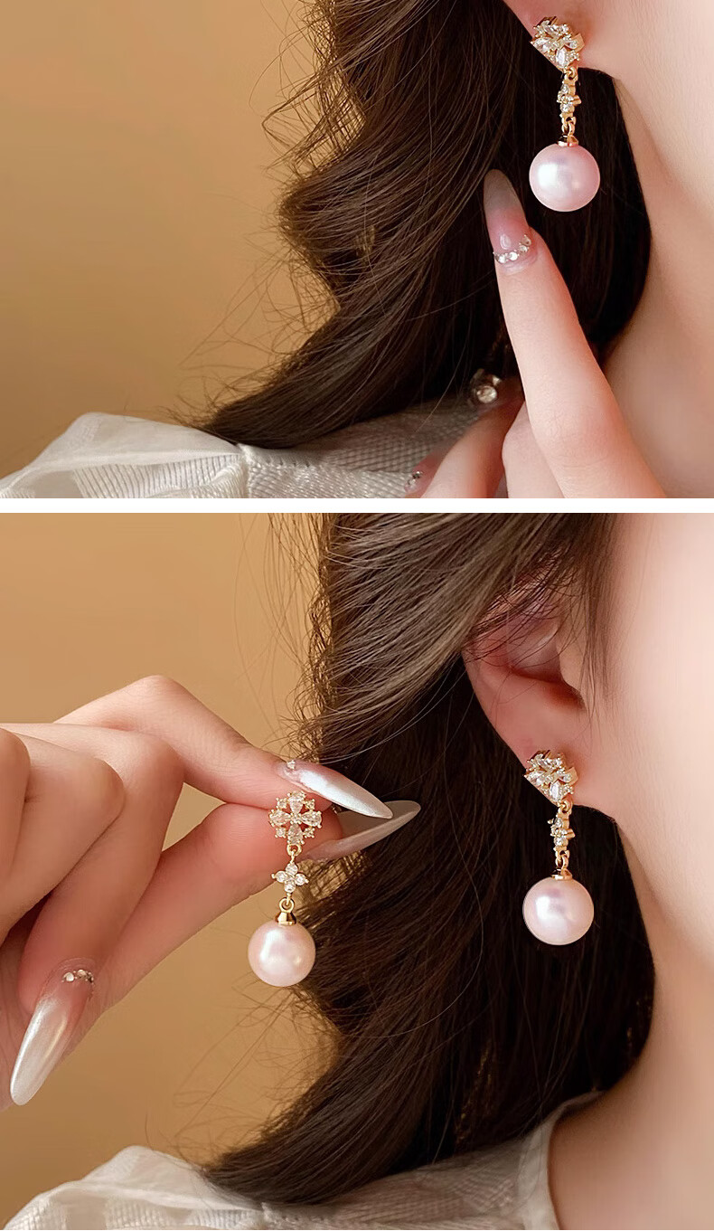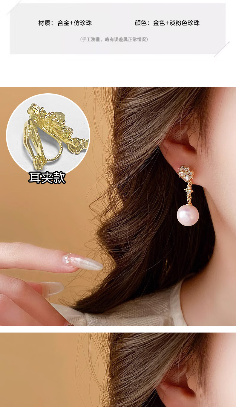 栢启歆珍珠耳夹 耳环无耳洞女耳钉女士仿珍珠方圆脸显脸小耳钉耳饰礼物 水钻珍珠耳夹