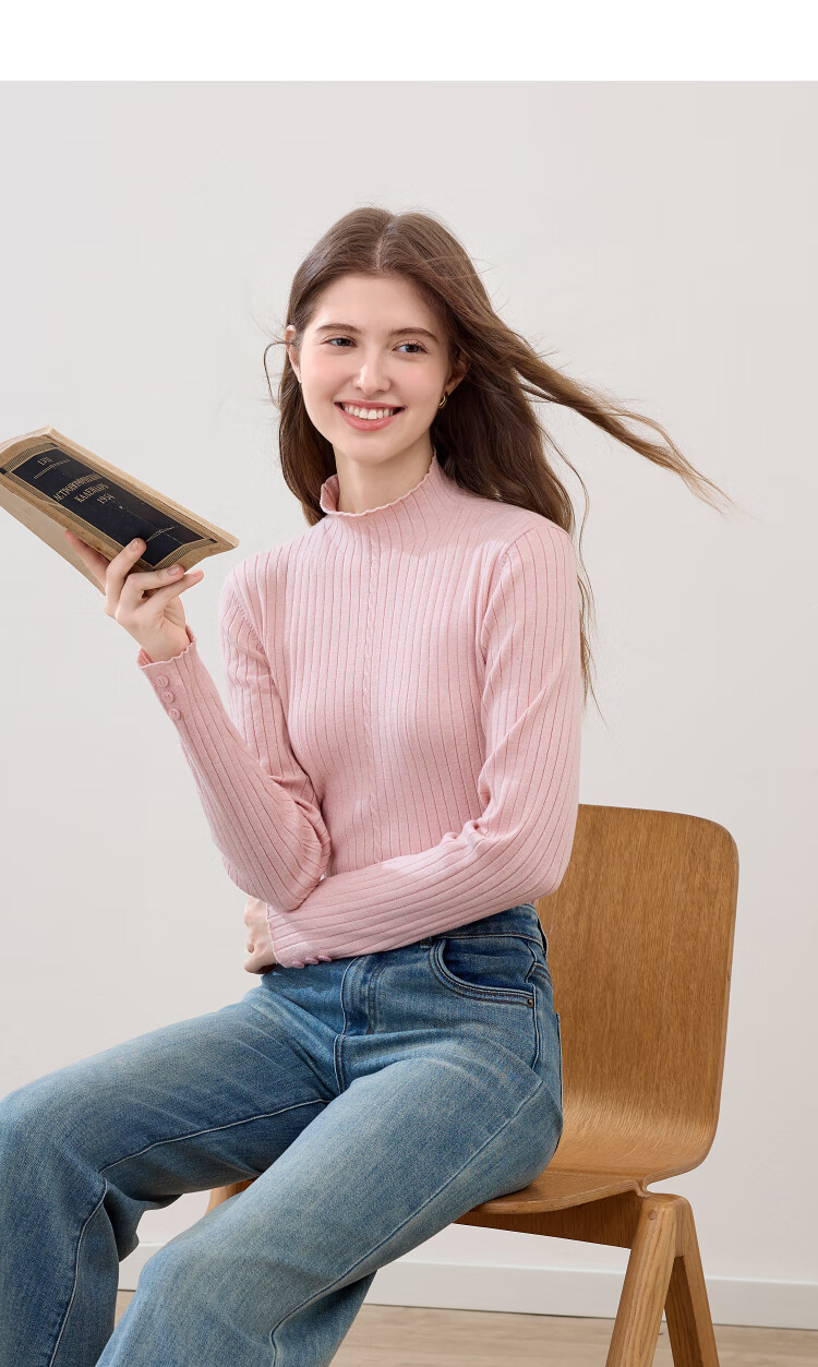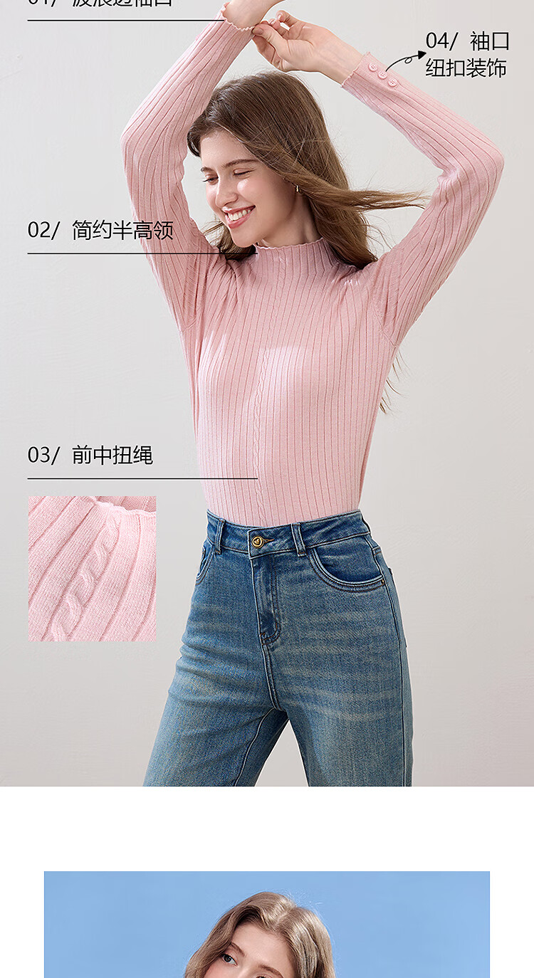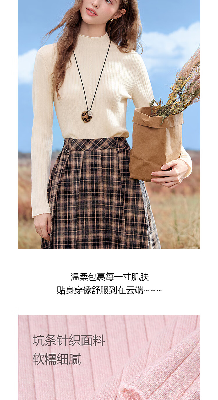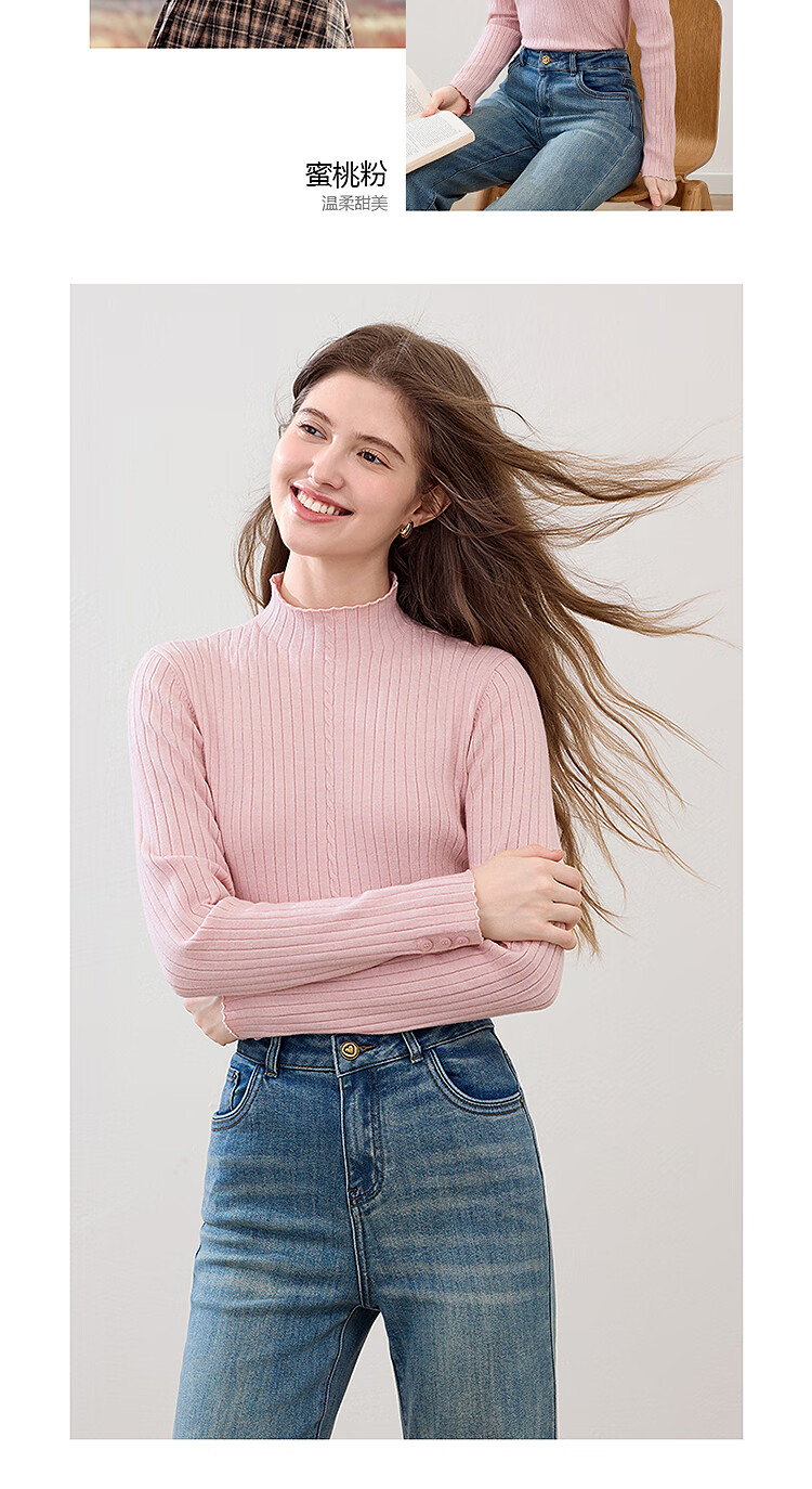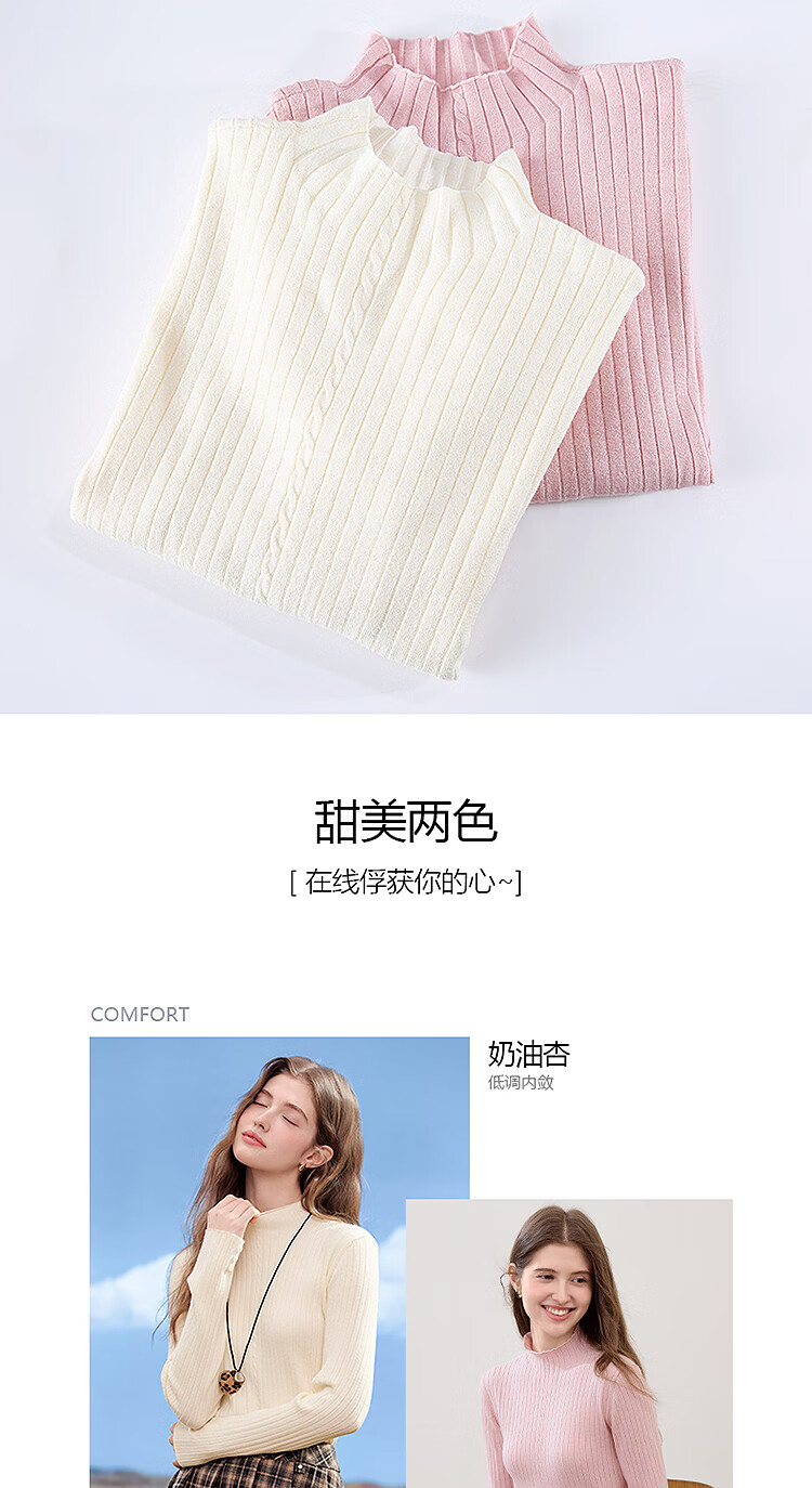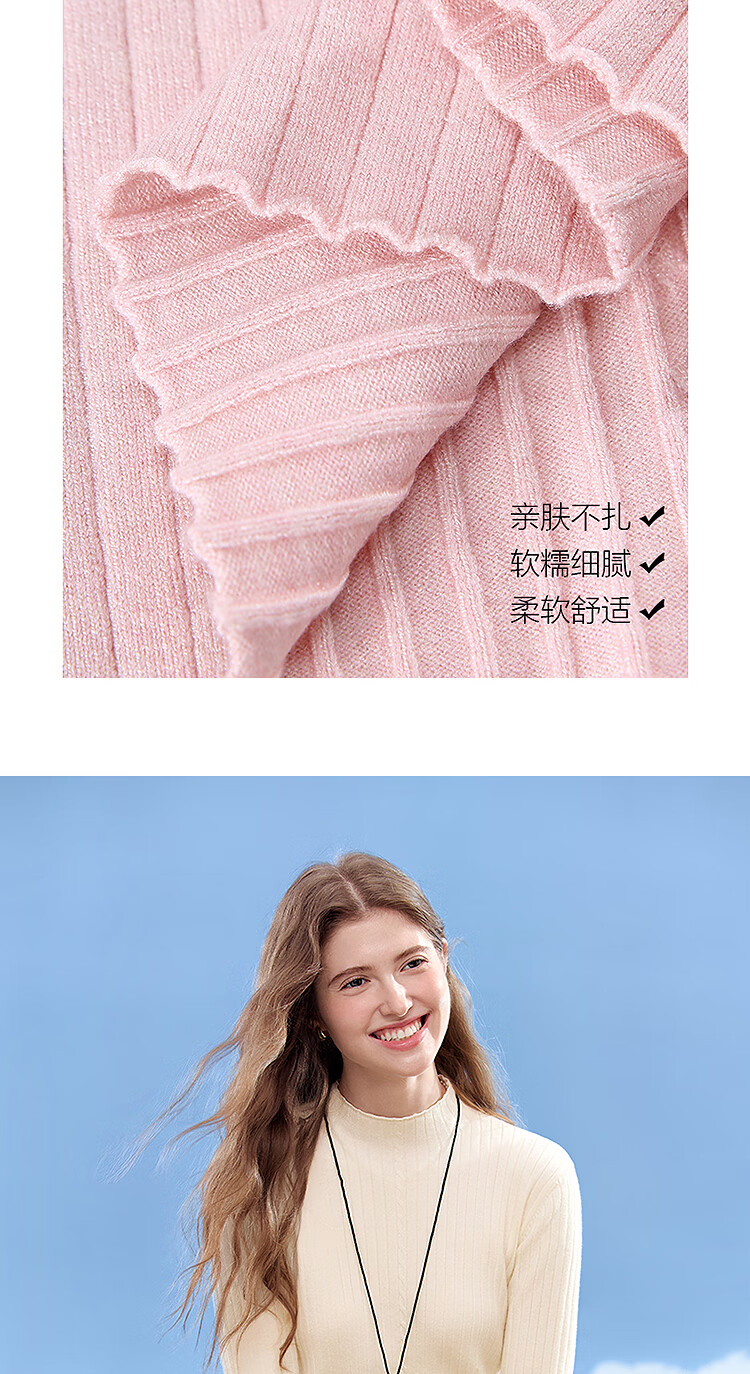 百图(betu)女装2025年秋季新款毛针织衫扭绳简约显瘦长袖打底上衣女2509T29 杏色 M