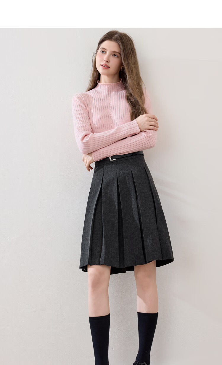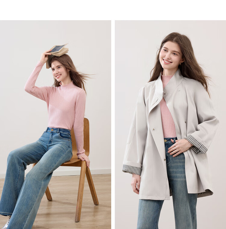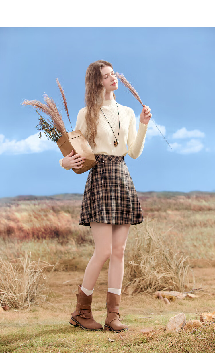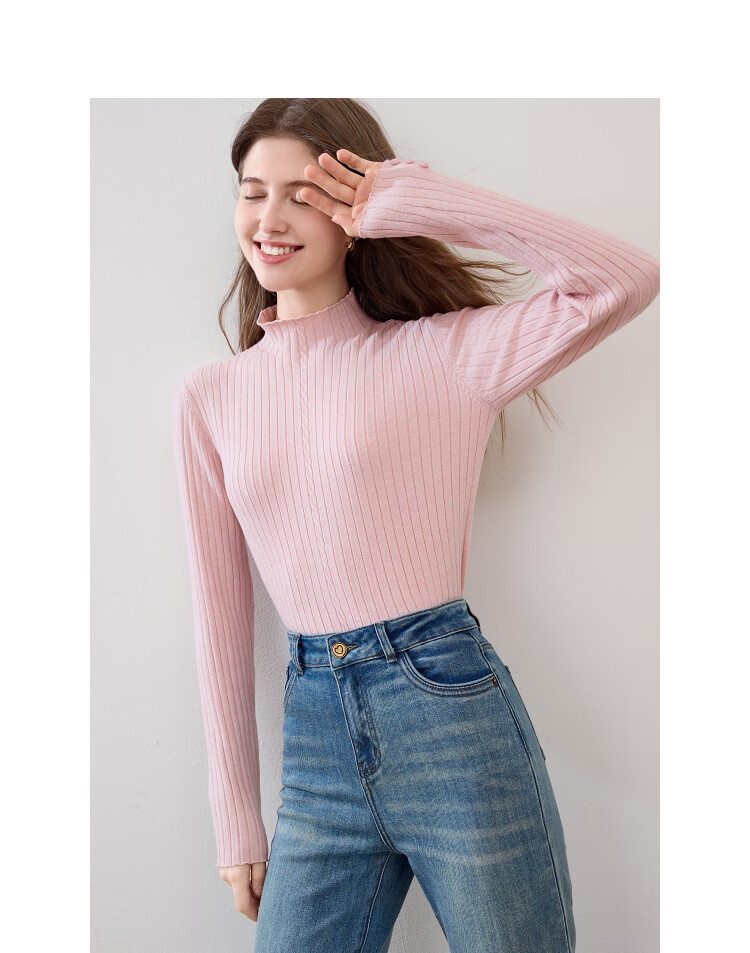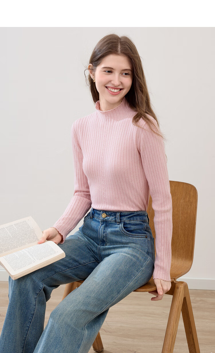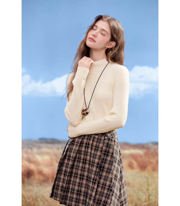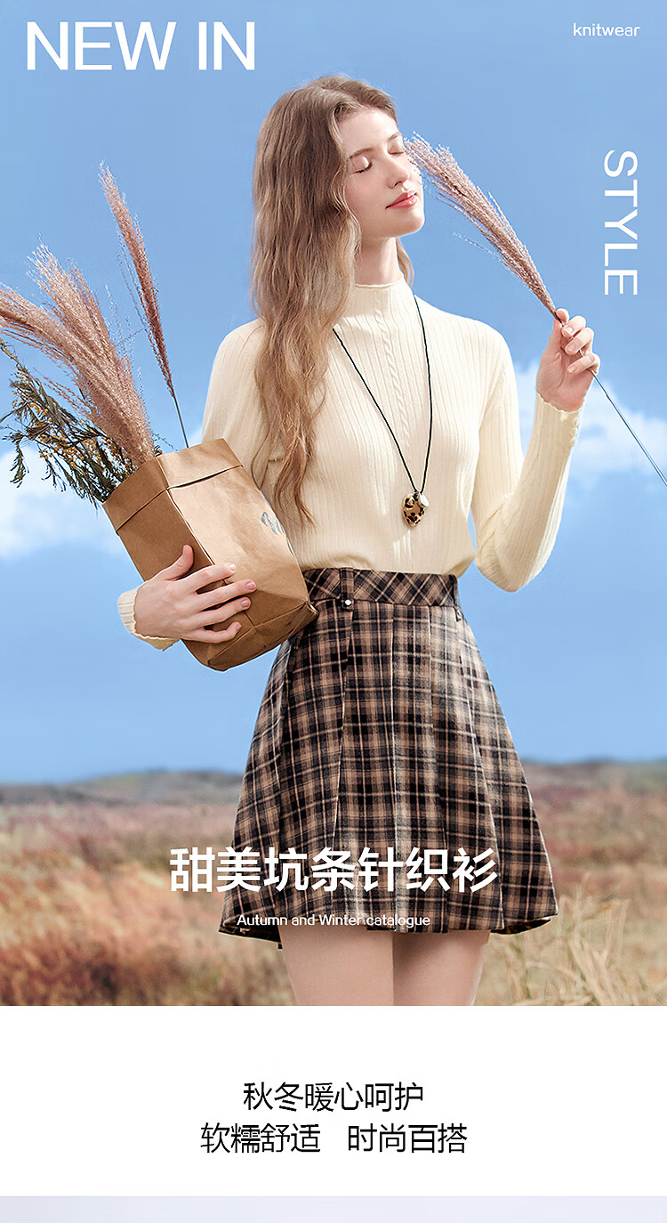百图(betu)女装2025年秋季新款毛针织衫扭绳简约显瘦长袖打底上衣女2509T29 杏色 M