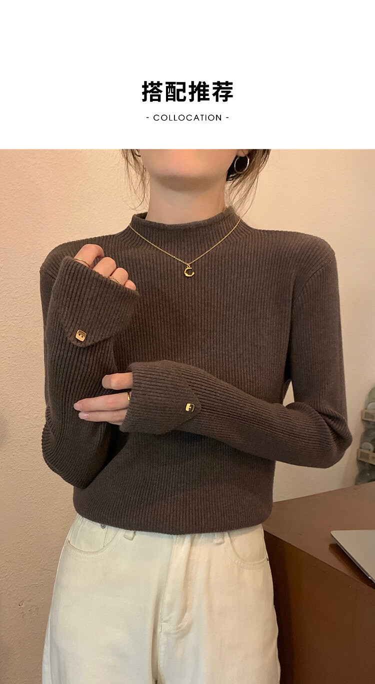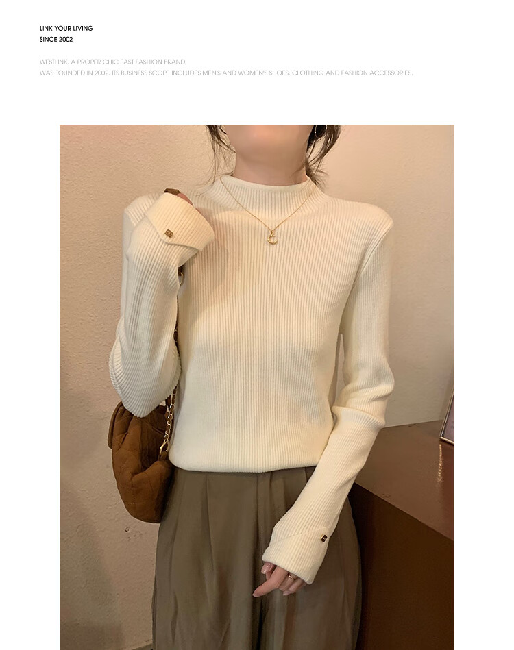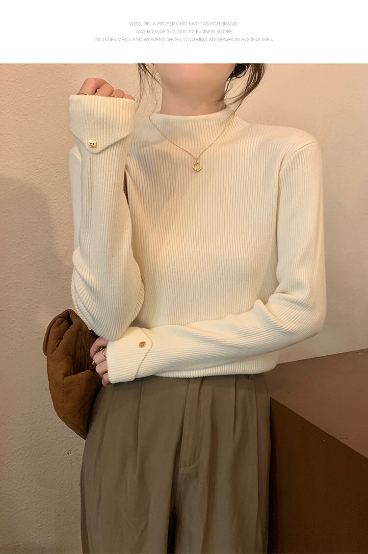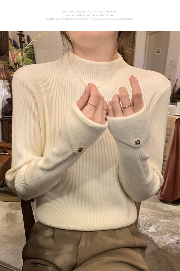 西遇(Westlink)毛衣内搭可外穿女款2025秋冬新款设计感袖口软糯半高领针织衫 杏色 M (160)
