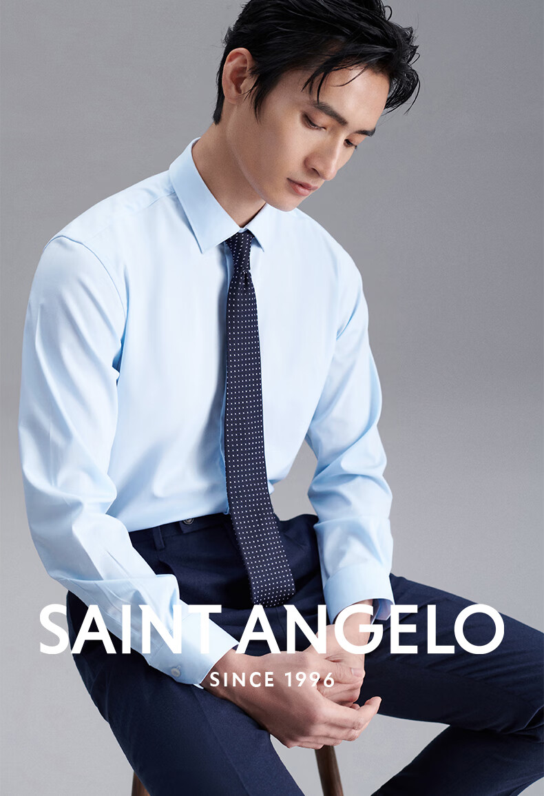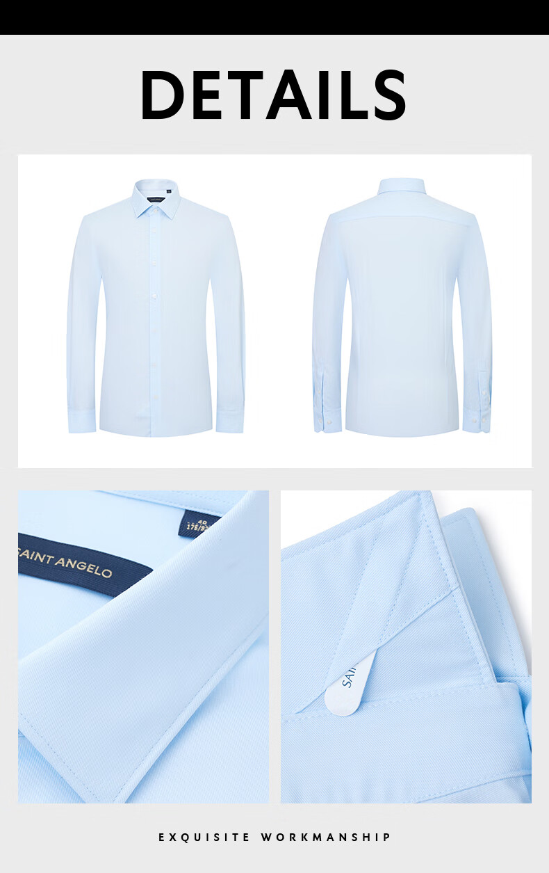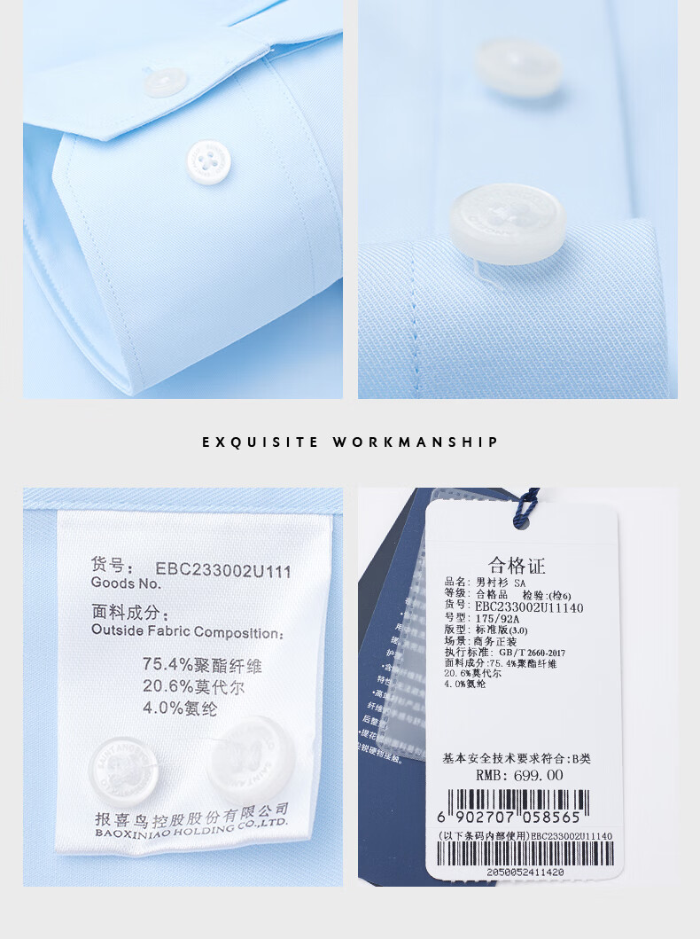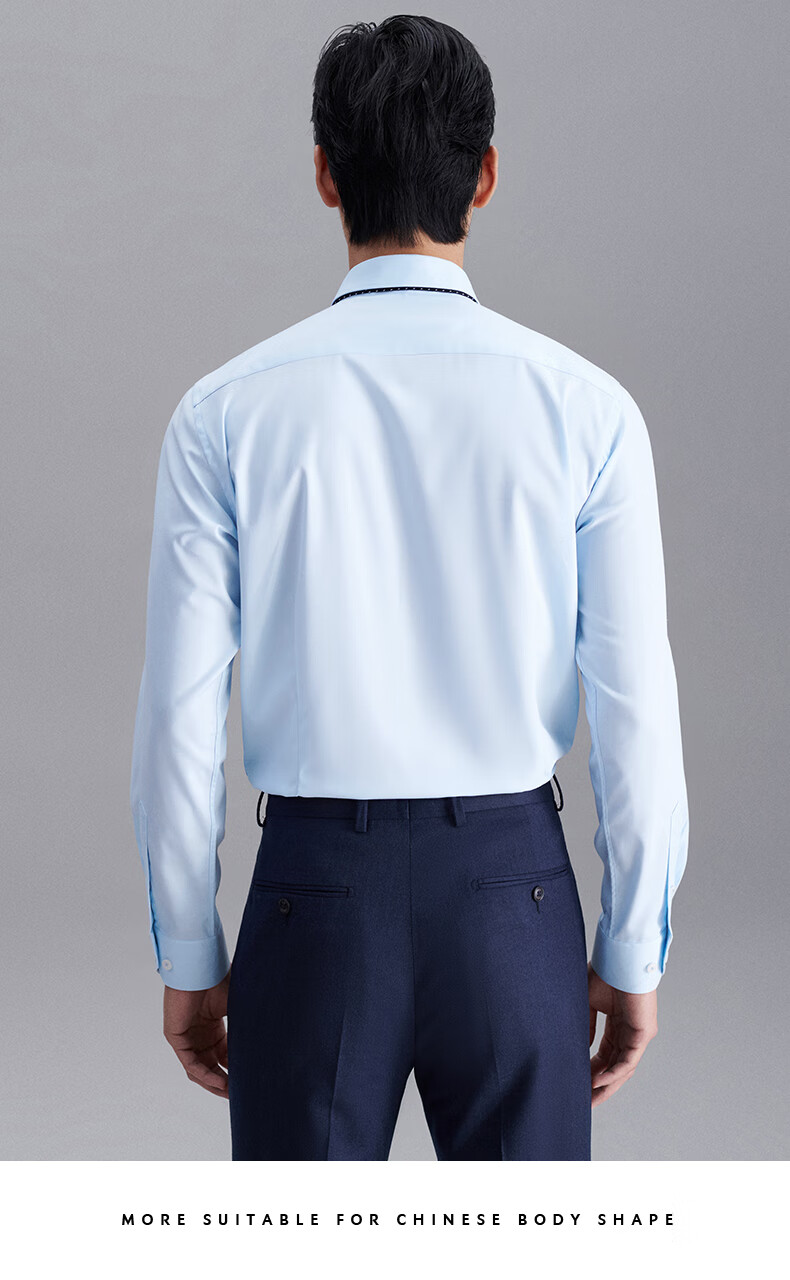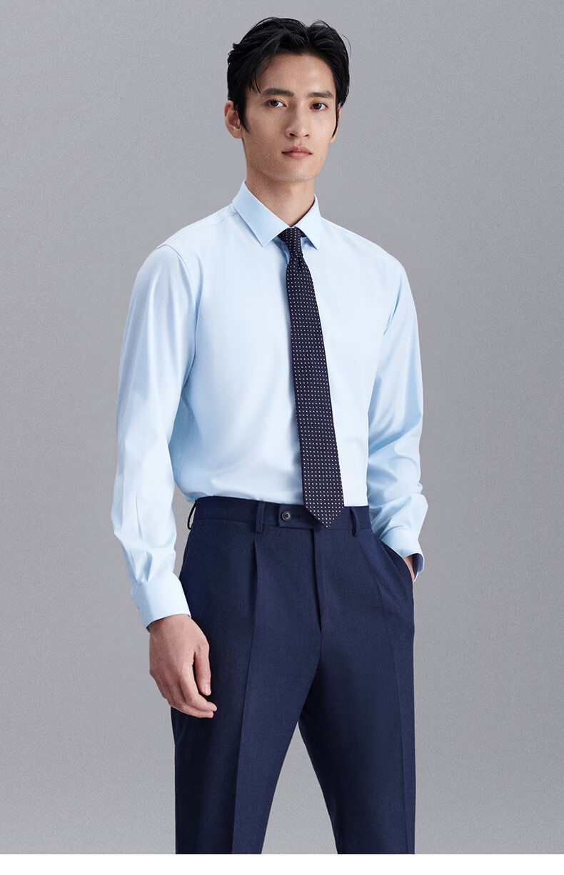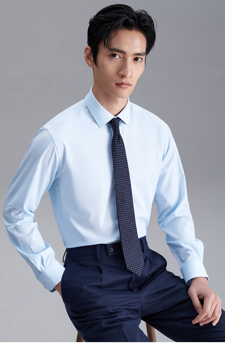 报喜鸟男士商务正装长袖衬衫净色方领职业装衬衣EBC233002U蓝44