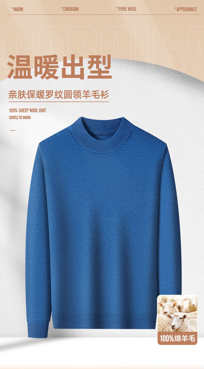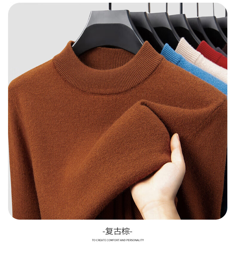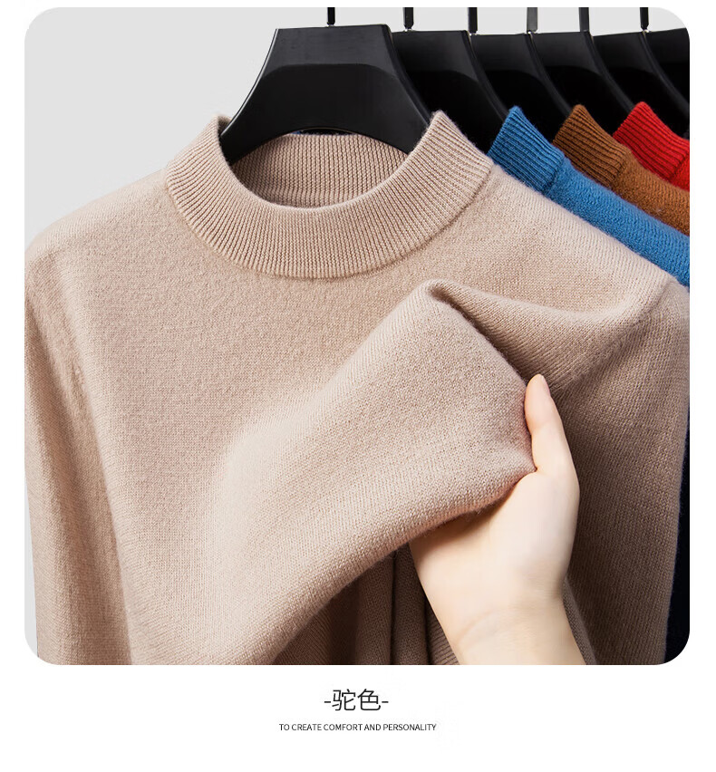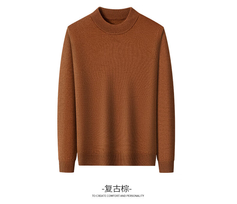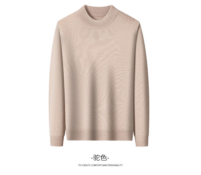 雅鹿【重磅430G】100%纯羊毛衫男加厚秋冬季新款红色毛衣半高领针织衫 驼色 2XL /185