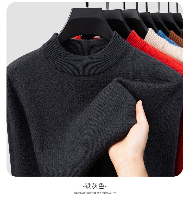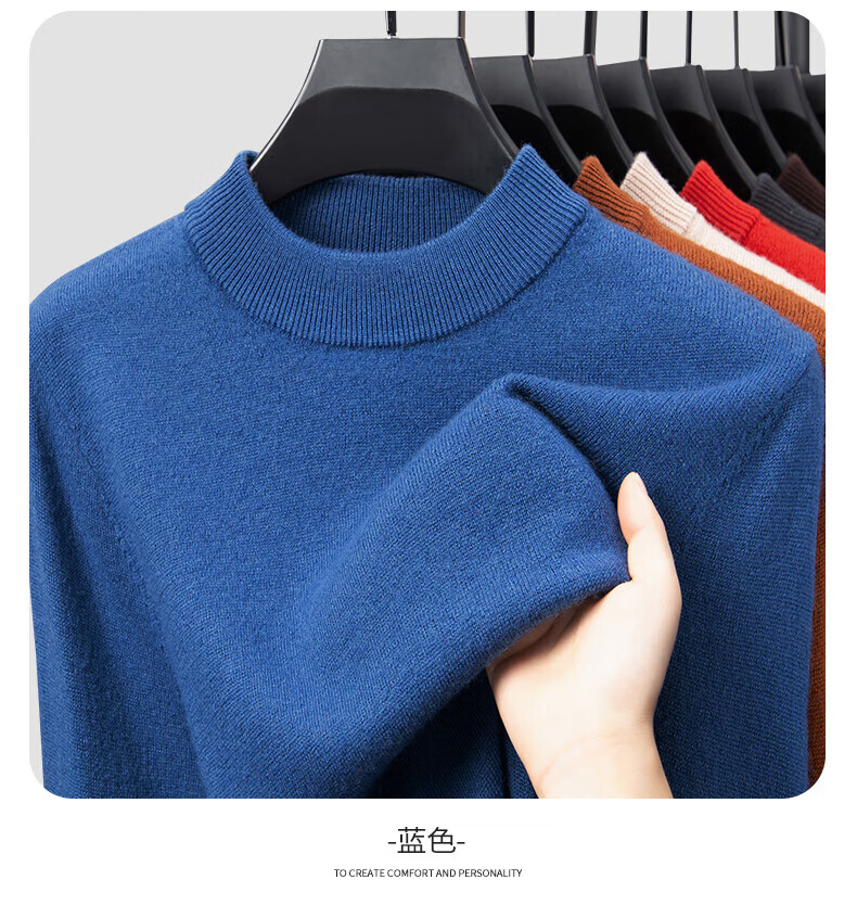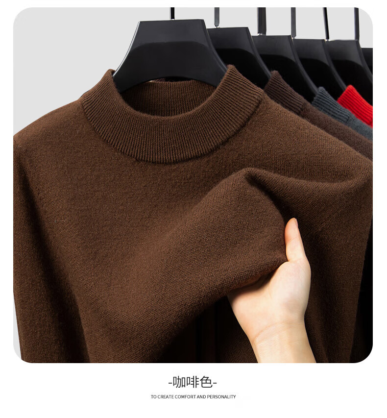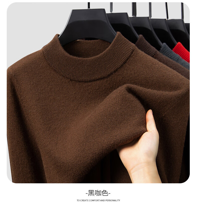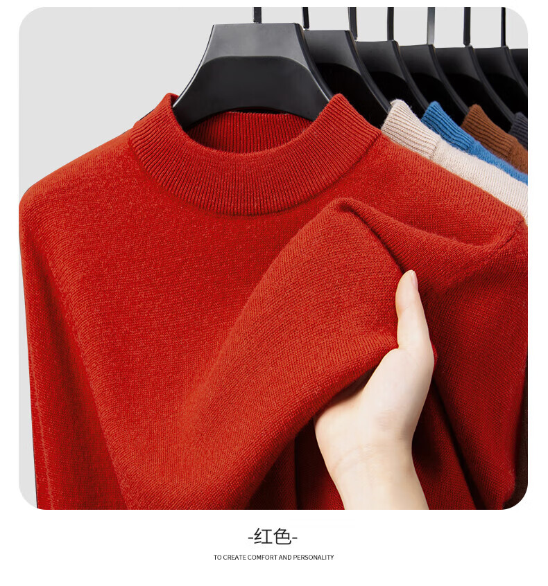 雅鹿【重磅430G】100%纯羊毛衫男加厚秋冬季新款红色毛衣半高领针织衫 驼色 2XL /185