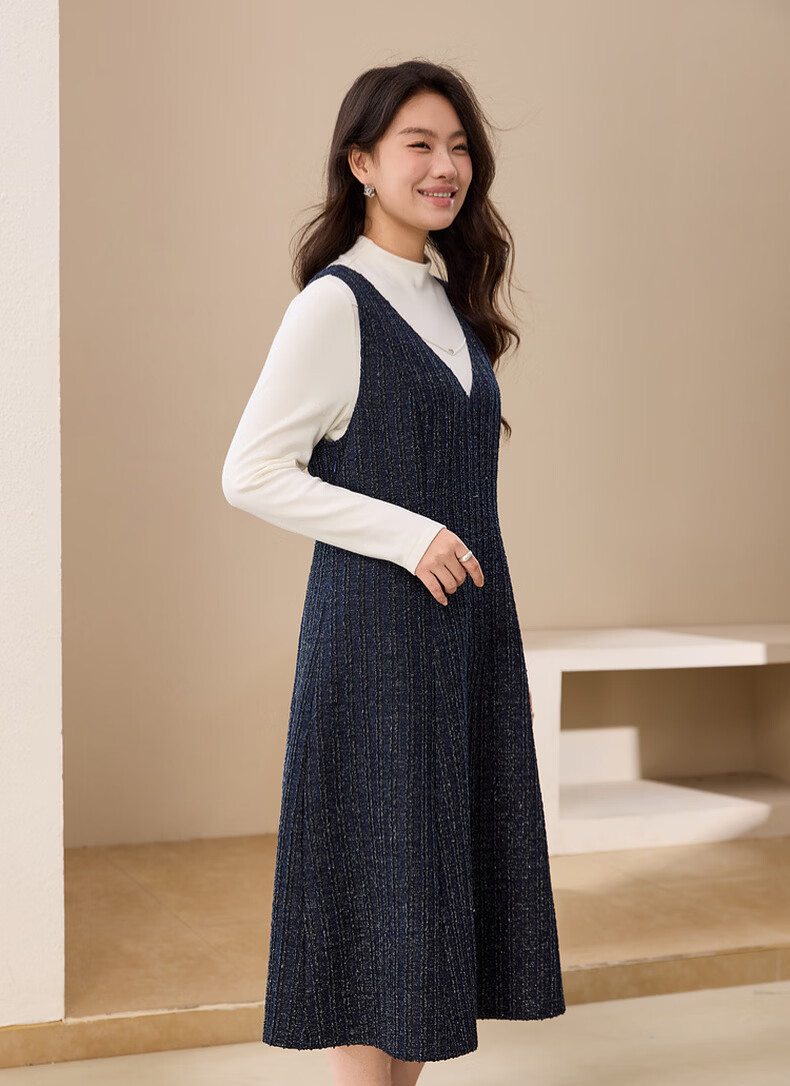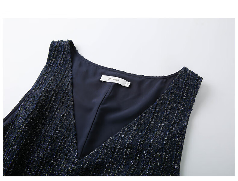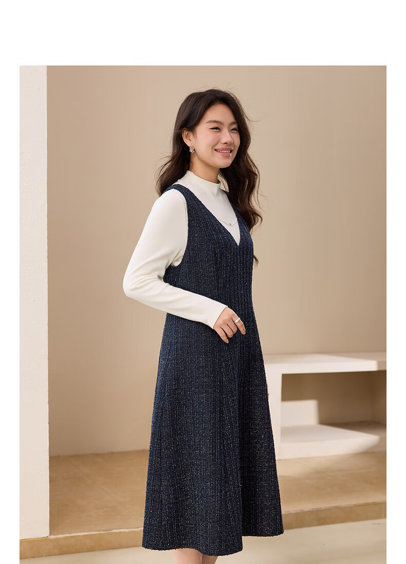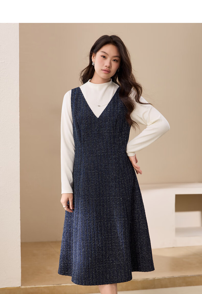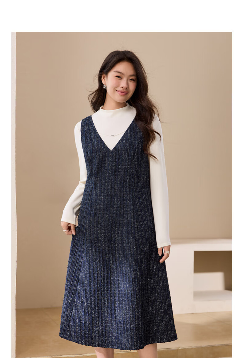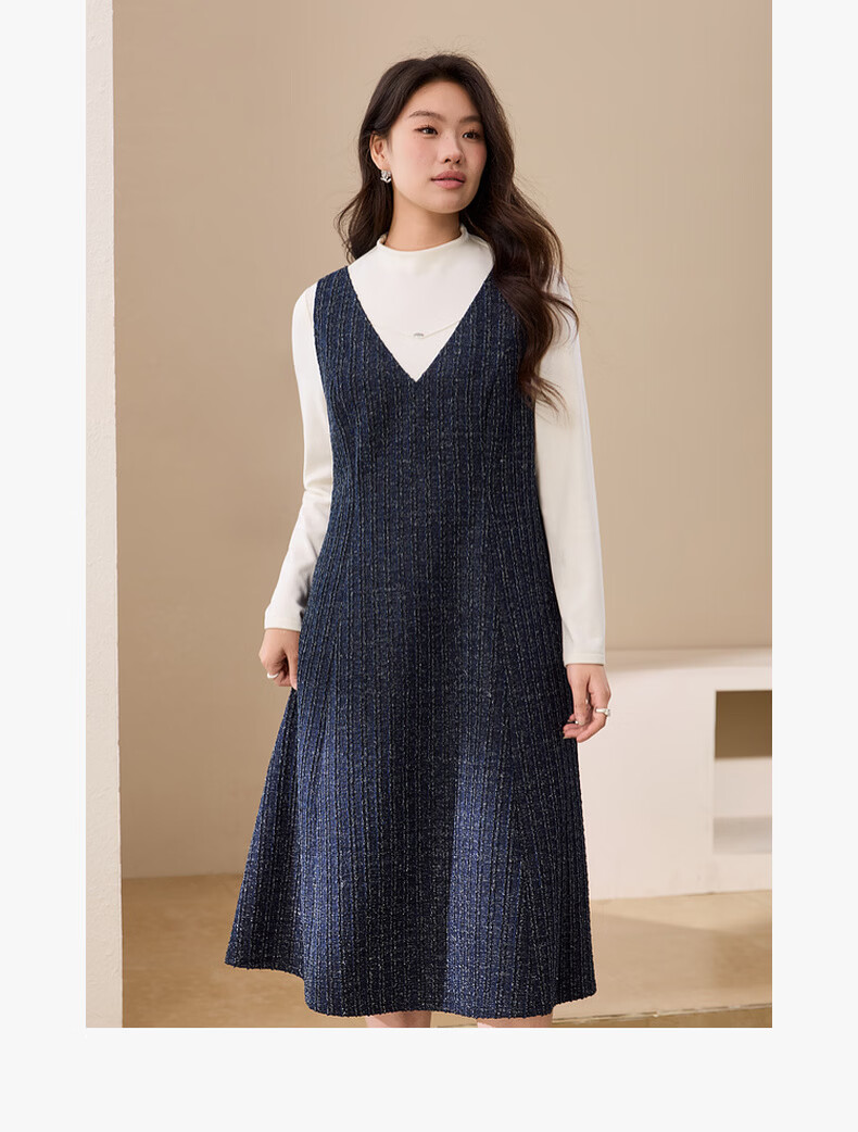 纤莉秀【V领无袖叠穿连衣裙】大码女装轻熟风背心裙胖mm冬装新款4724 深蓝色 5XL