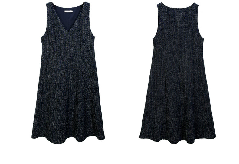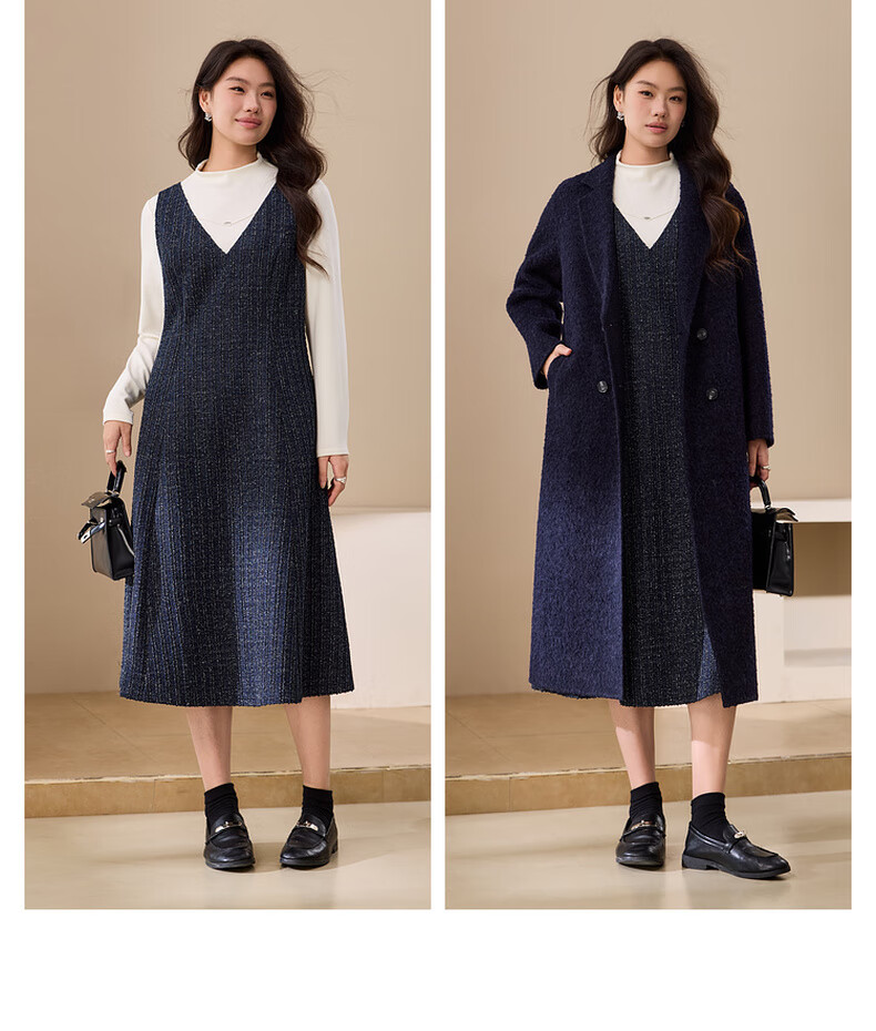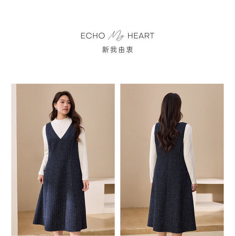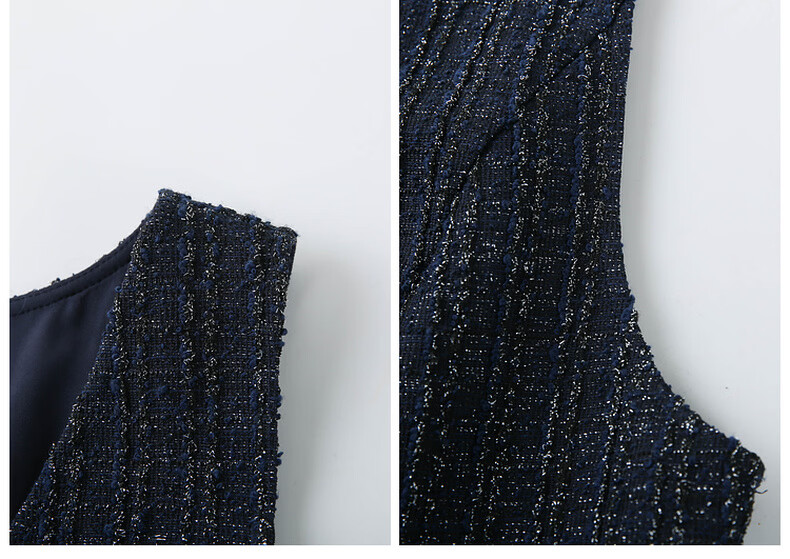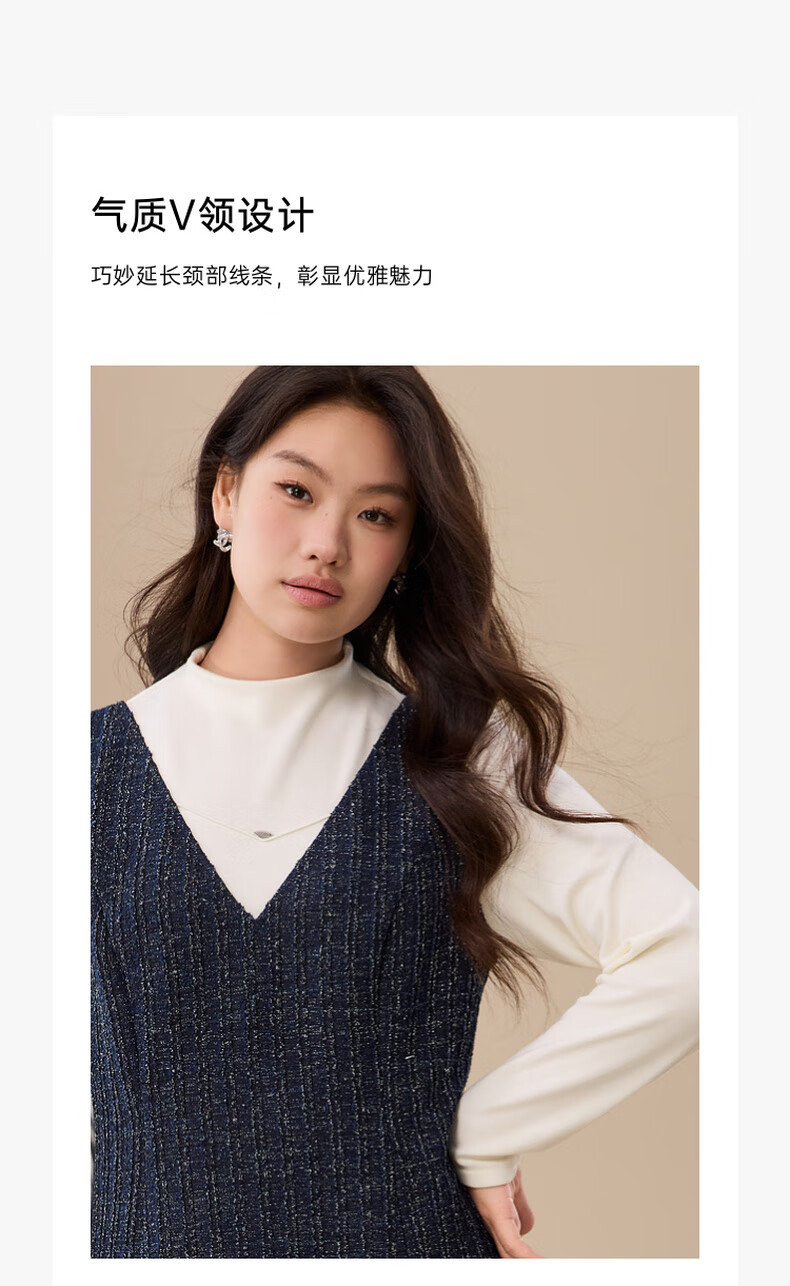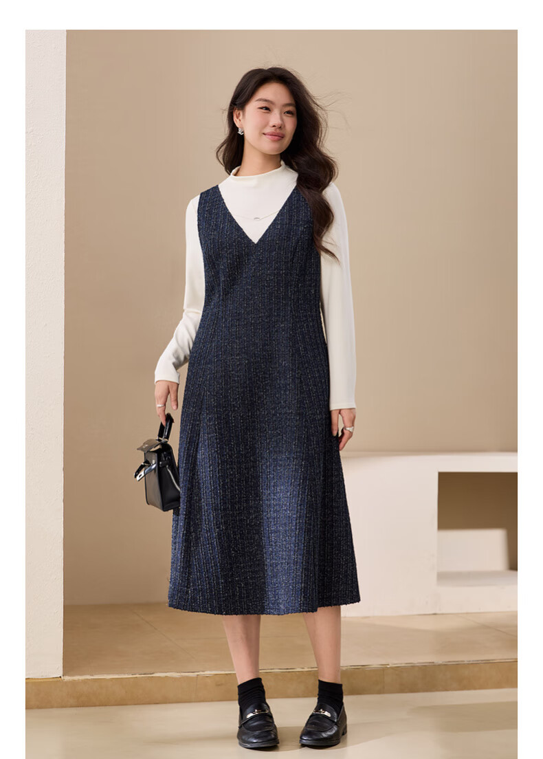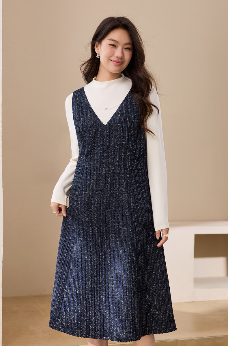 纤莉秀【V领无袖叠穿连衣裙】大码女装轻熟风背心裙胖mm冬装新款4724 深蓝色 5XL