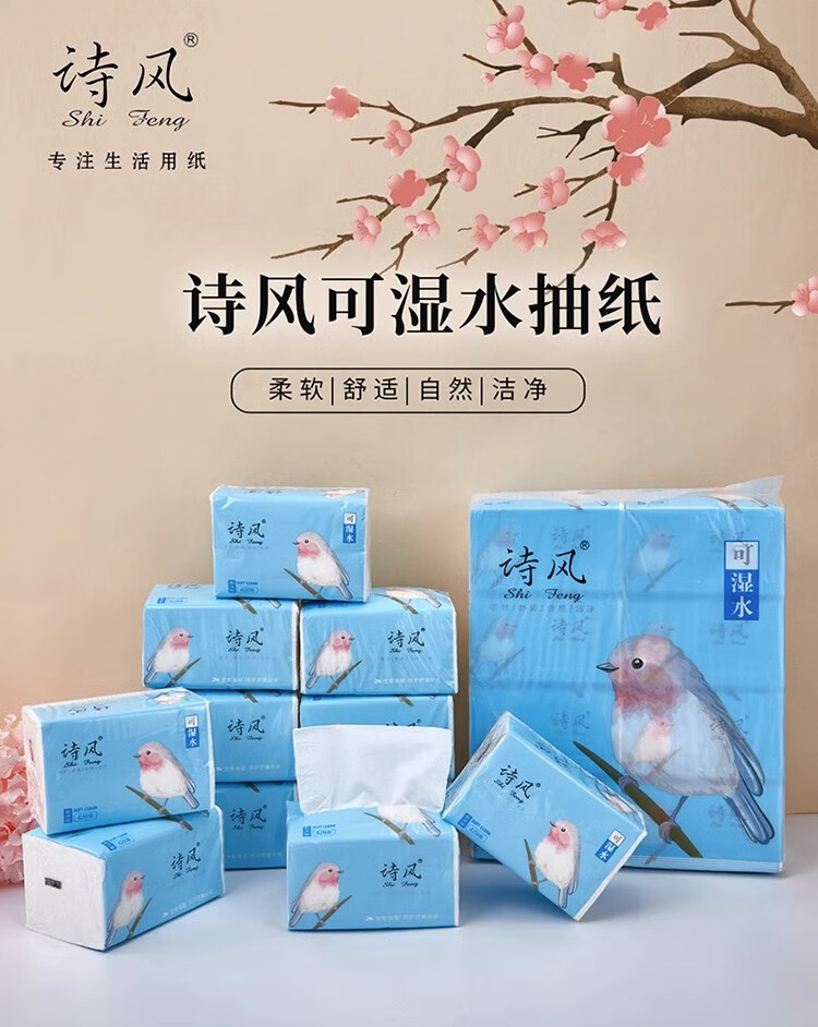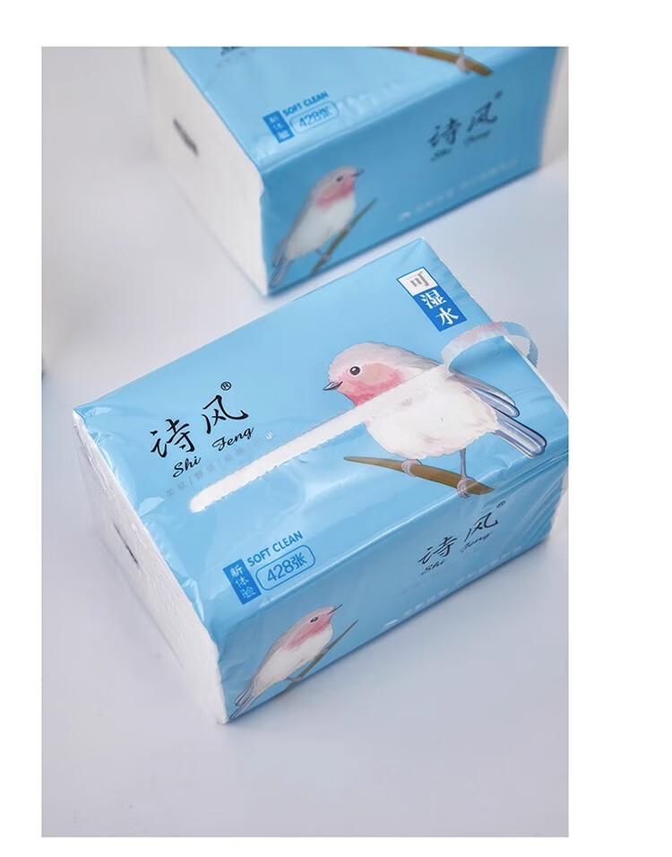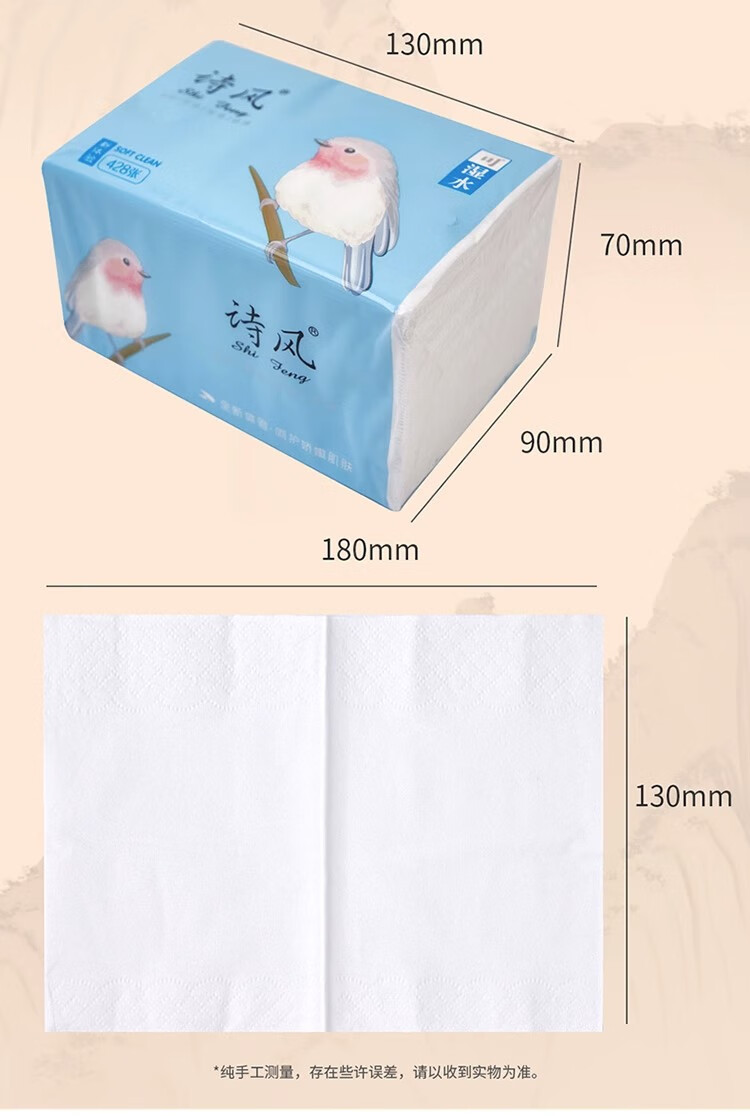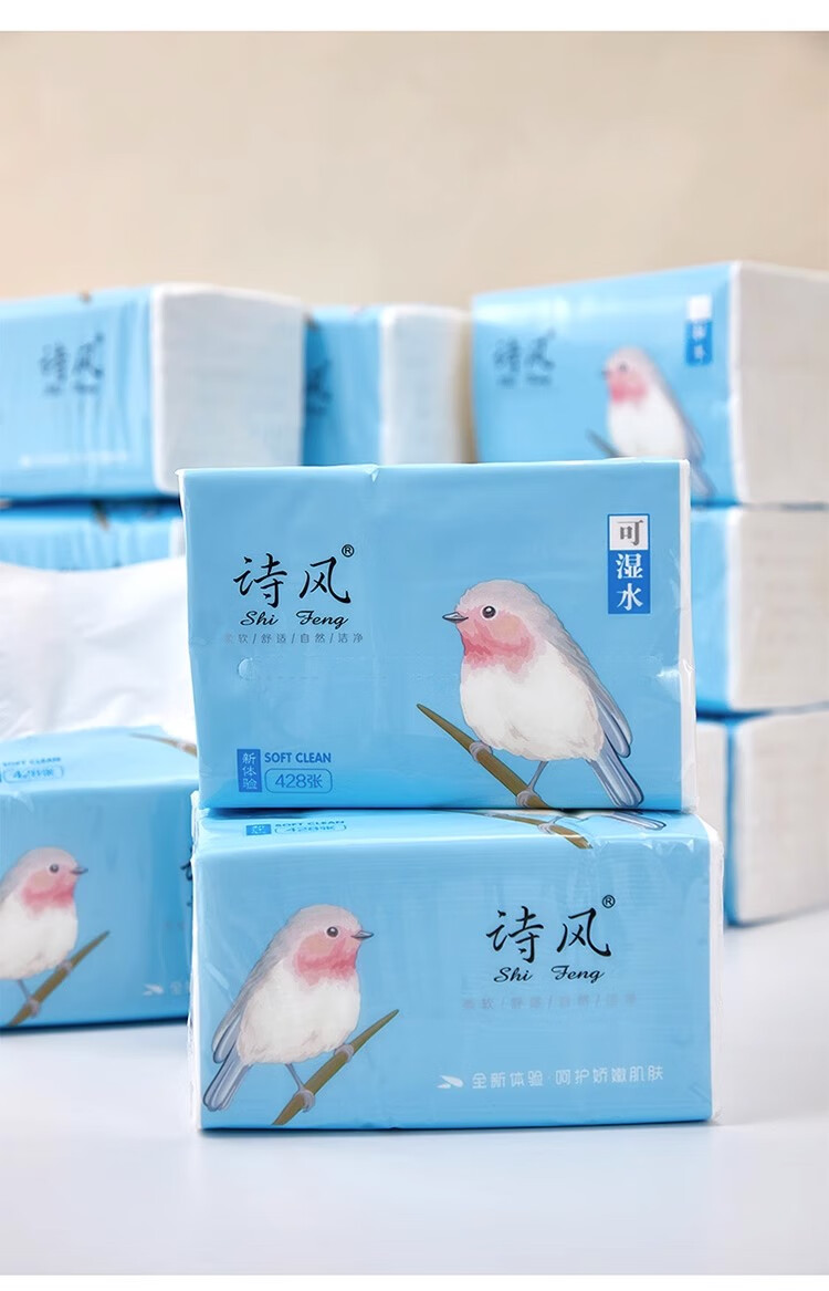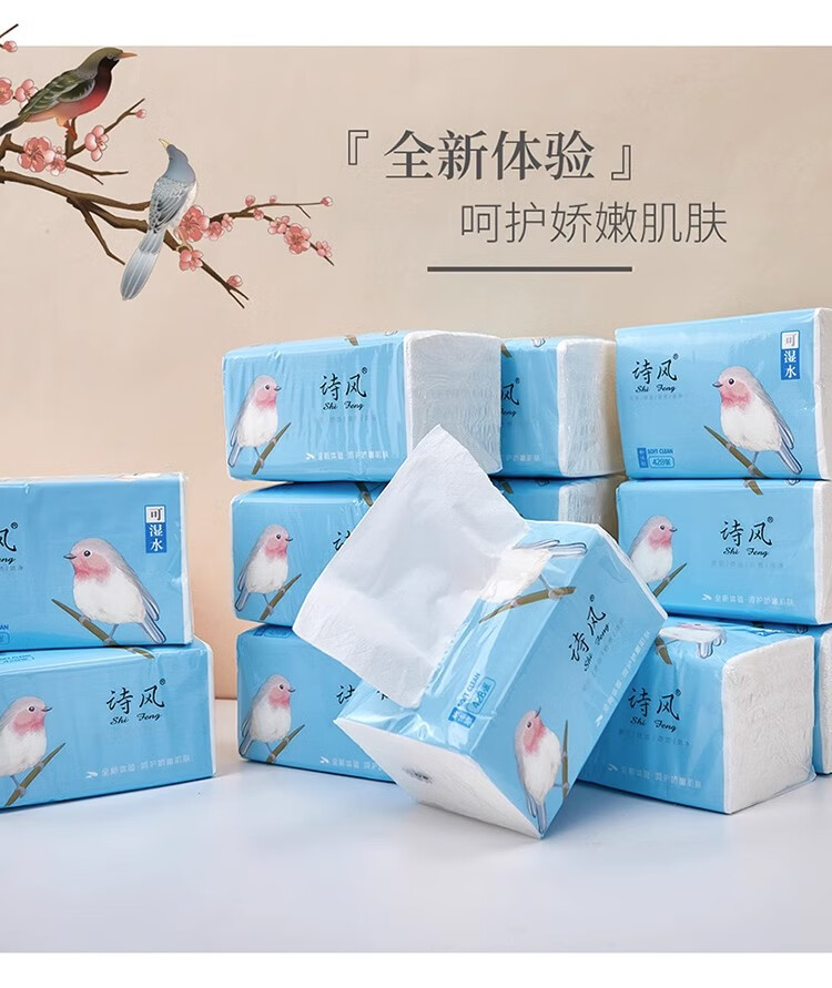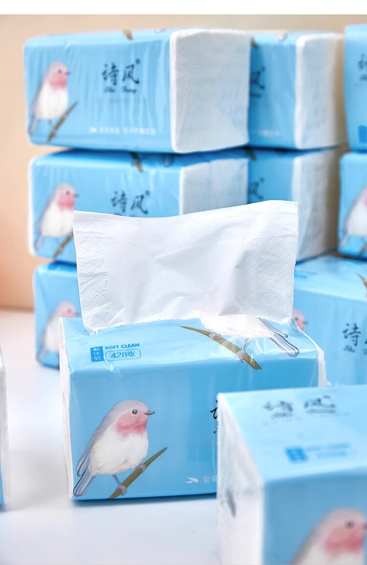 诗风纸巾428张4层可湿水抽纸家用婴儿可用餐巾纸实惠装纸抽8包