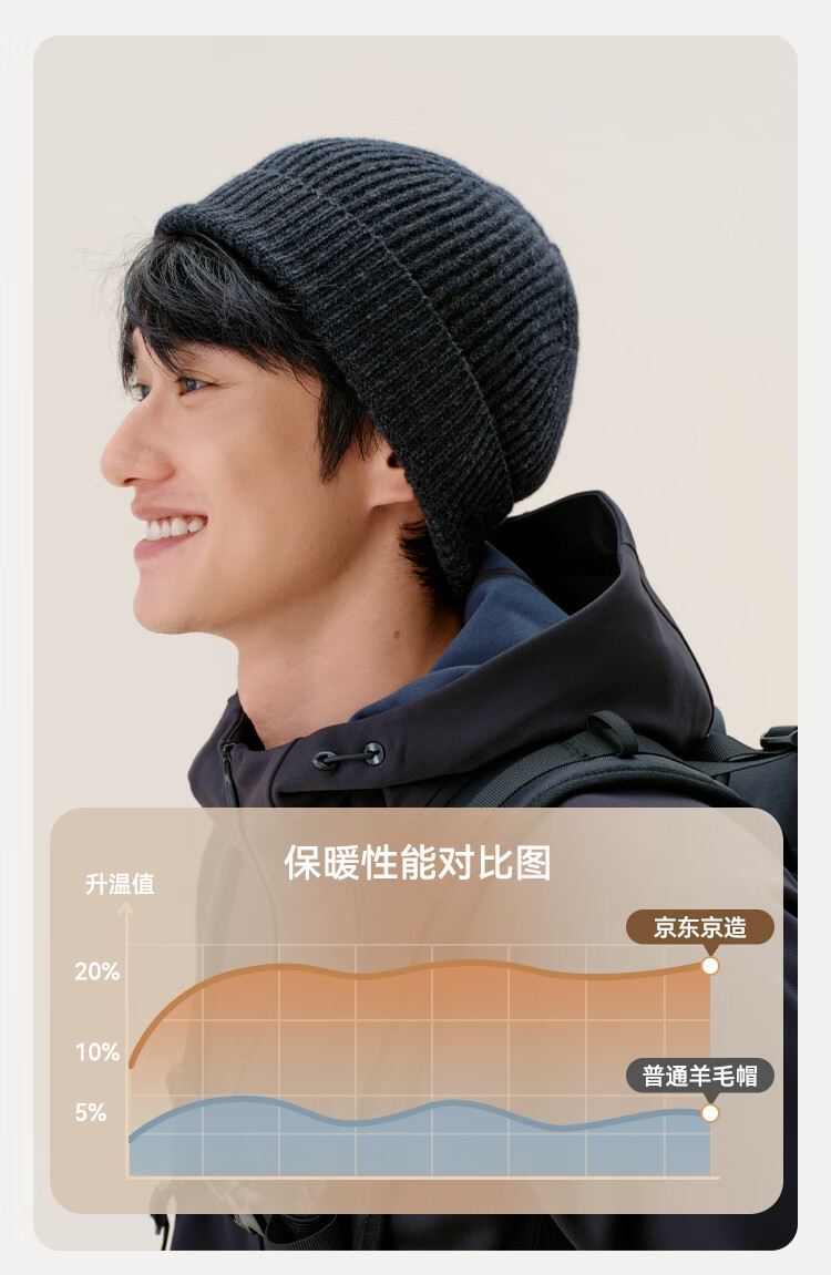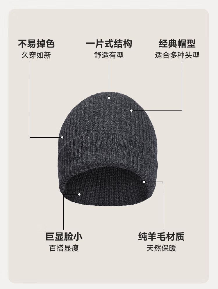 京东京造100%纯羊毛帽子秋冬加厚保暖毛线帽针织帽护耳防寒帽男