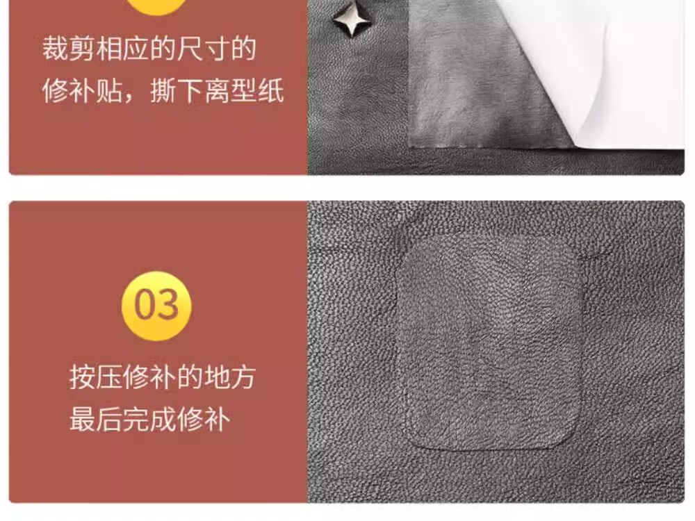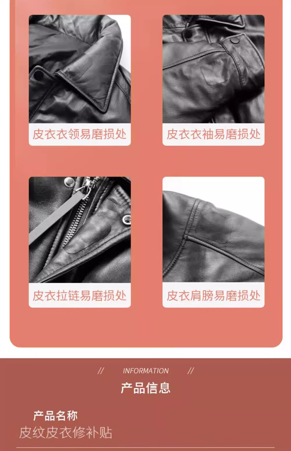 皮衣破洞修补神器pu夹克真皮领子袖口无痕修复翻新专用自粘补丁贴 软薄服帖款黑色10*20cm【一张】