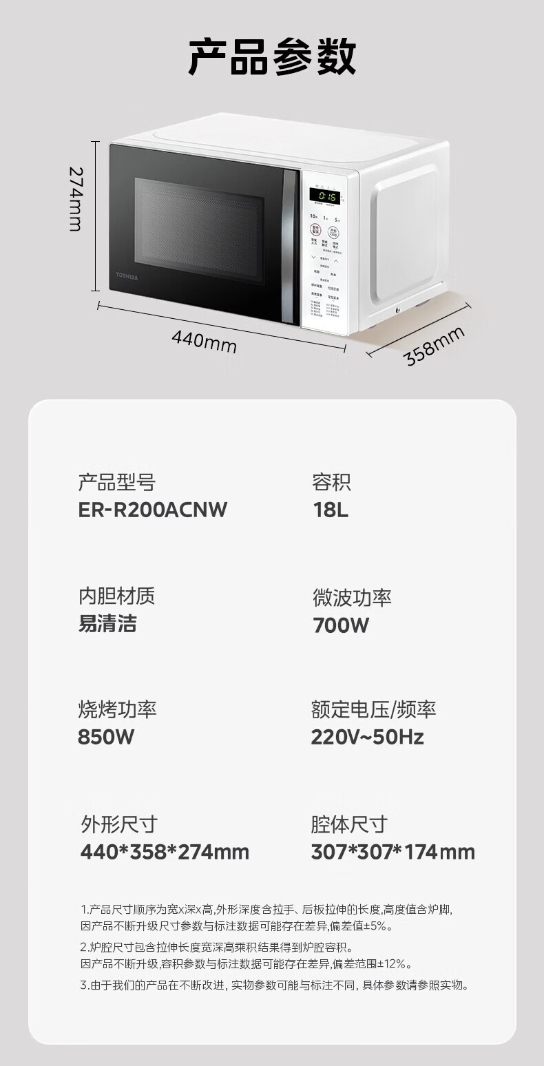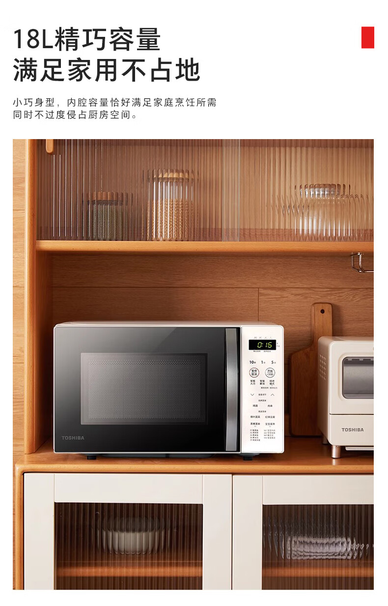东芝(TOSHIBA)微波炉烤箱一体机 光波家用微波炉mini小型平板式易清洁功能小型烧烤智能解冻18L ER-R200ACNW