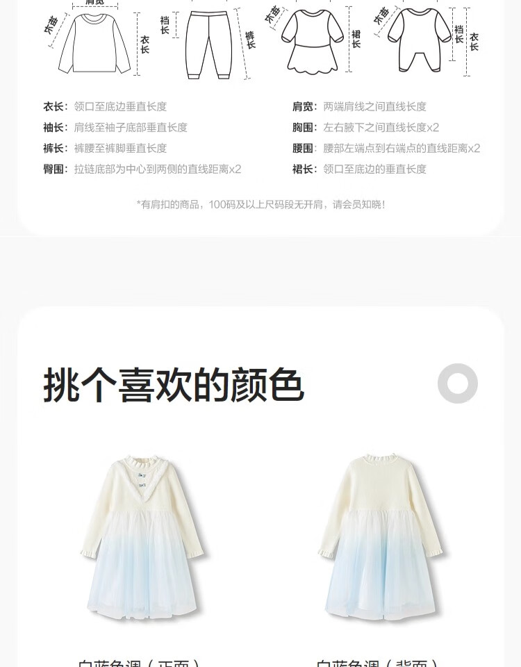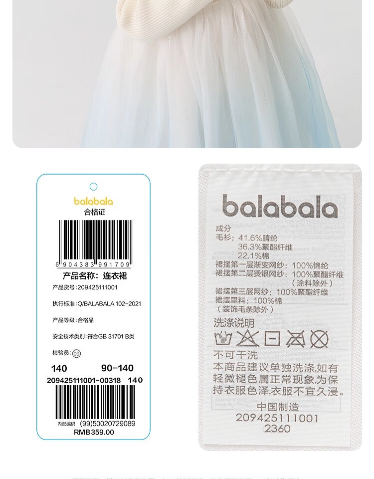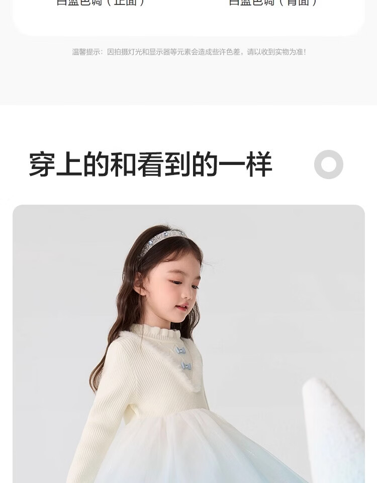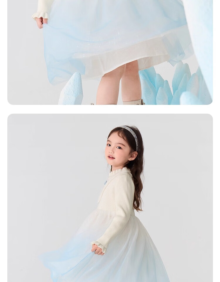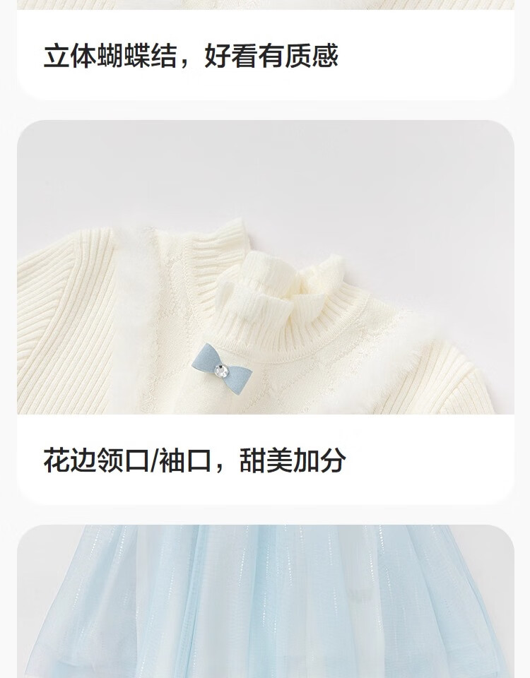 巴拉巴拉(BALABALA)童装儿童连衣裙女童秋冬装公主裙渐变网纱裙针织拼接洋气 白蓝色调00318 120