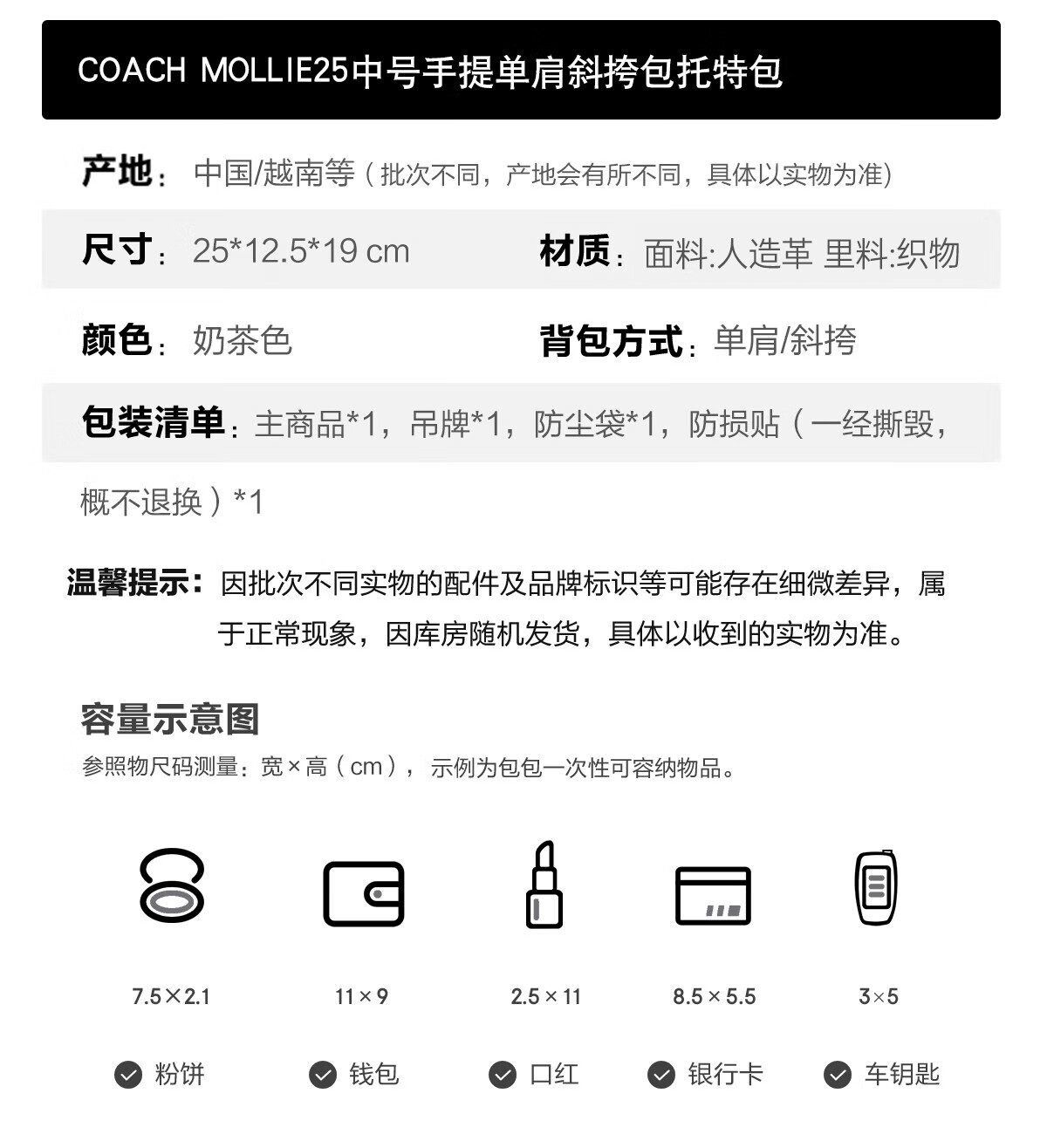 蔻驰(COACH)【品牌直供】女士MOLLIE中号斜挎手托特包CV965新年礼物