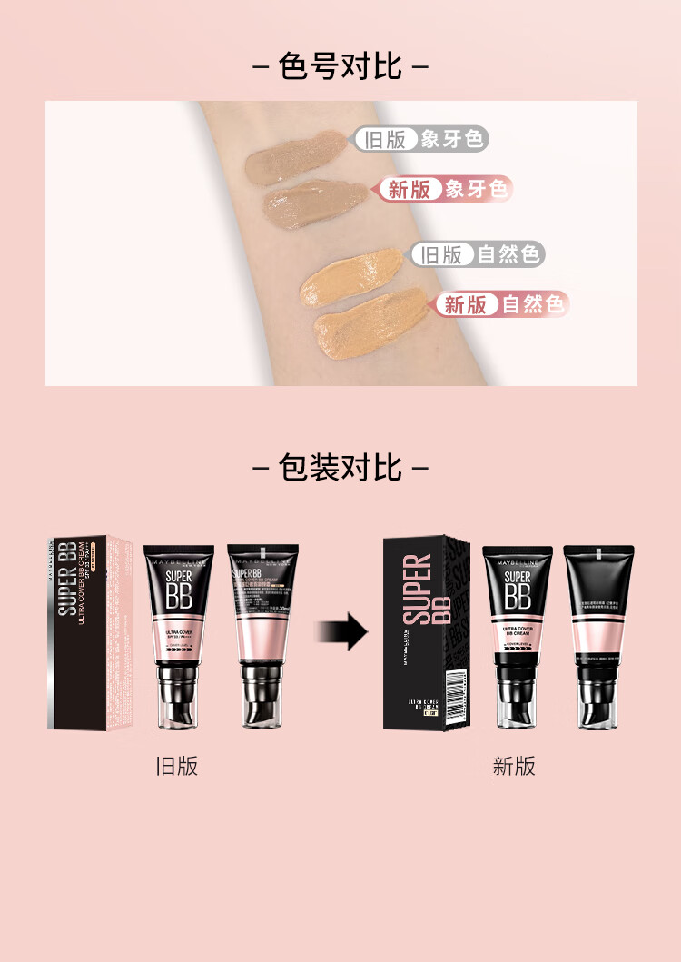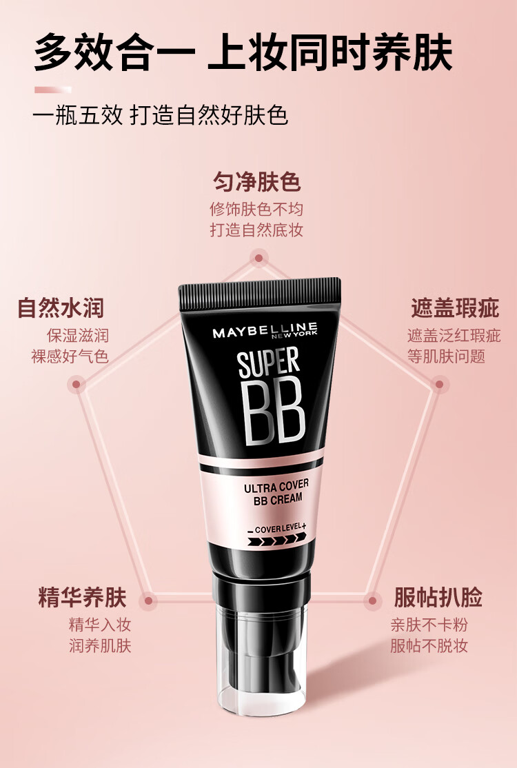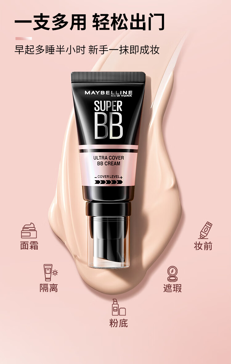 美宝莲巨遮瑕BB霜遮瑕提亮肤色裸妆素颜霜粉底液 30ml 自然色 新年礼物