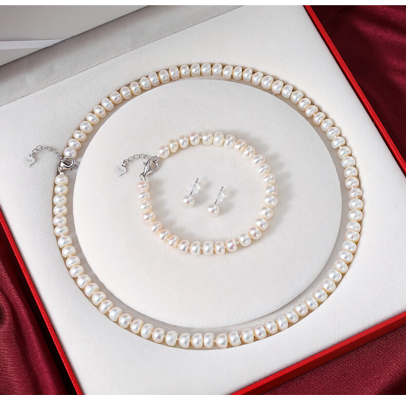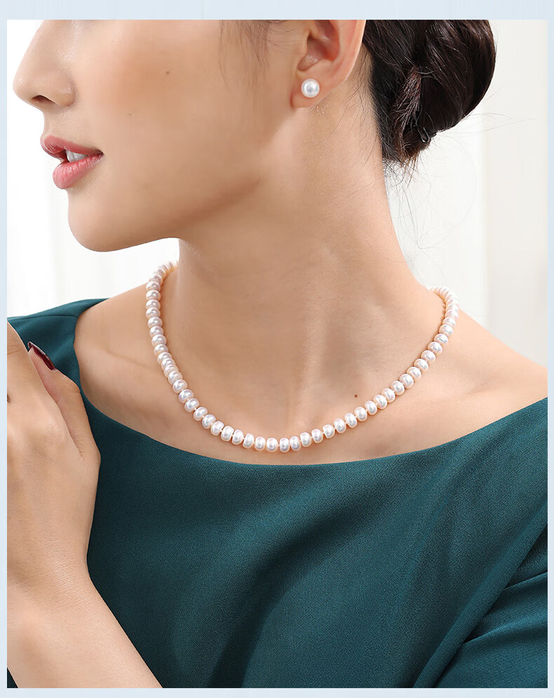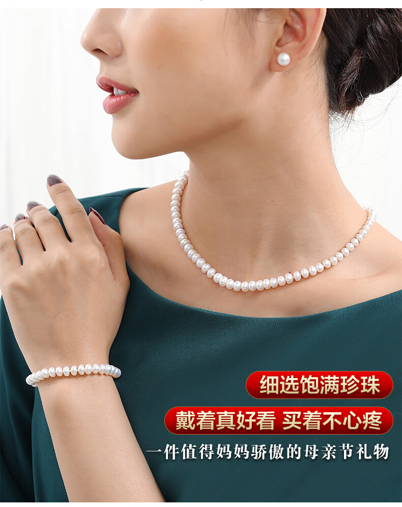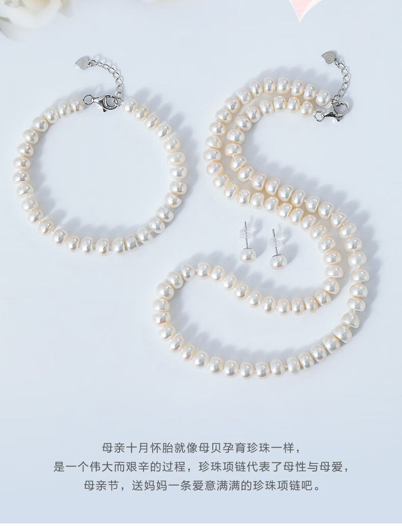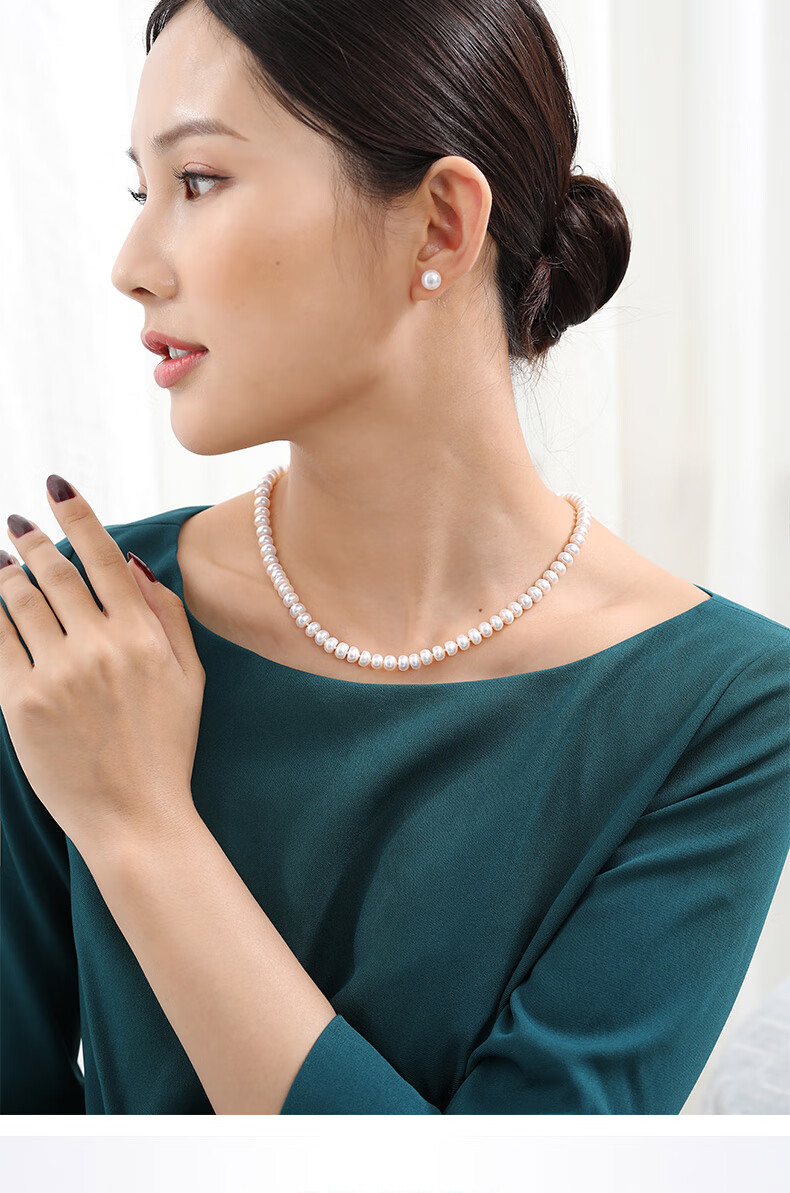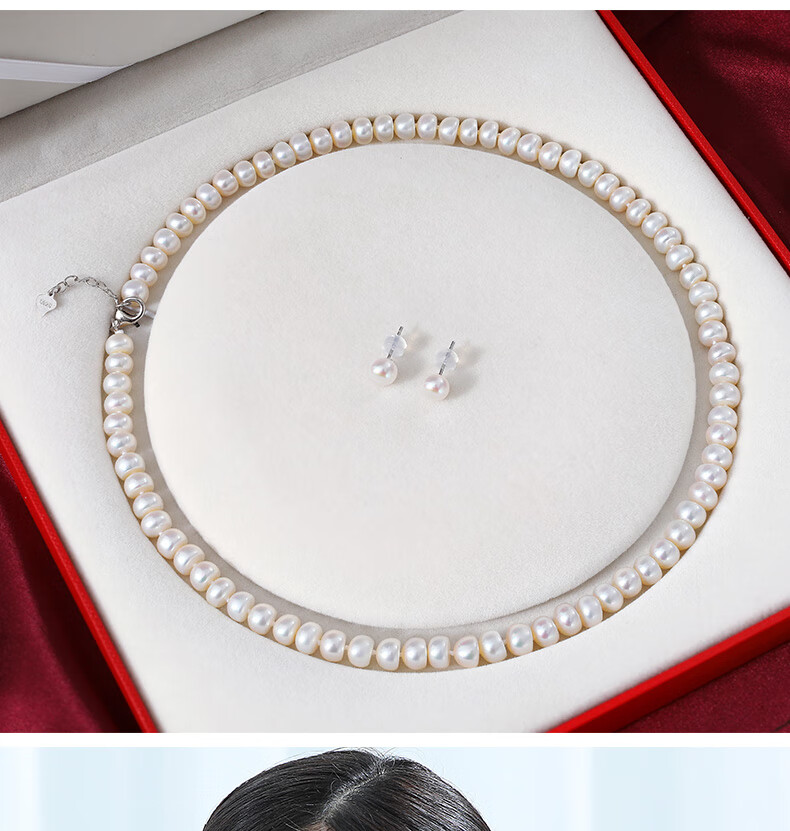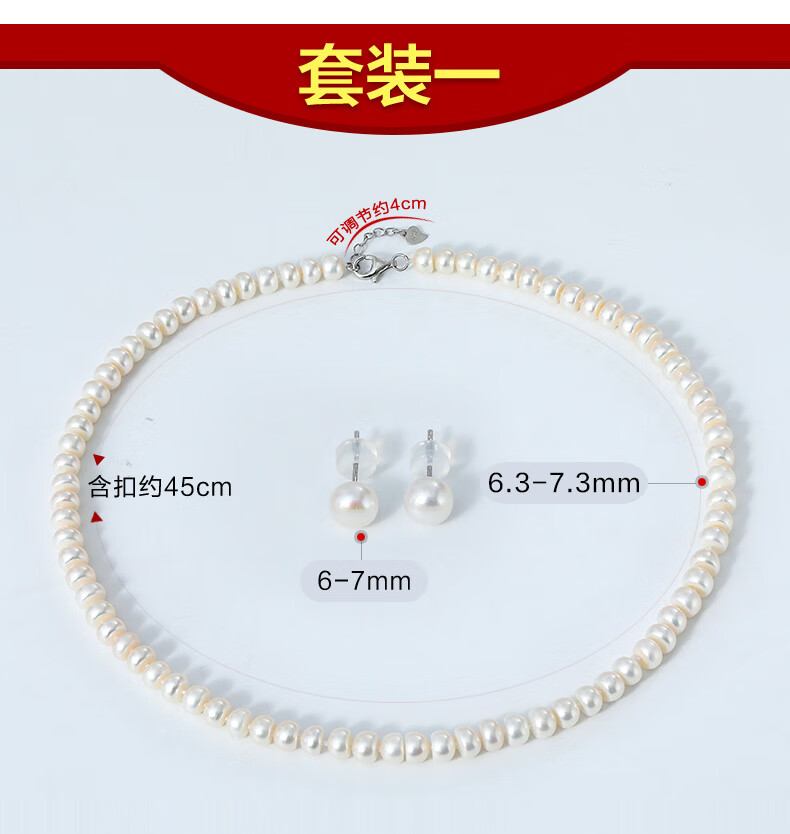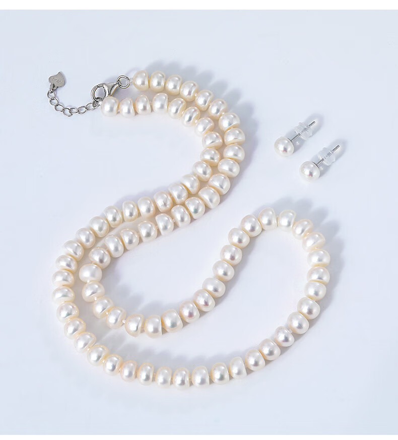 黛米6.3-7.3mm无核淡水珍珠项链耳钉套装S925银新年礼物送老婆妈妈