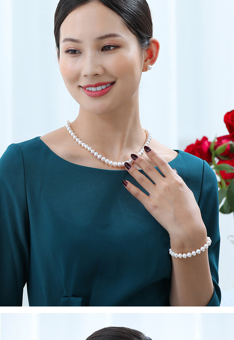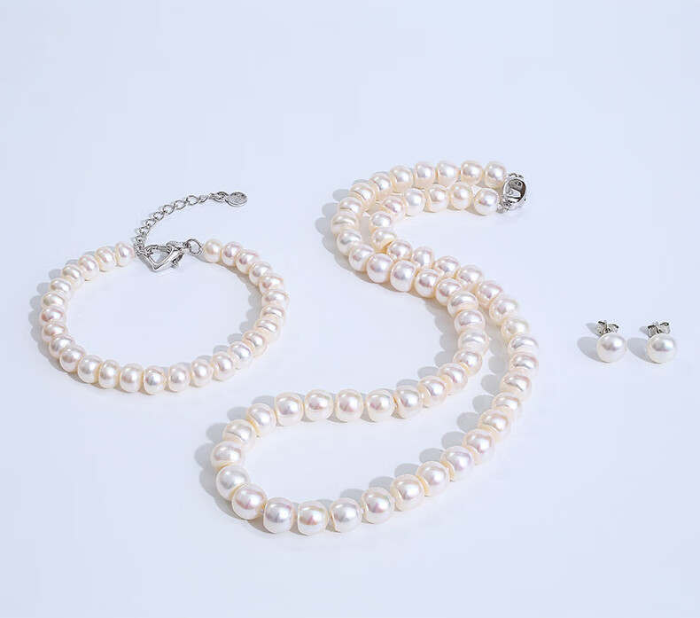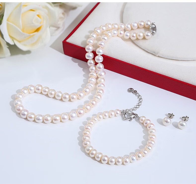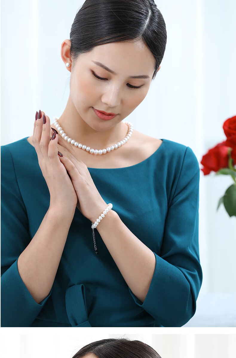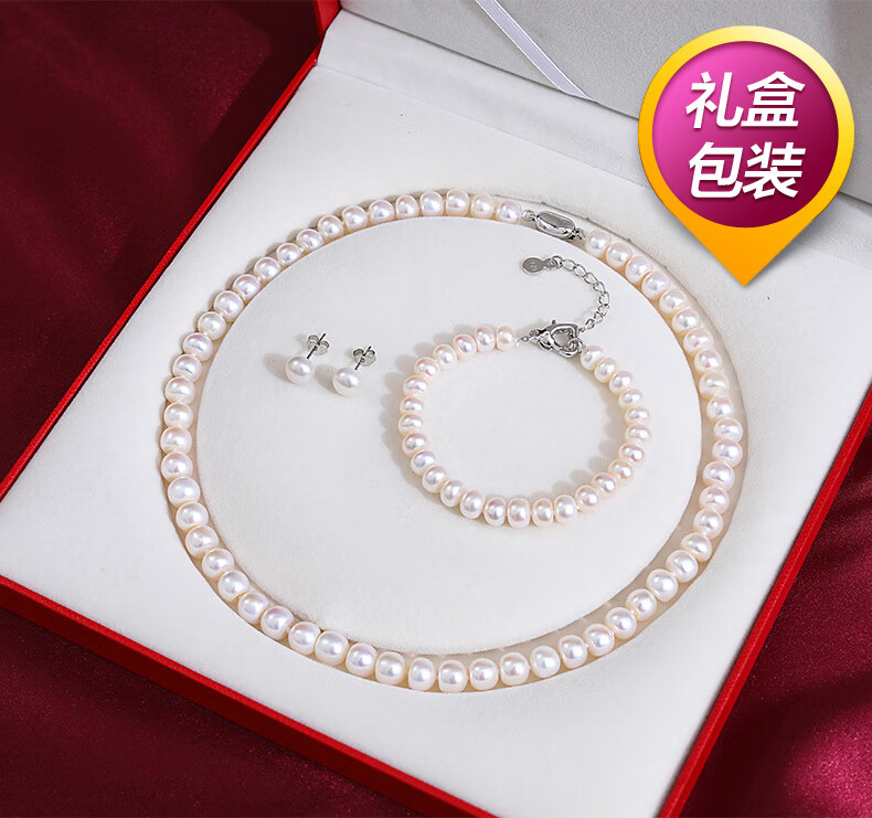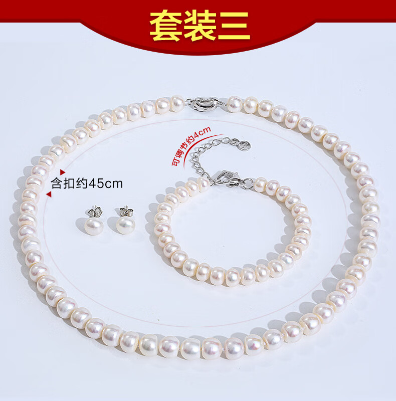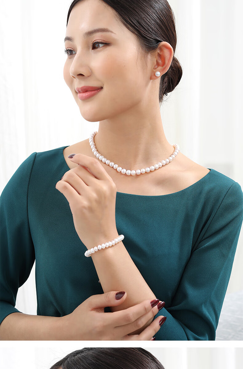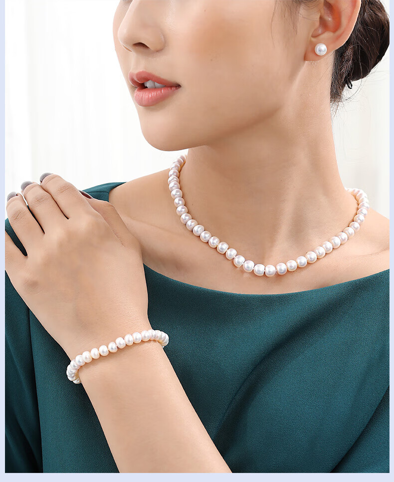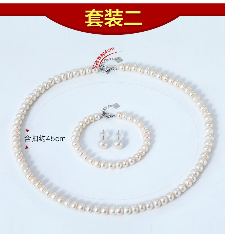 黛米6.3-7.3mm无核淡水珍珠项链耳钉套装S925银新年礼物送老婆妈妈