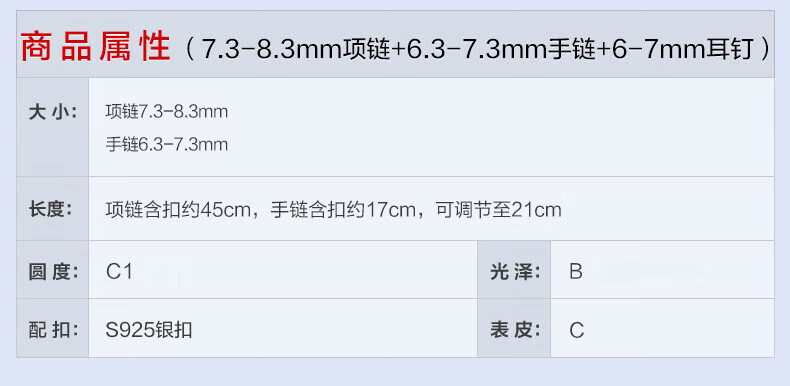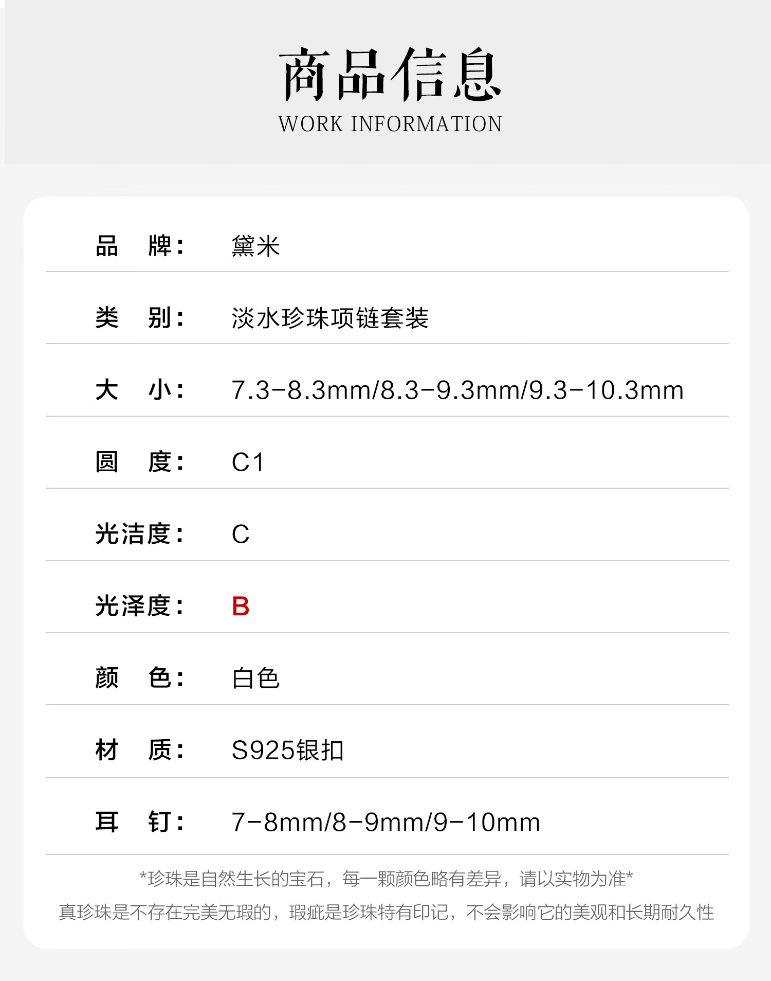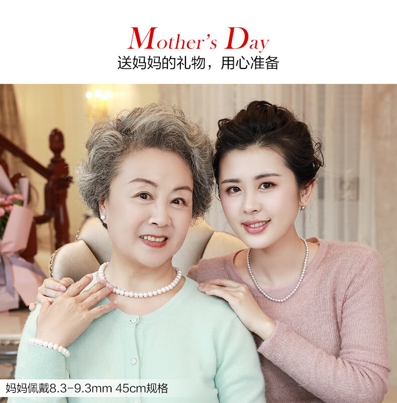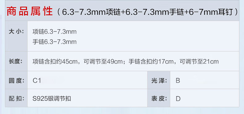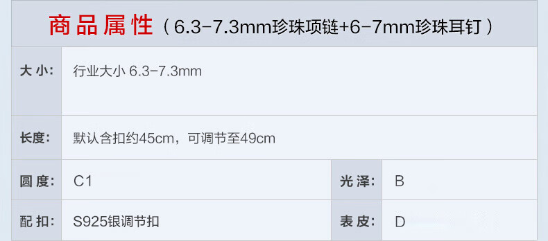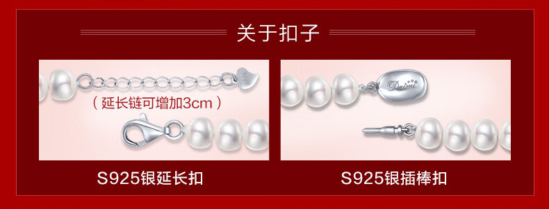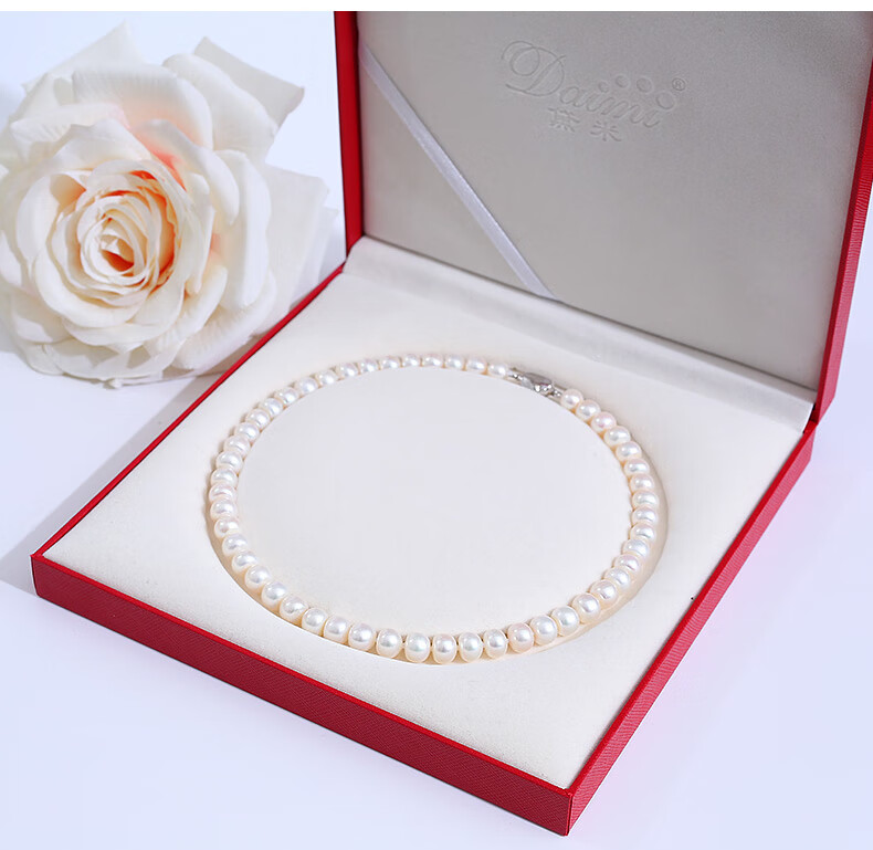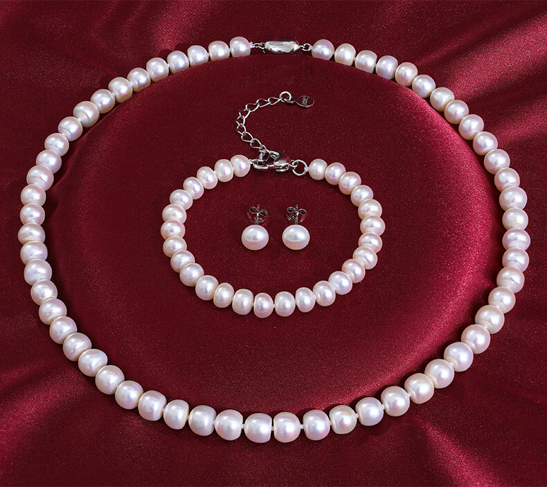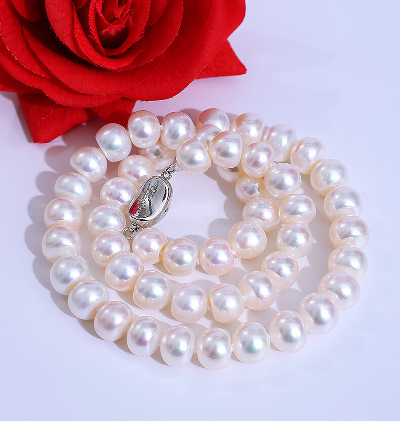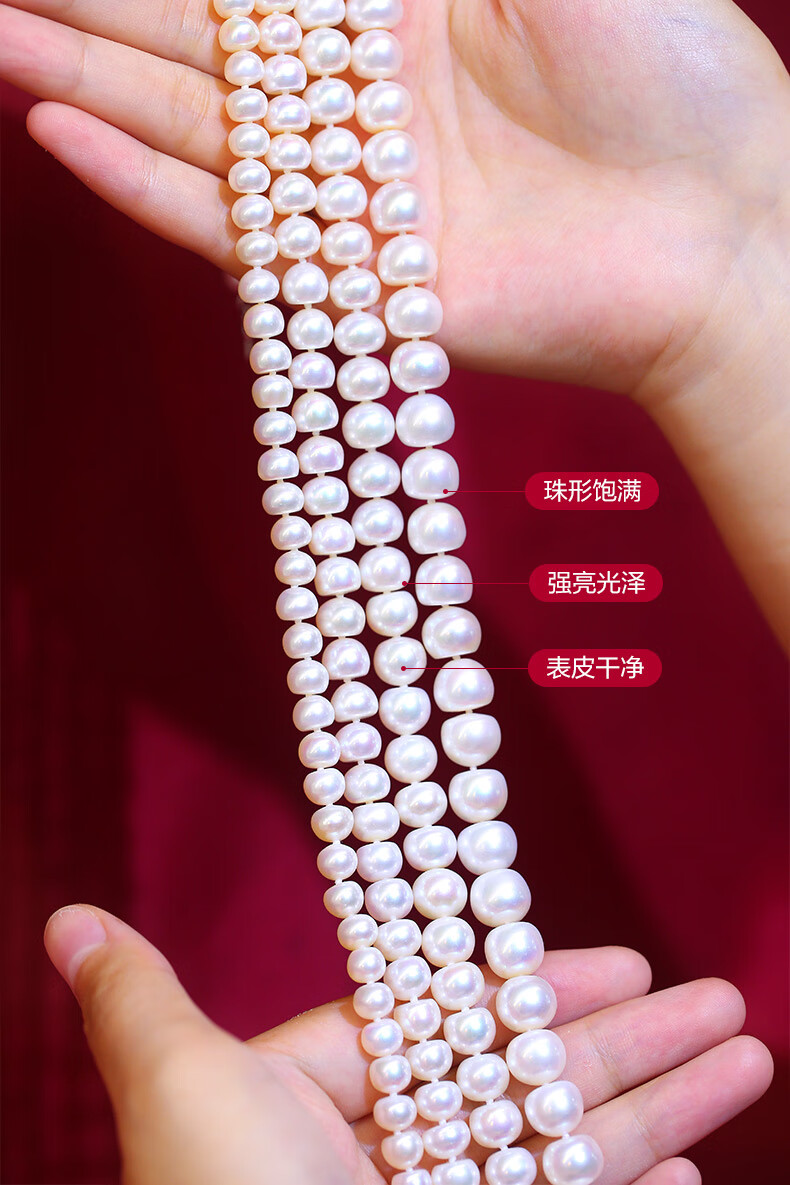 黛米6.3-7.3mm无核淡水珍珠项链耳钉套装S925银新年礼物送老婆妈妈