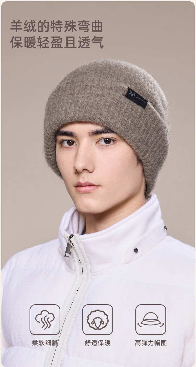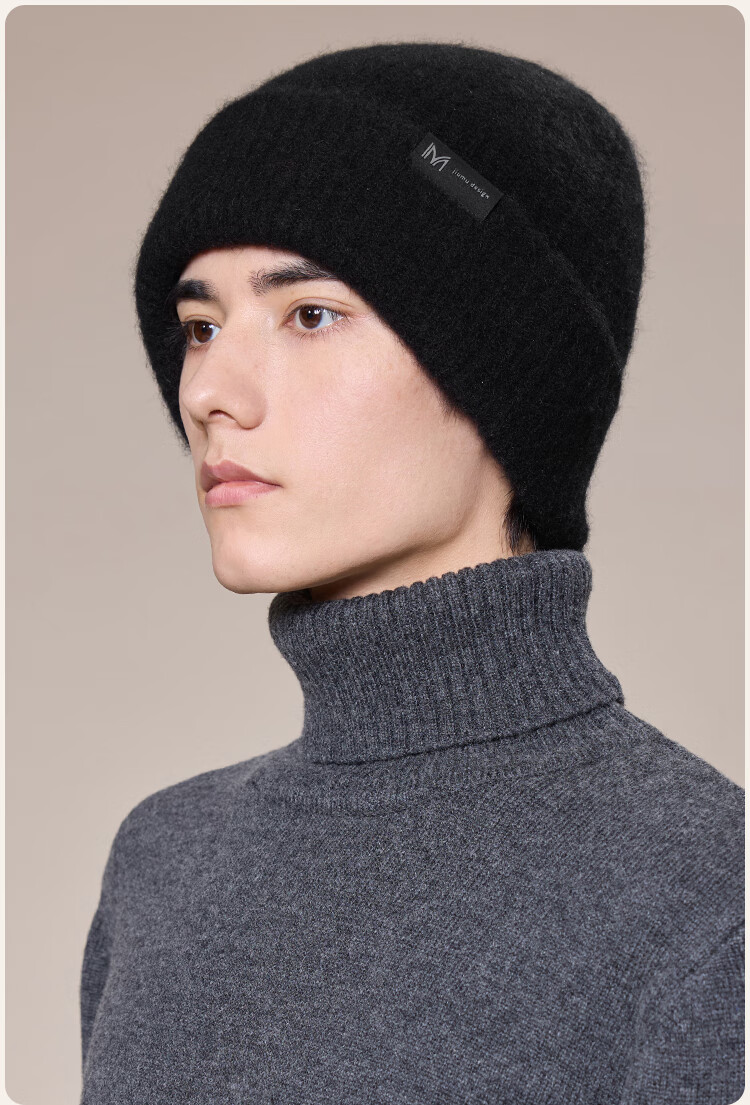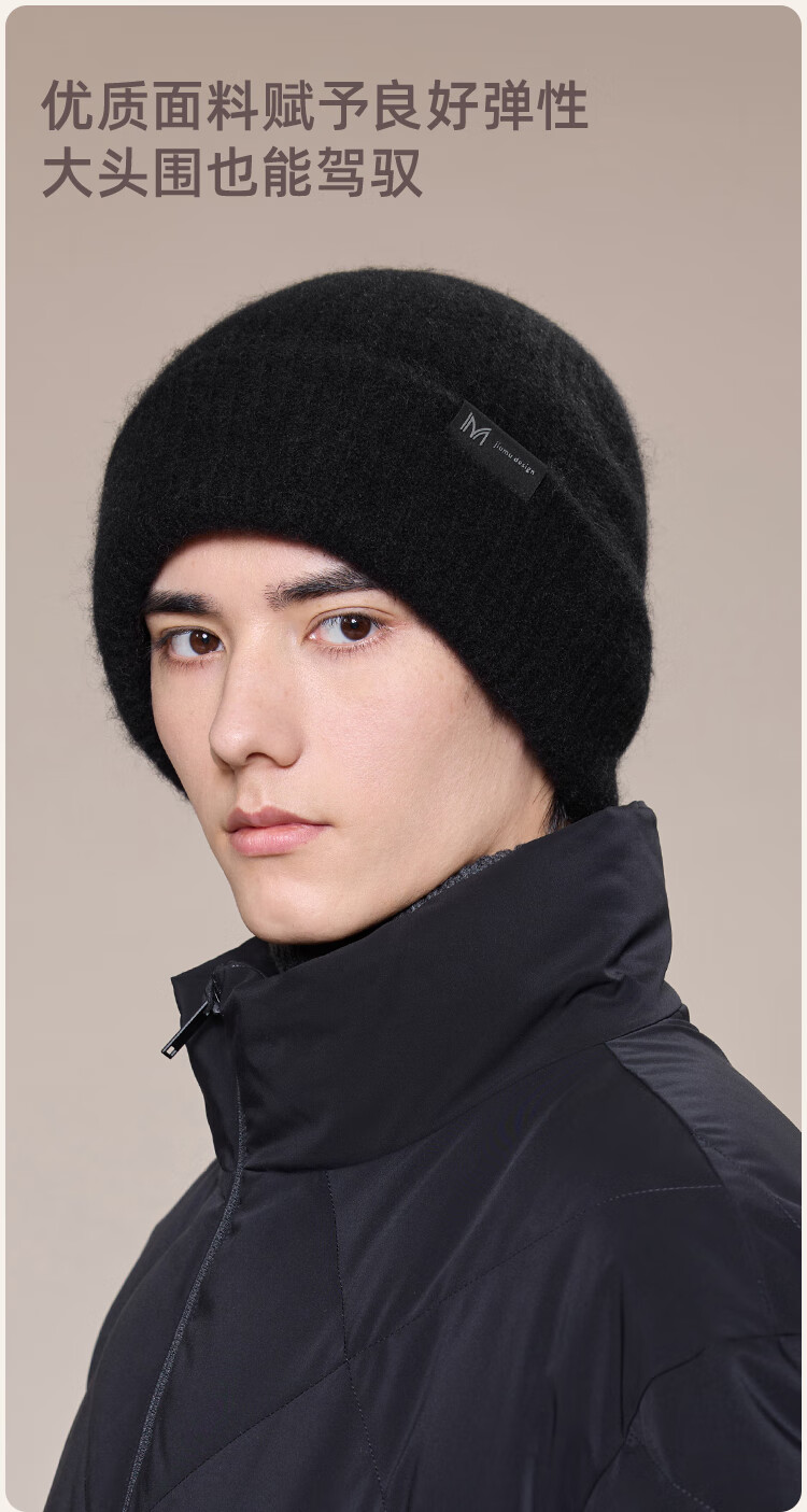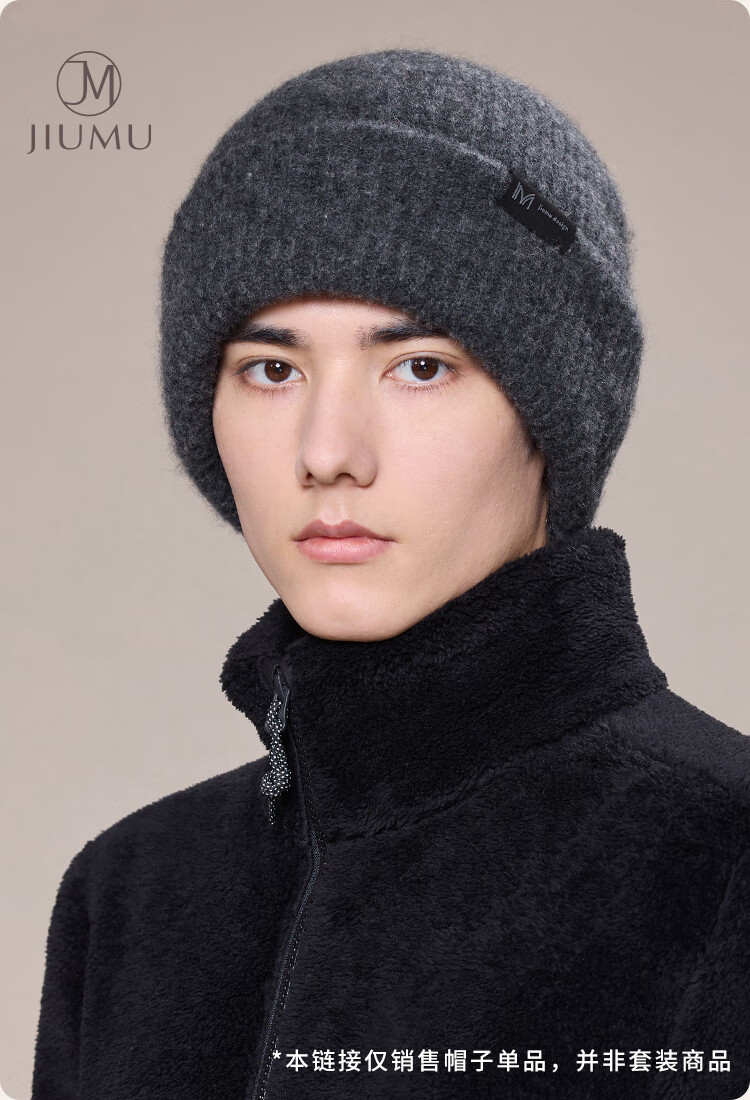 玖慕(JIUMU)山羊绒大头围保暖毛线帽秋冬羊毛针织帽冷帽冬帽堆堆帽防寒帽子男
