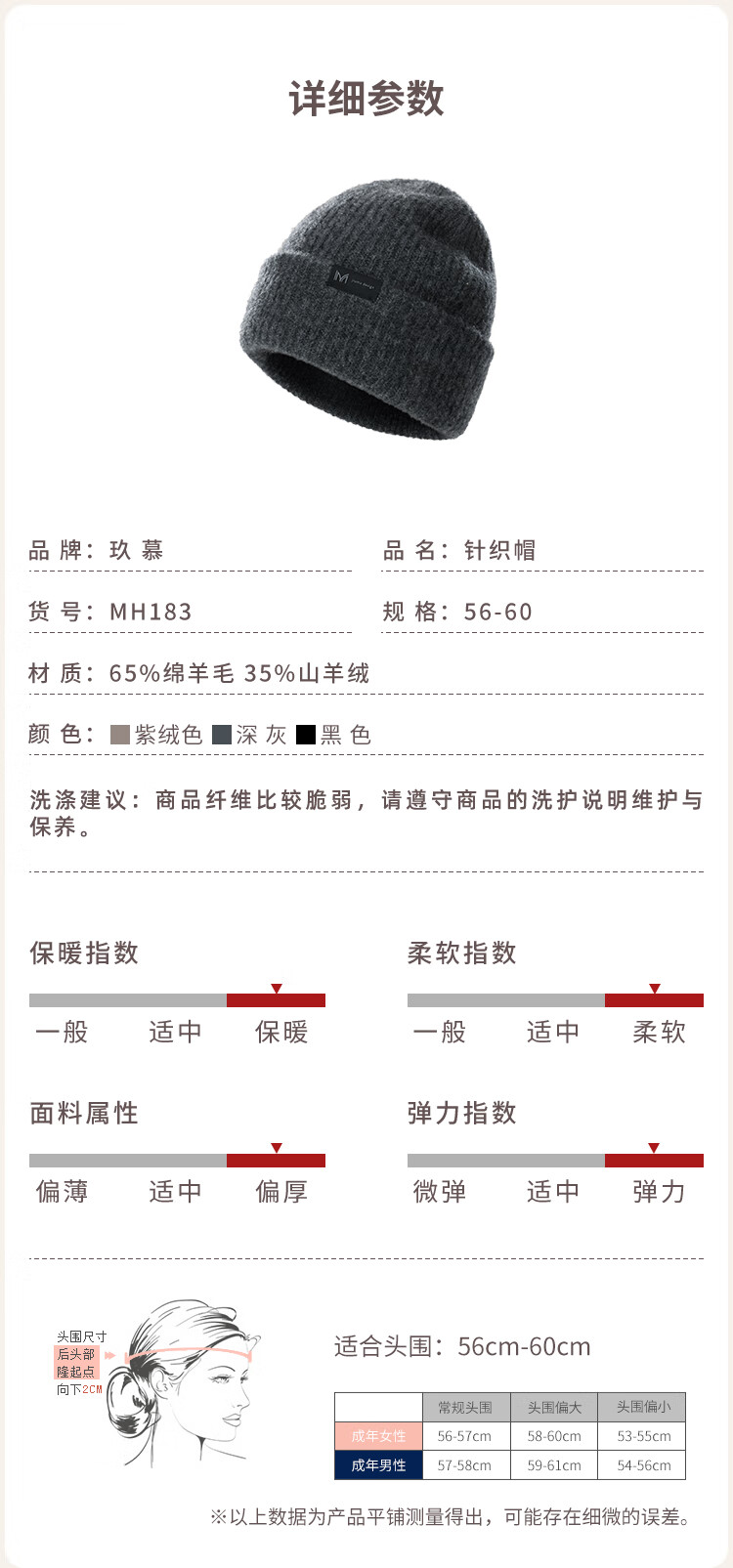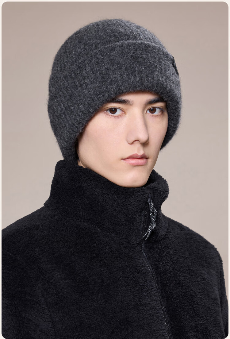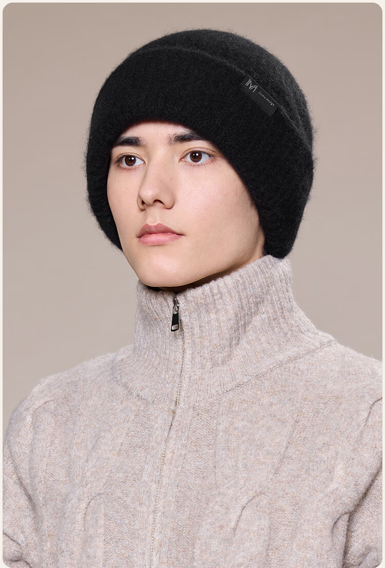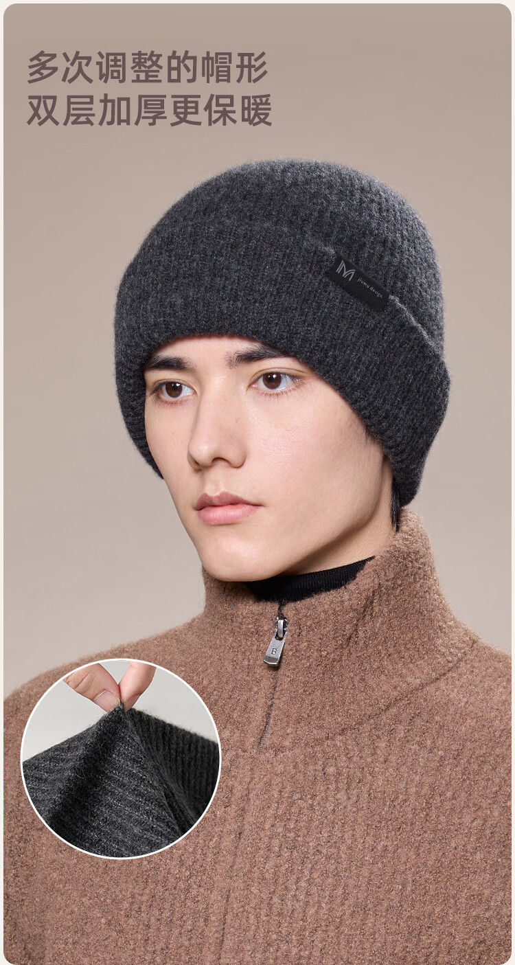 玖慕(JIUMU)山羊绒大头围保暖毛线帽秋冬羊毛针织帽冷帽冬帽堆堆帽防寒帽子男