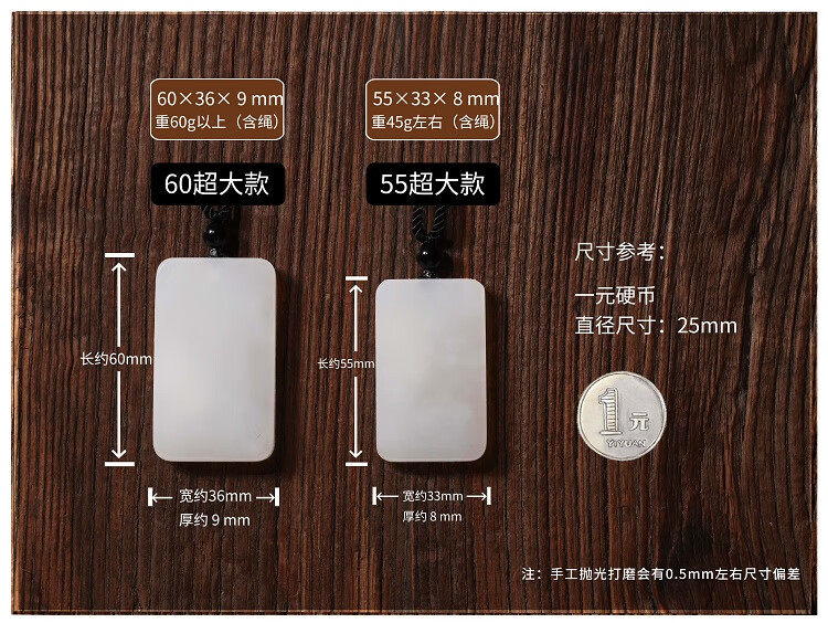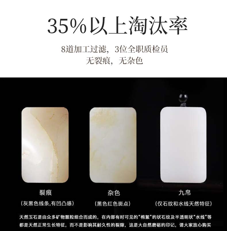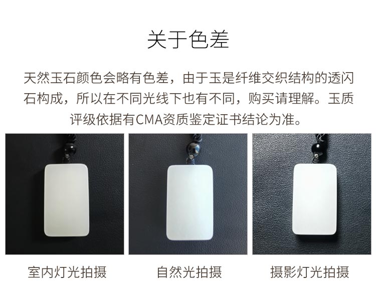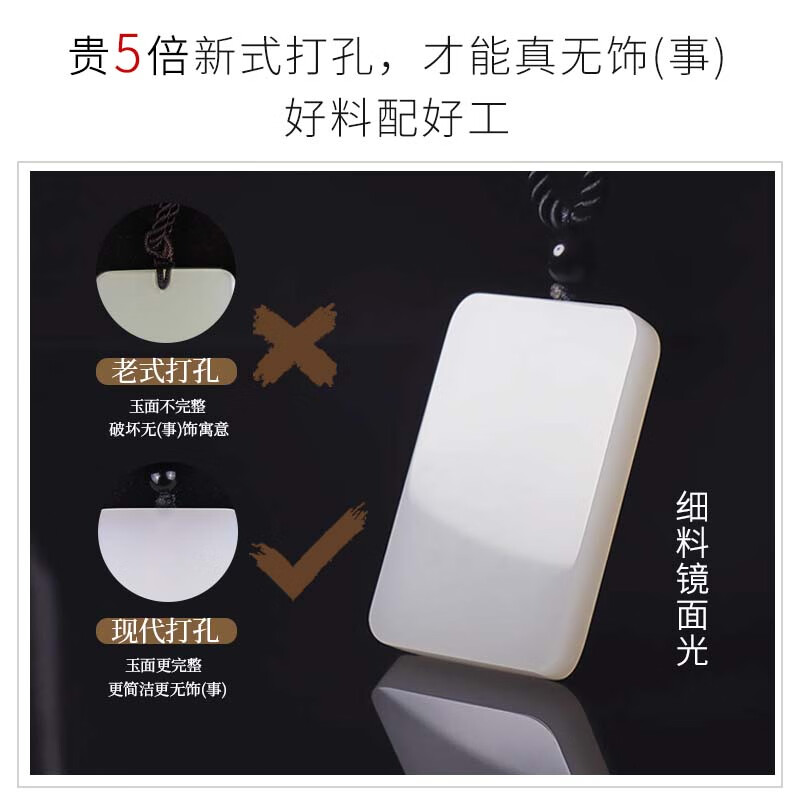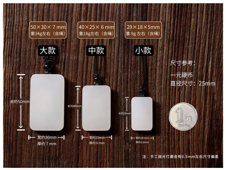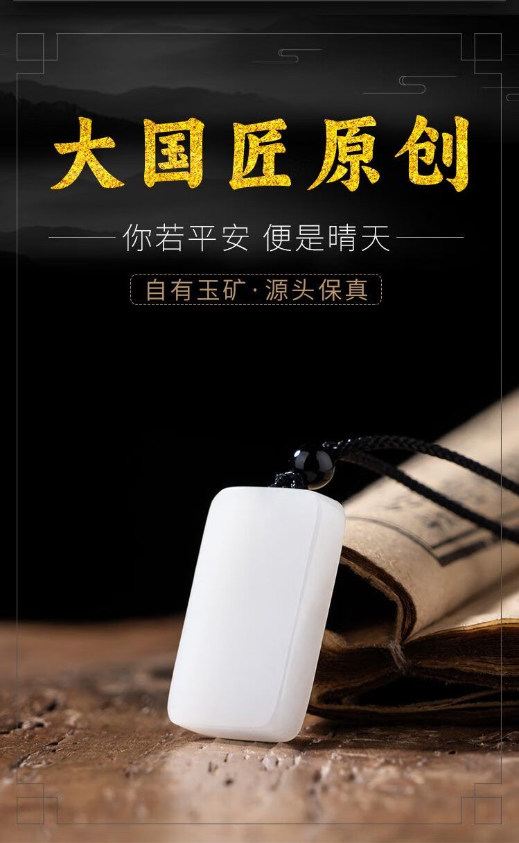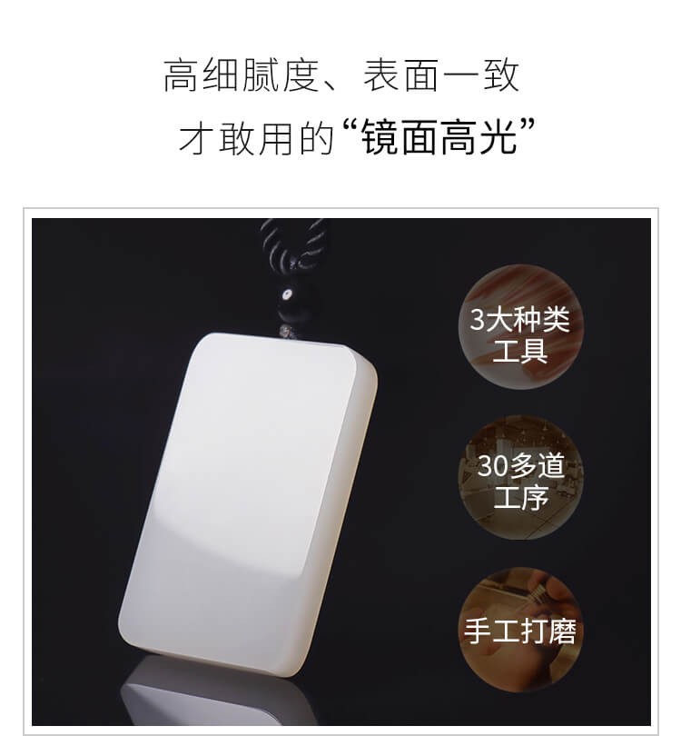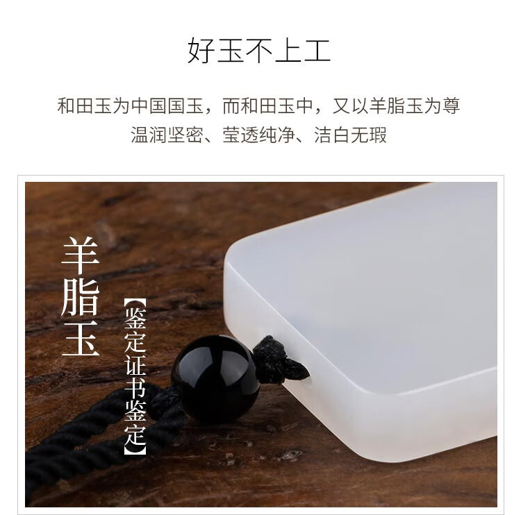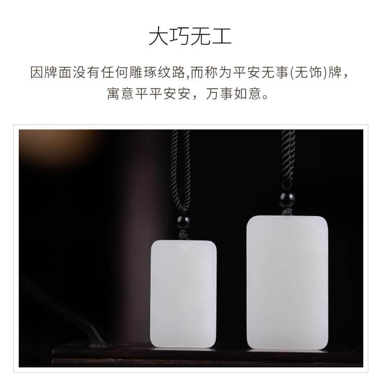 九帛 和田玉吊坠玉坠男女款平安无事牌羊脂玉白玉石项链无事牌玉牌 小款(29*18mm)