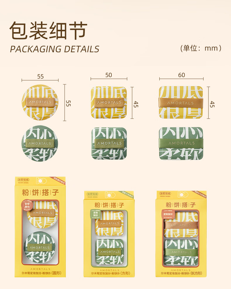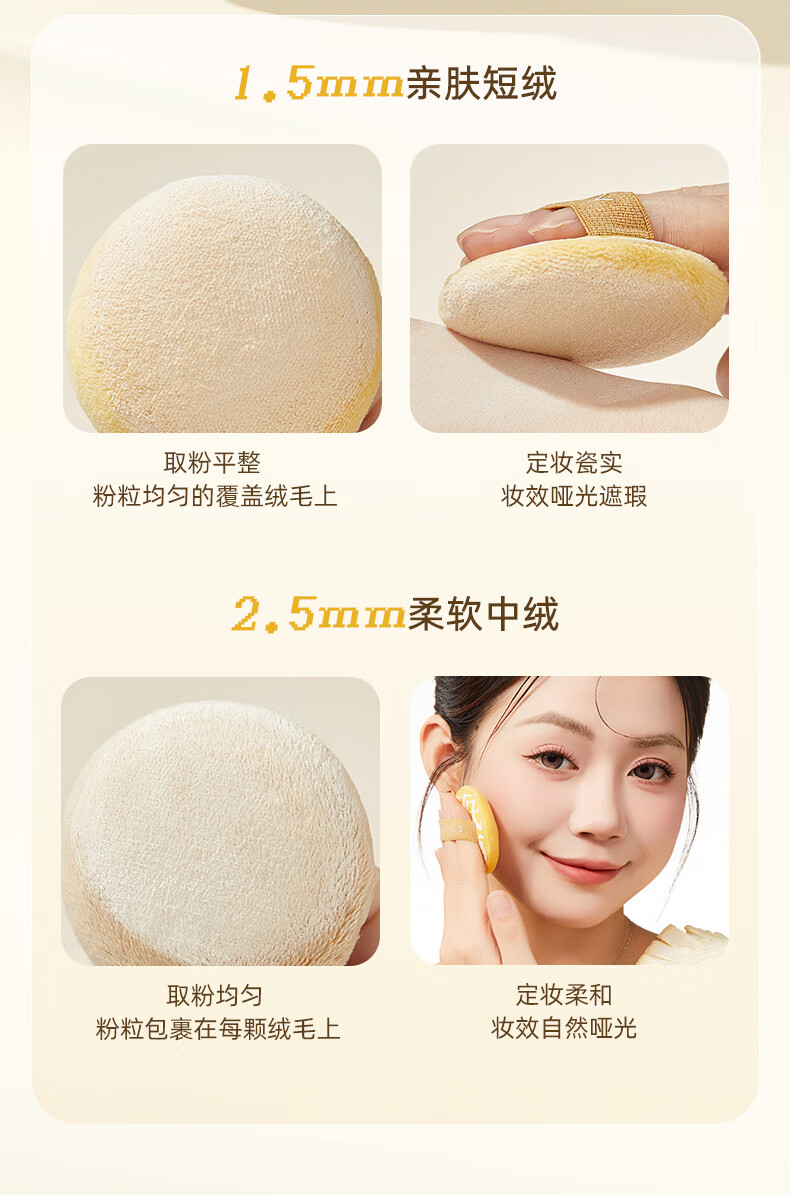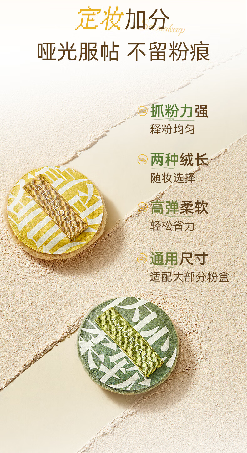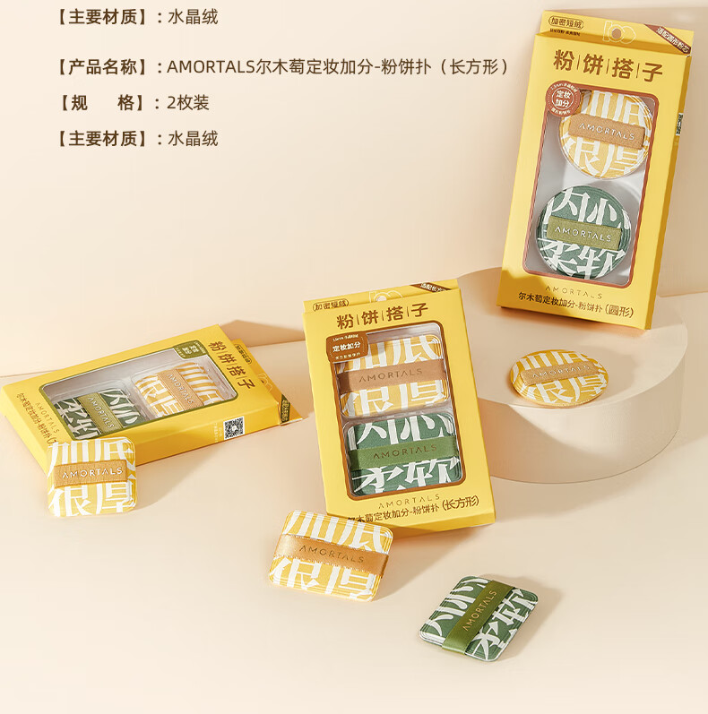 尔木萄(AMORTALS)定妆加分系列粉扑植绒粉扑粉饼定妆散蜜粉短绒清透替换专用 散粉扑(短绒圆形) 4枚 +收纳盒