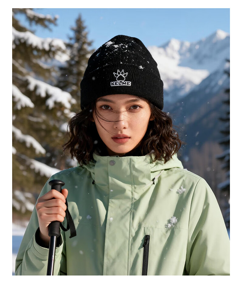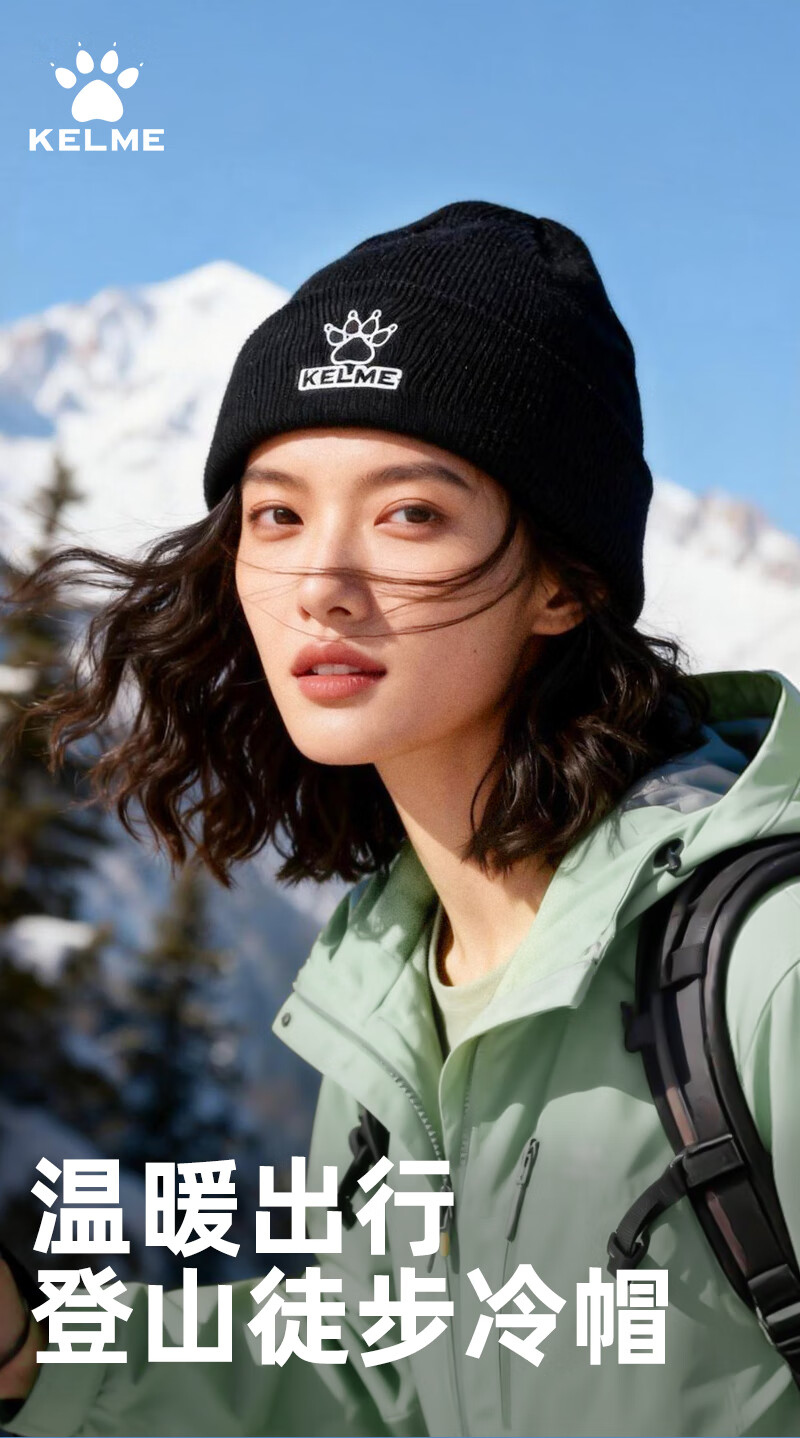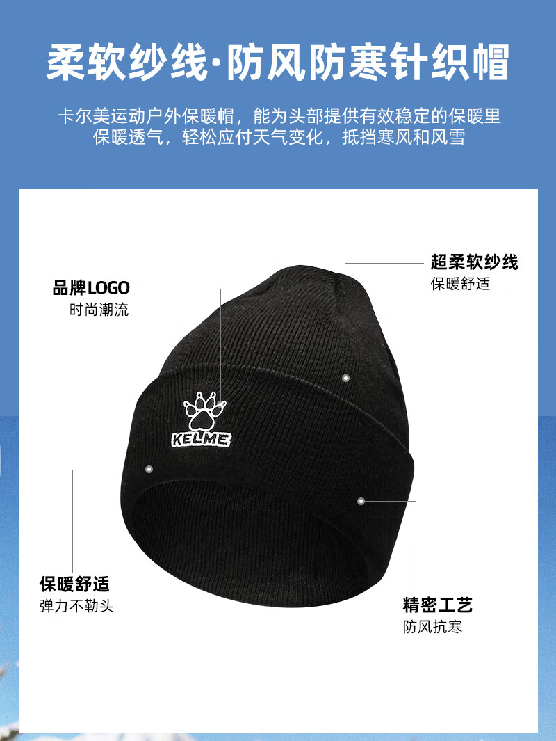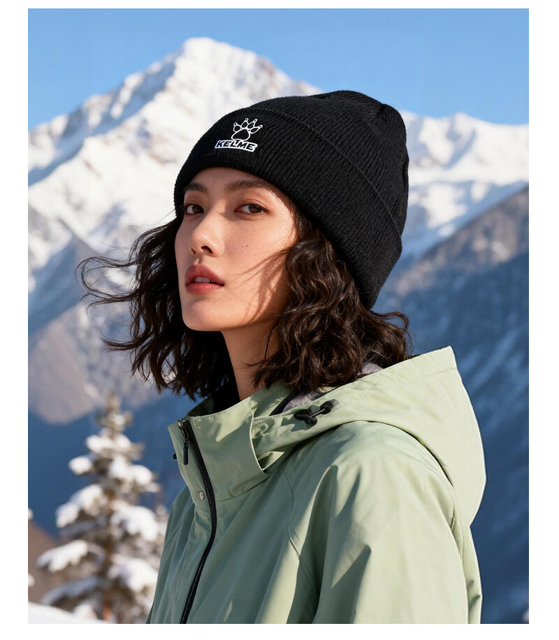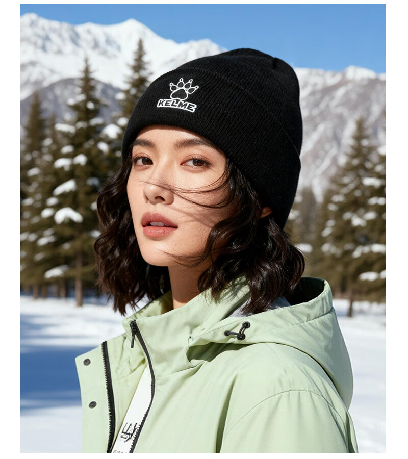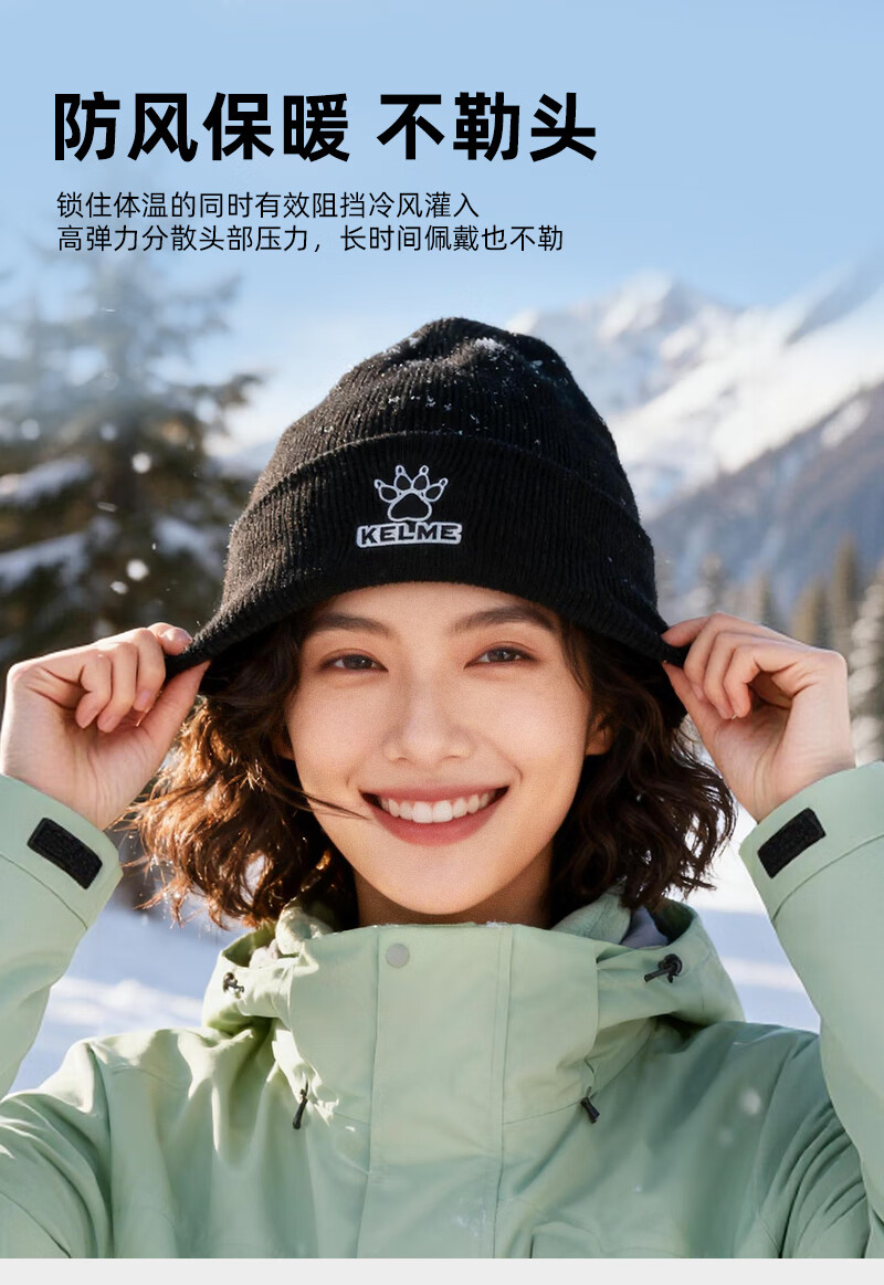 卡尔美(KELME)帽子男女秋冬季保暖户外滑雪毛线帽冬帽针织帽骑行运动护耳防寒
