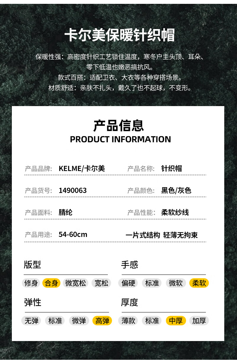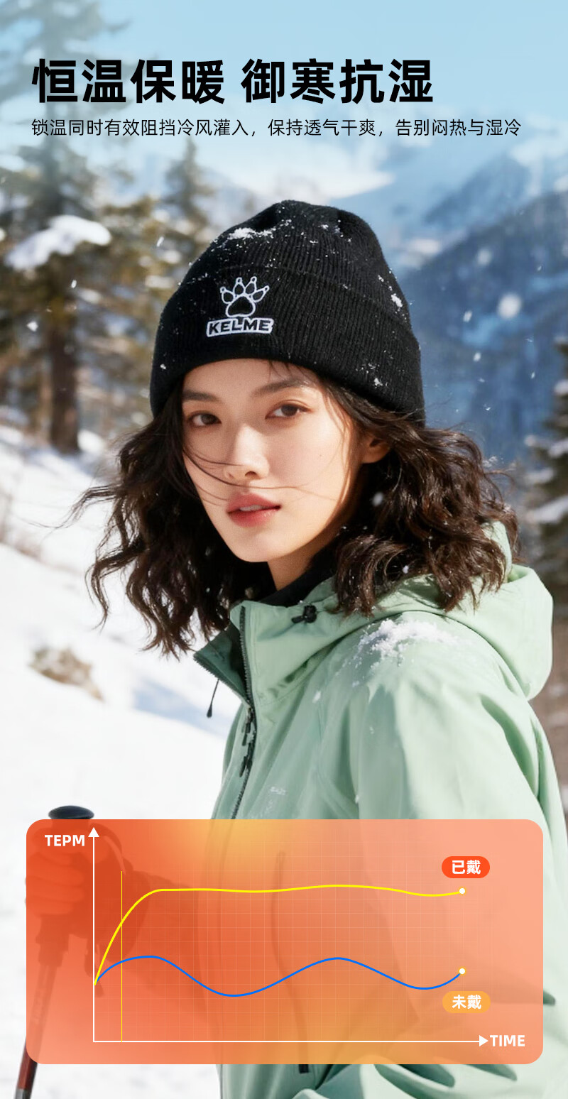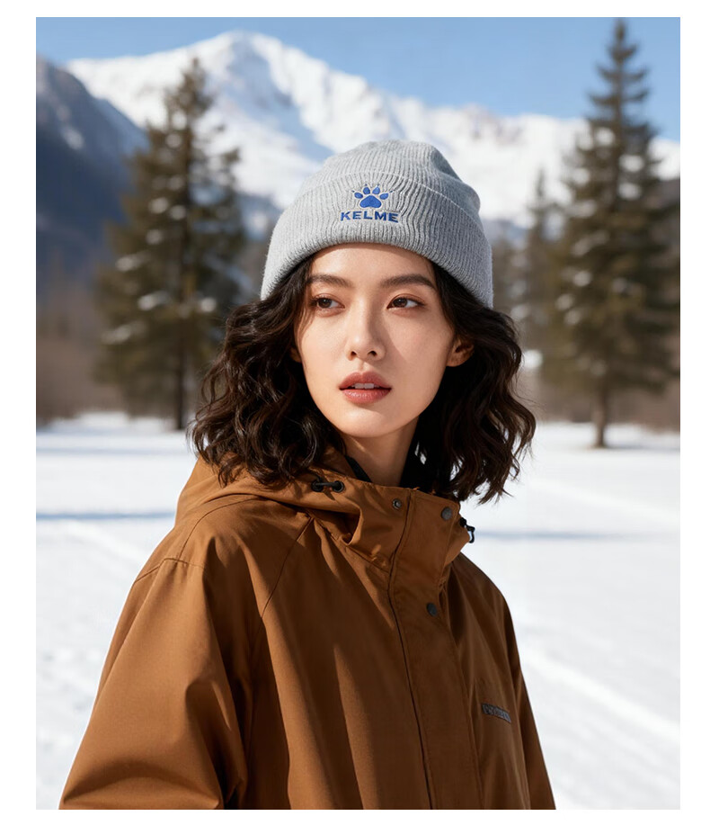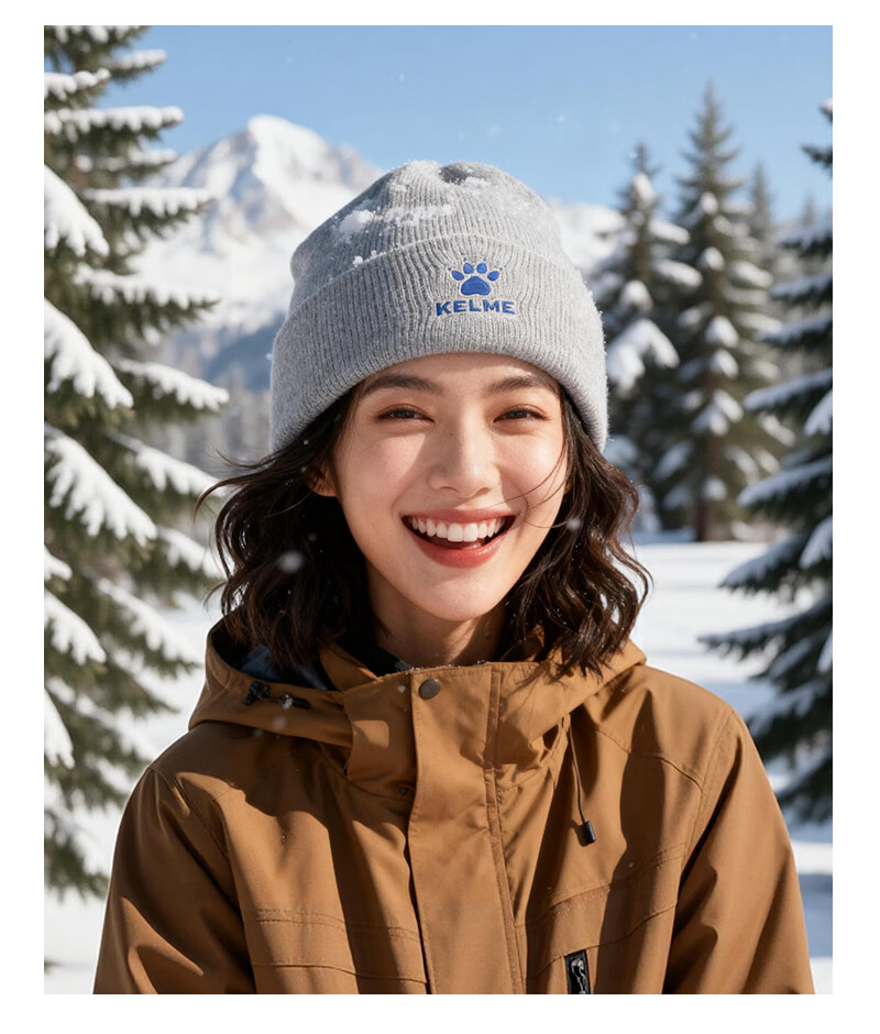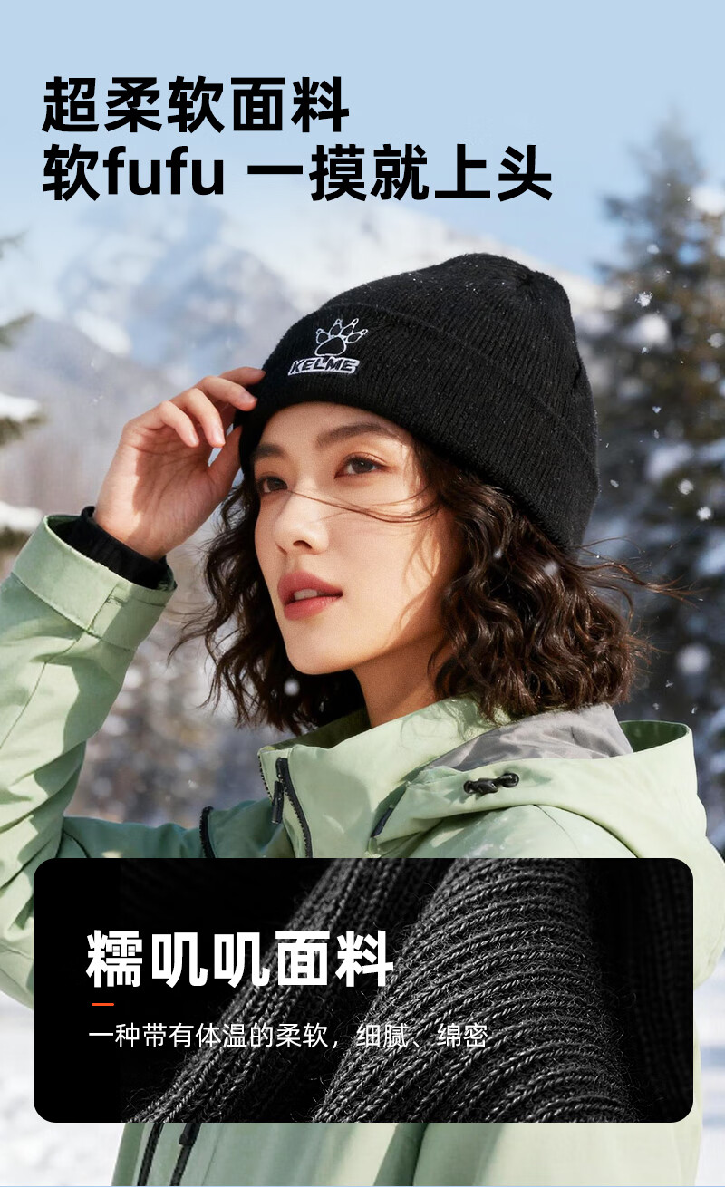 卡尔美(KELME)帽子男女秋冬季保暖户外滑雪毛线帽冬帽针织帽骑行运动护耳防寒