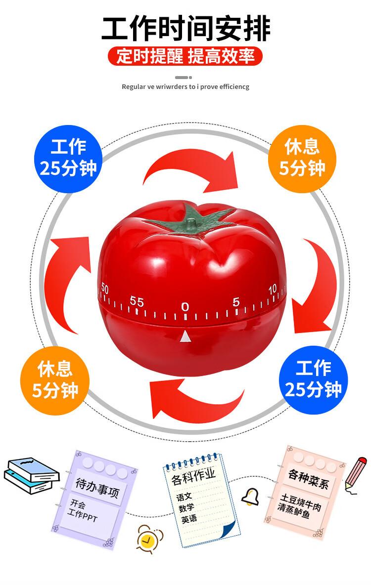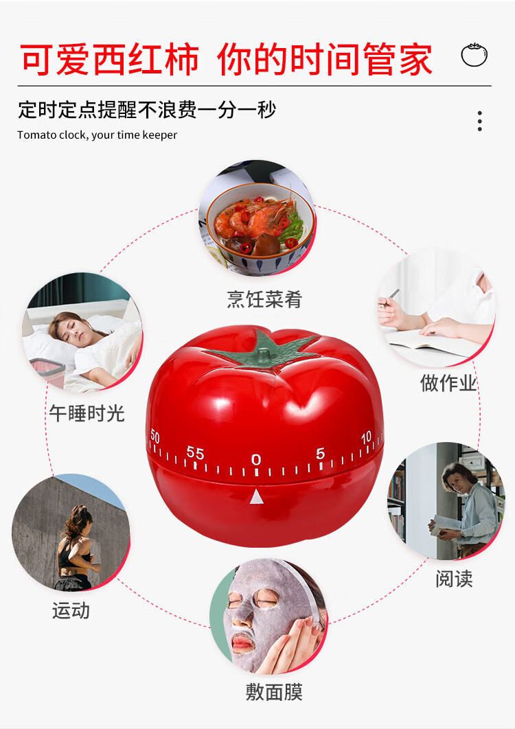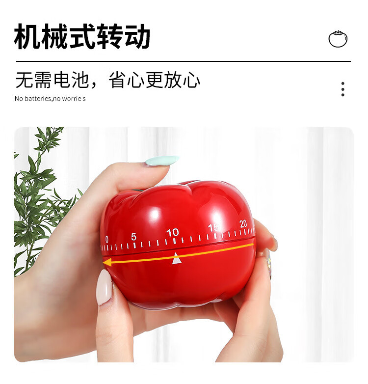 计时器提醒器学生作业时间管理闹钟儿童学习厨房定时器西红柿时钟 【西红柿经典大号】无需电池
