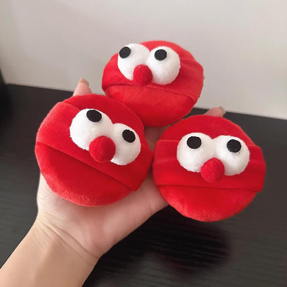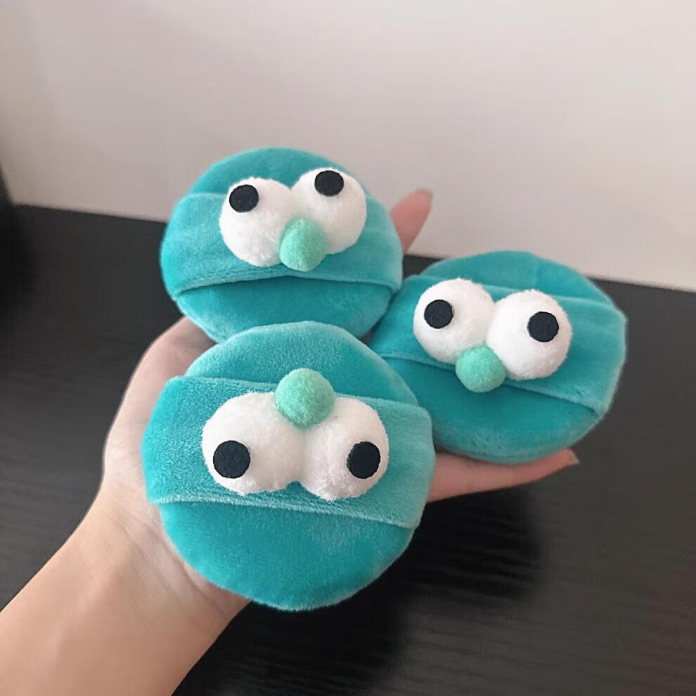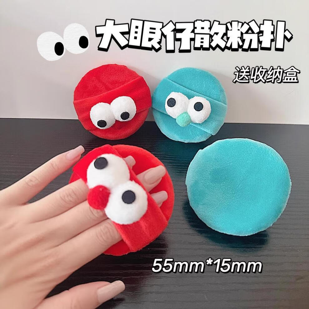 晨爱尚大眼仔毛绒柔软散粉扑大号干粉扑蜜粉扑植绒化妆面扑卡通定妆粉扑 红色大眼怪粉扑 3个