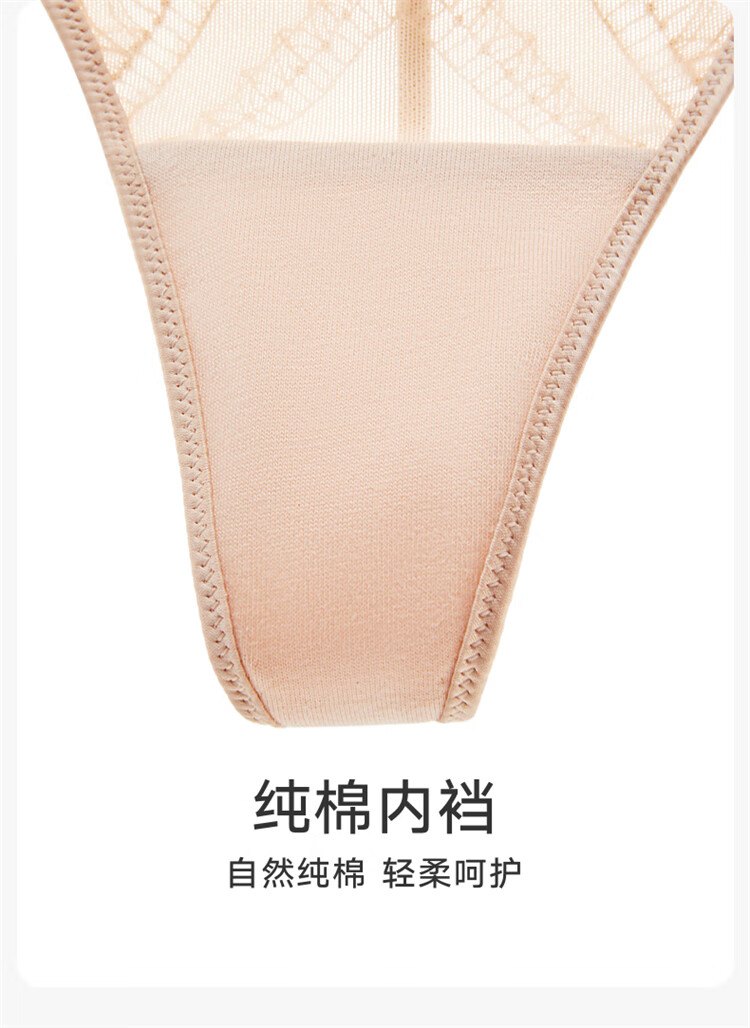 曼妮芬2025春女士舒适纯棉底裆低腰T裤性感内裤蕾丝底裤20612417 110 肤色 M 160/90