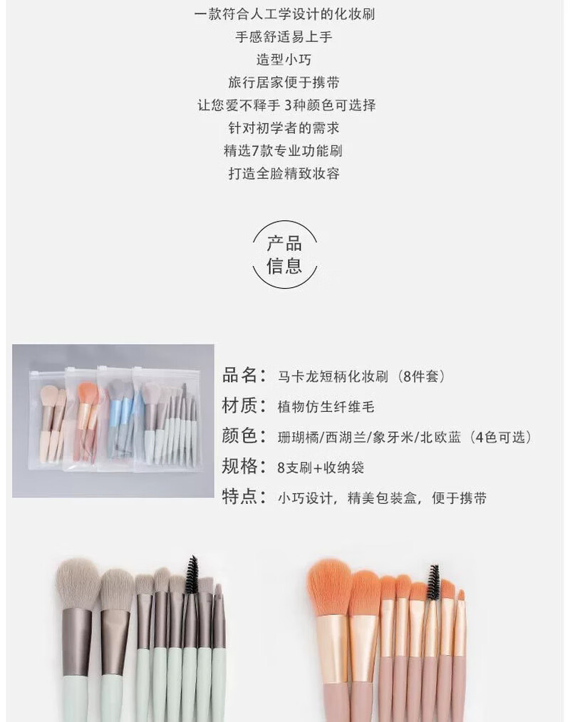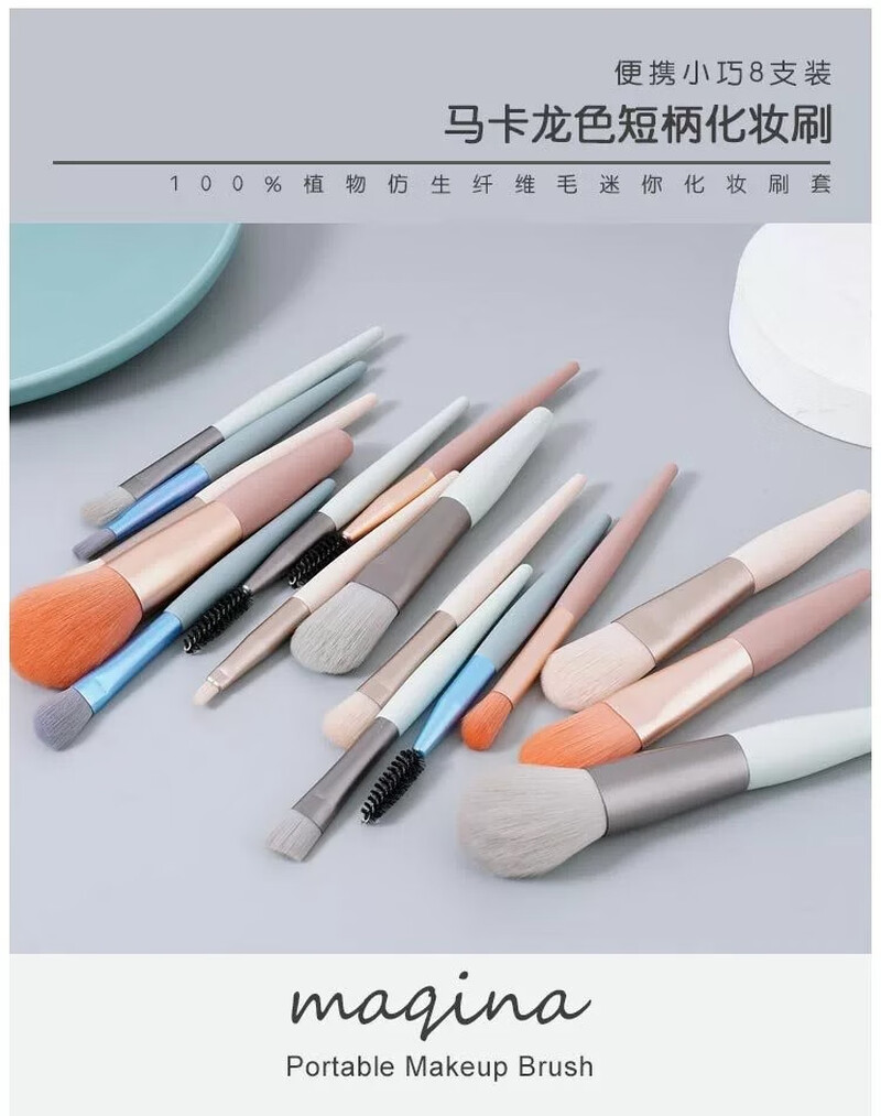 化妆刷全套刷子美妆工具便携随身收纳眼影刷遮瑕刷散粉刷 8支装粉色 1件