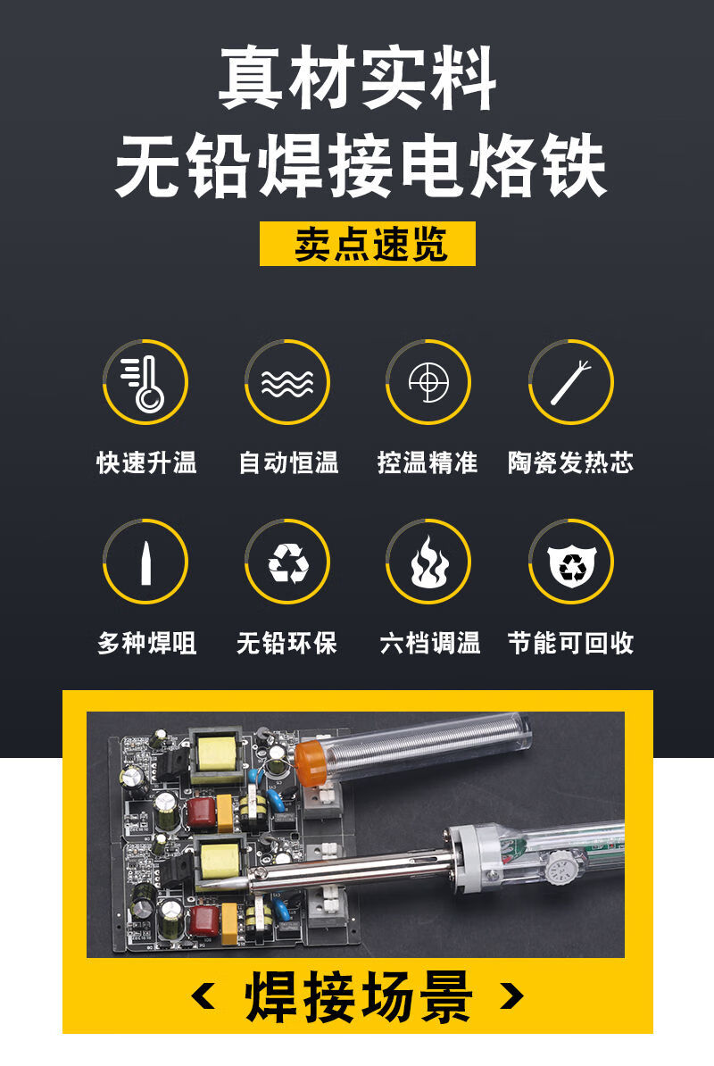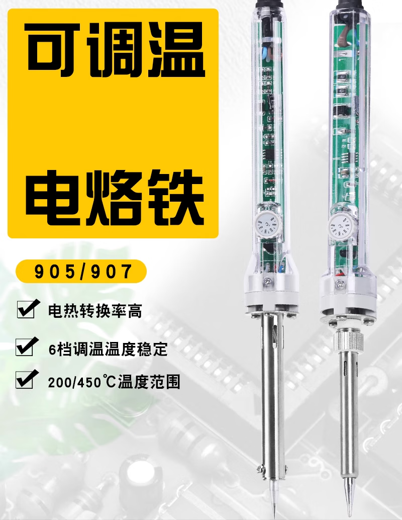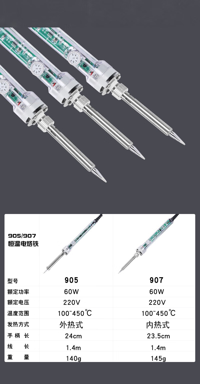 宇檬哲深圳市黄花907可调温内热电烙铁60W外热式恒温洛铁焊接 黄花907电烙铁尖咀内热式
