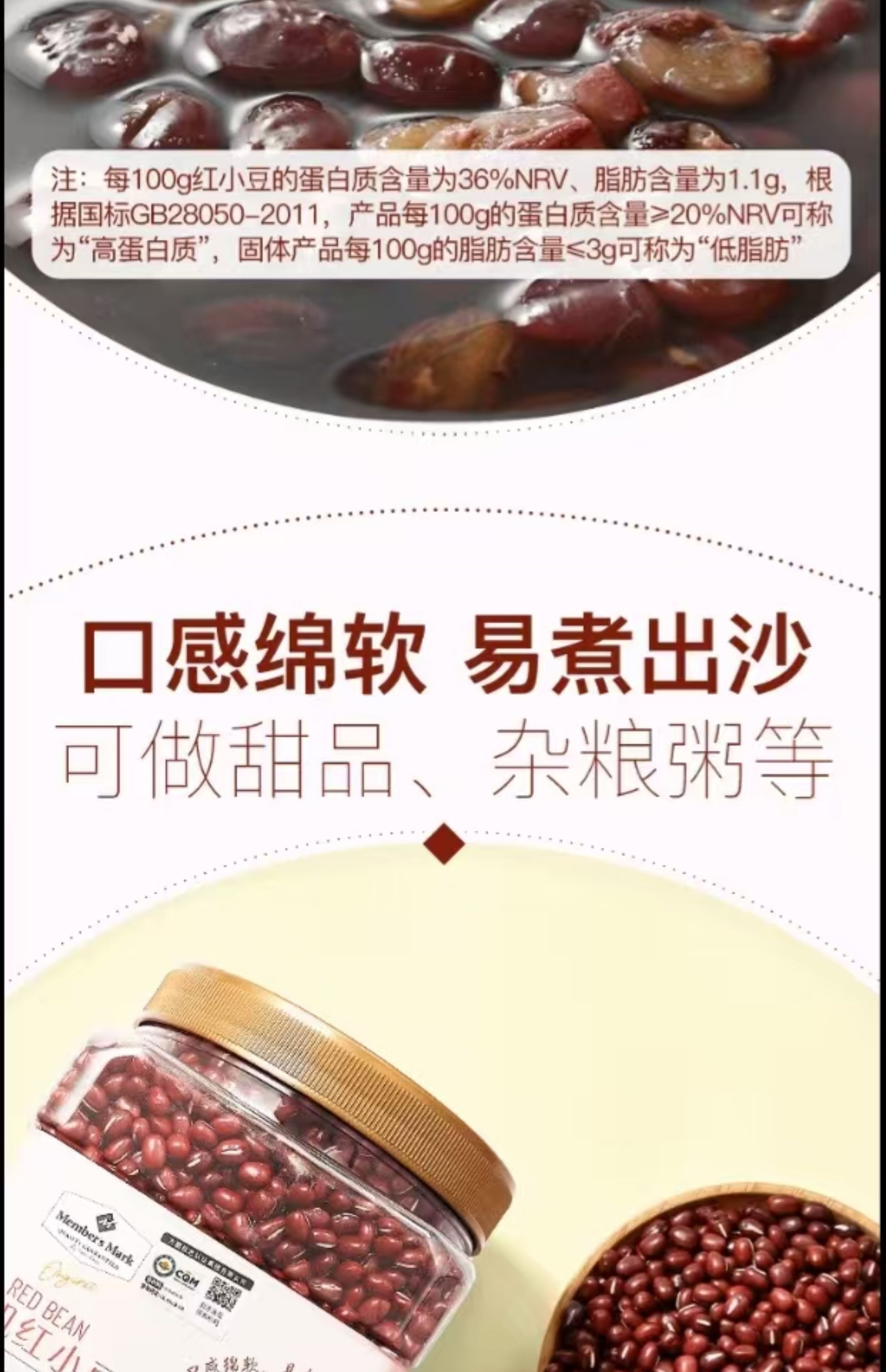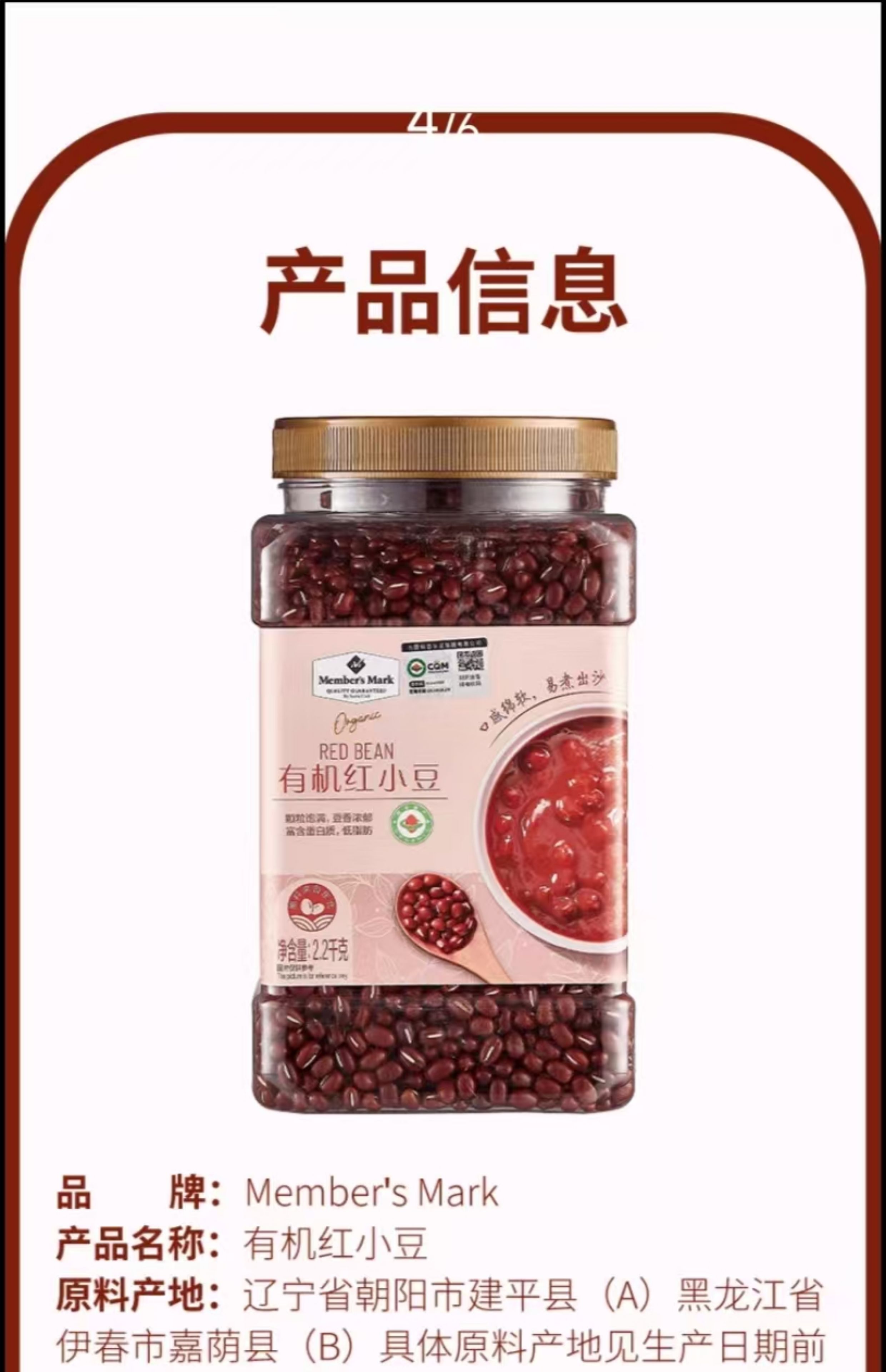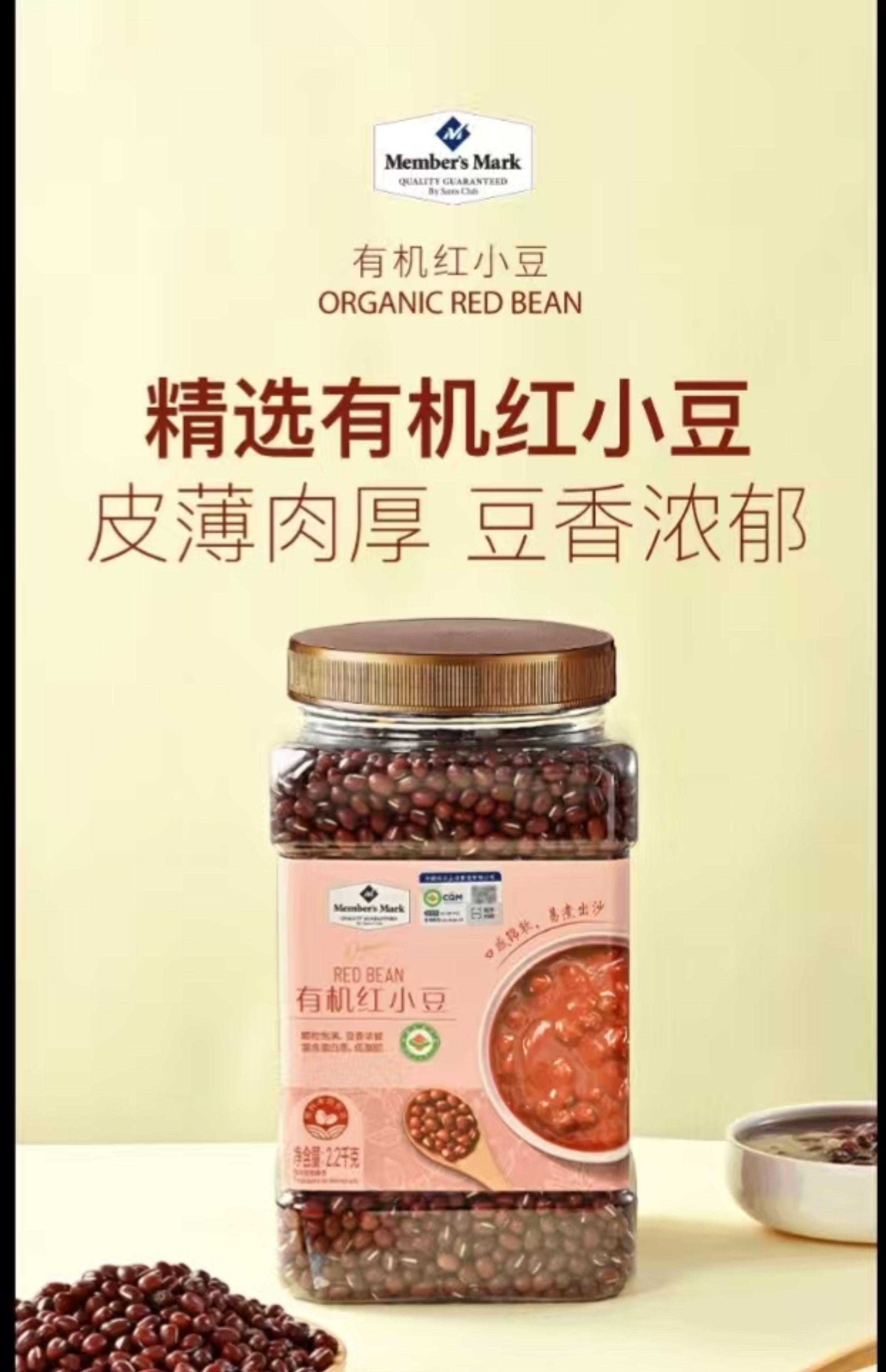 山姆会员超市代购有机红小豆黑龙江有机红豆新货官方旗舰店Member 山姆有机红小豆2.2KG