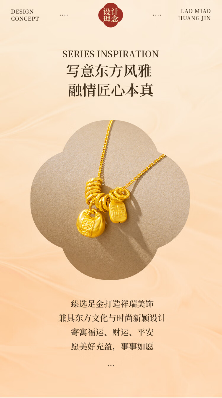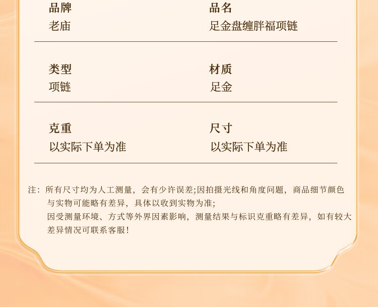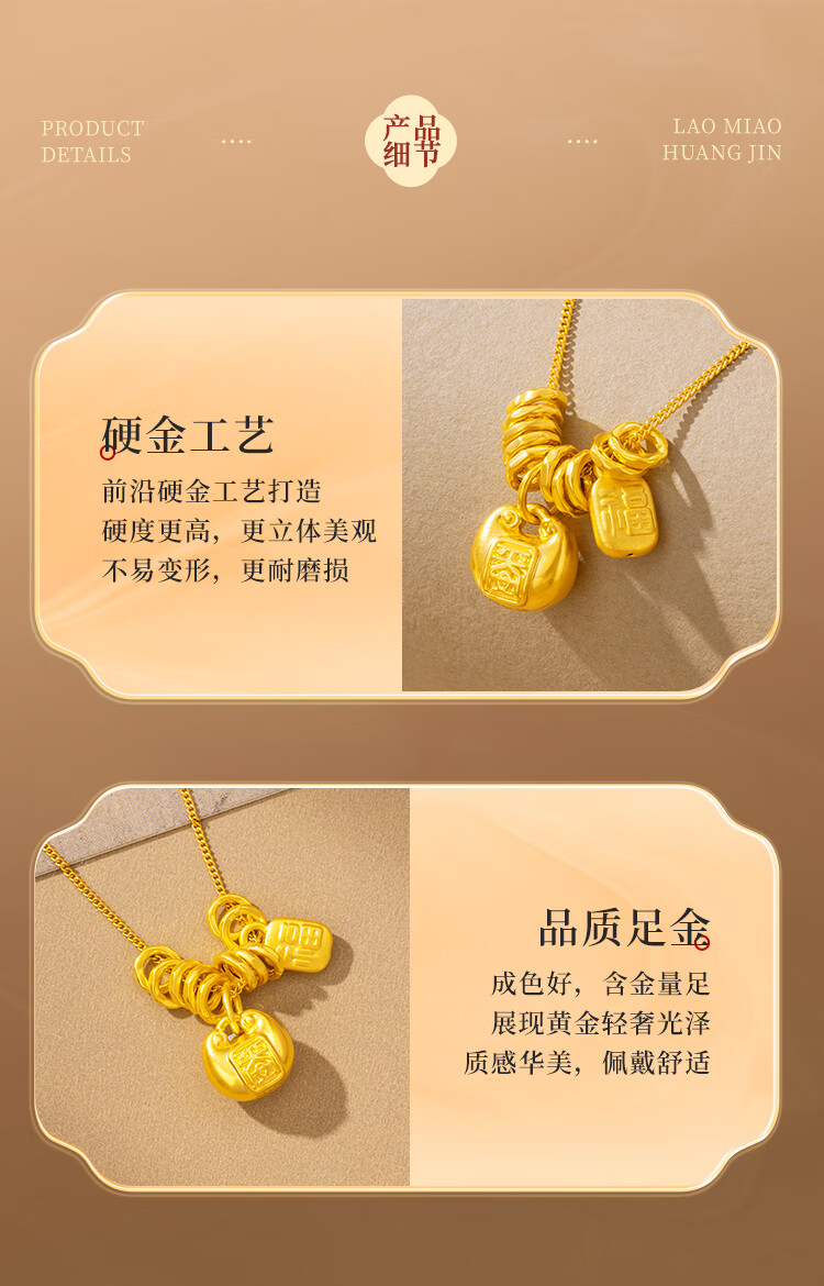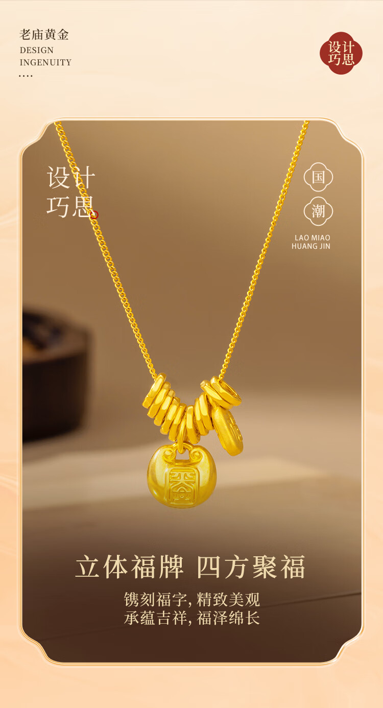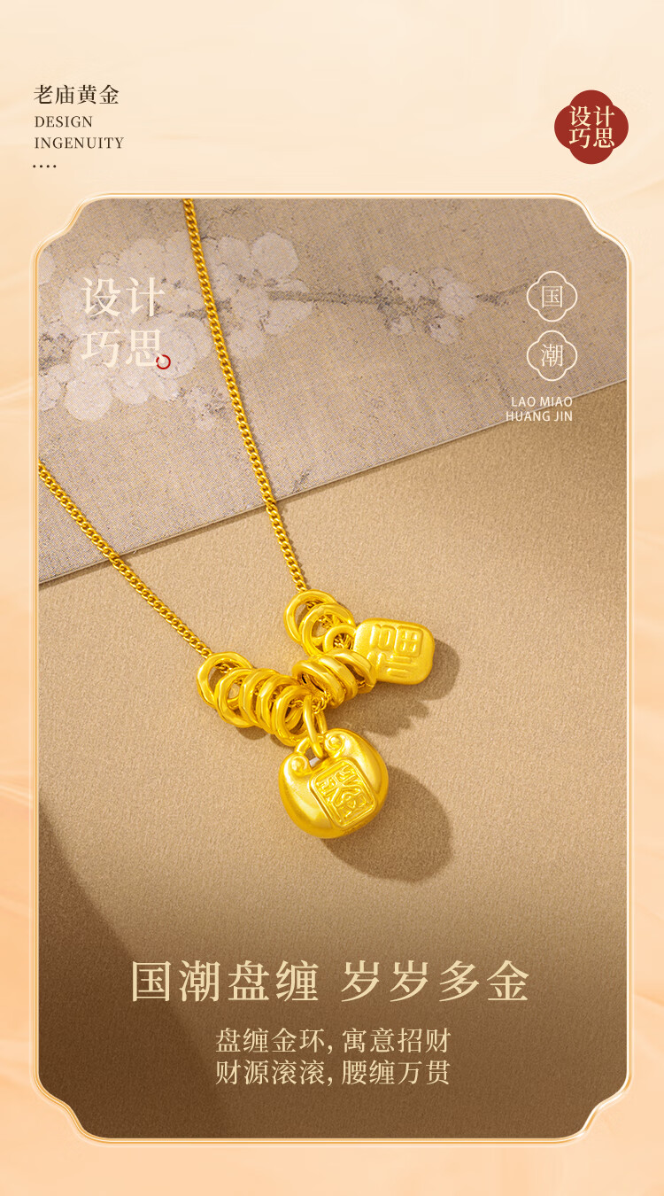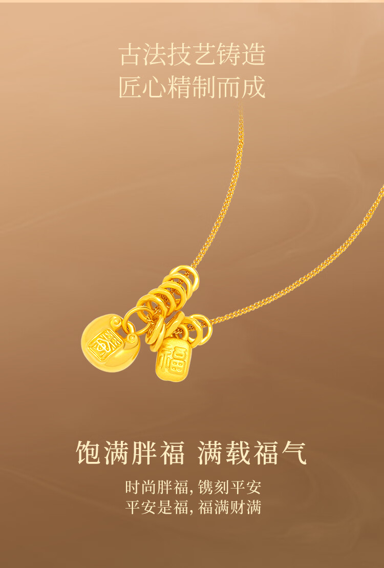老庙黄金吊坠足金盘缠胖福挂坠平安项链送女友老婆生日节日礼物 吊坠/约1.45g(平安胖福)