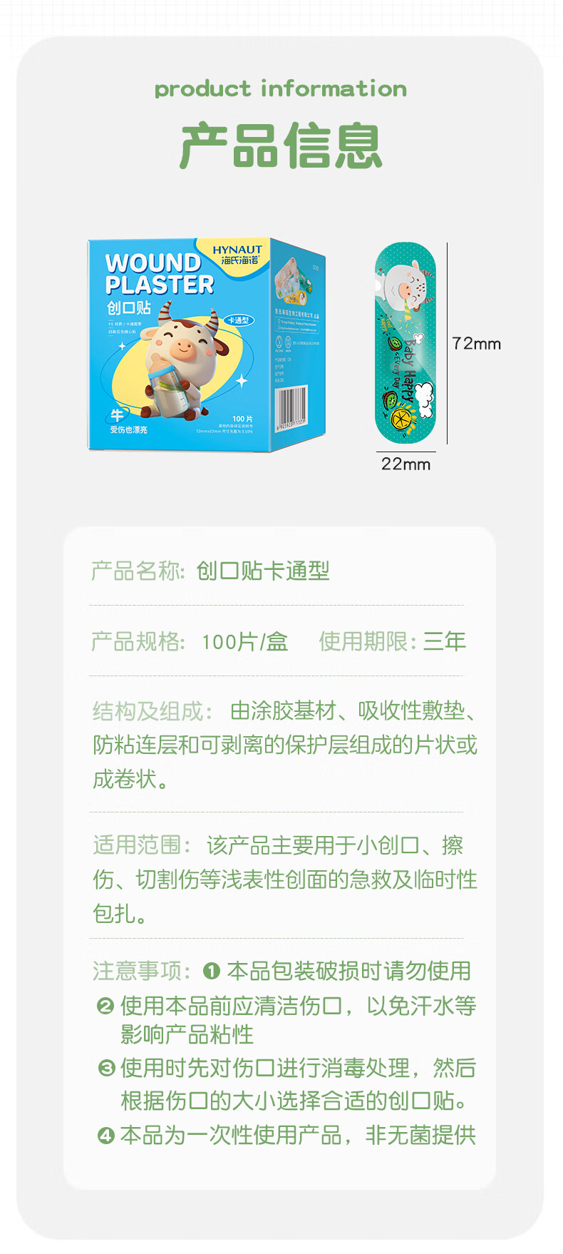 海氏海诺 卡通创可贴 儿童少女可爱图案创口贴防水透气止血贴防磨脚贴