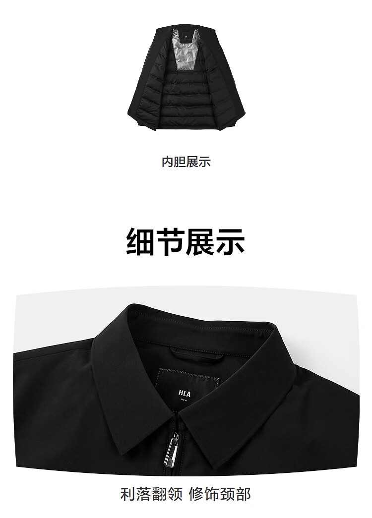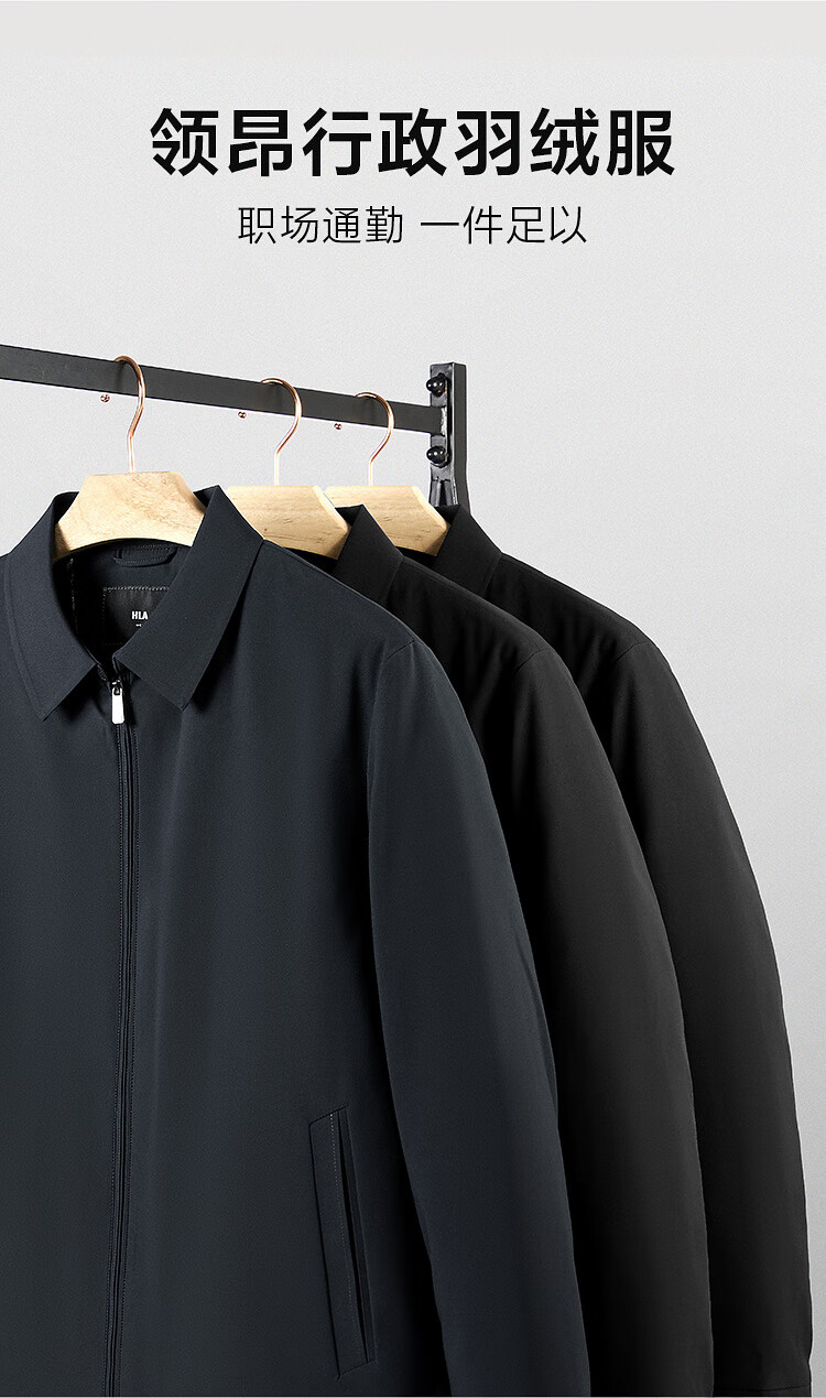 海澜之家(HLA)羽绒服男领昂行政羽绒服商务通勤翻领保暖鸭绒外套男冬季 黑色55 L 175/92A 推荐137~150斤