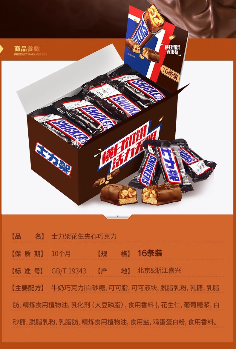 士力架精品16条礼盒装花生夹心牛奶巧克力休闲零食送女友批发c 士力架320g16条精品盒装【2盒】