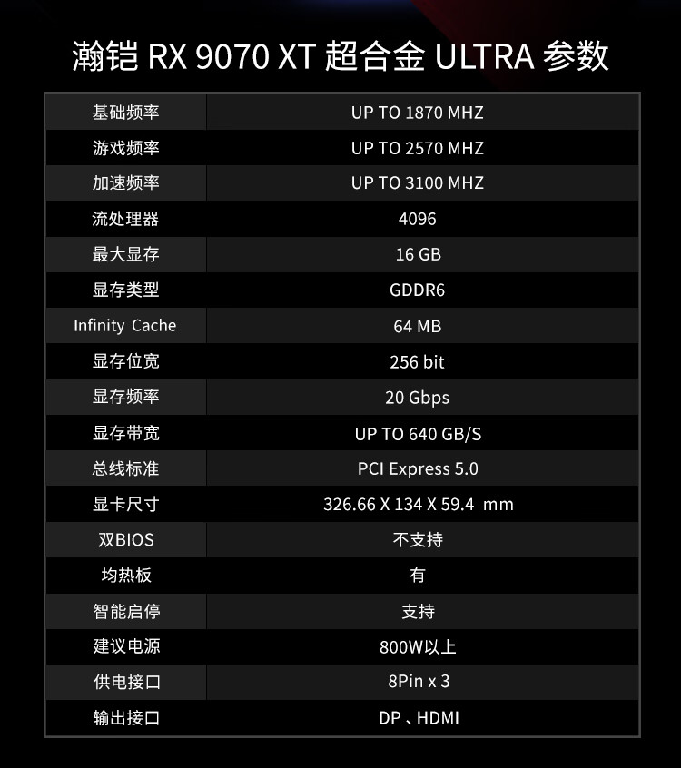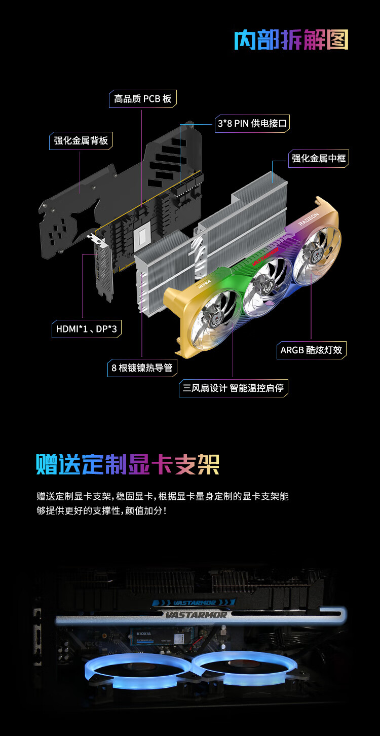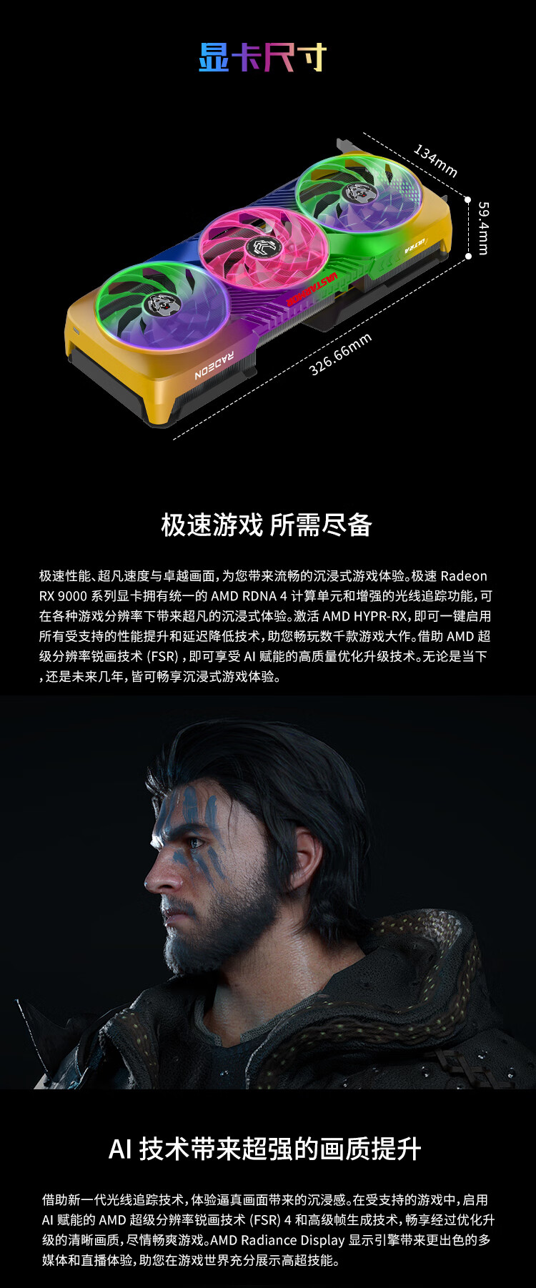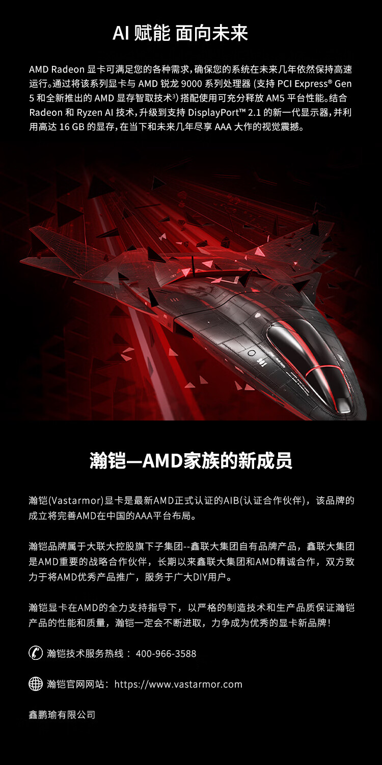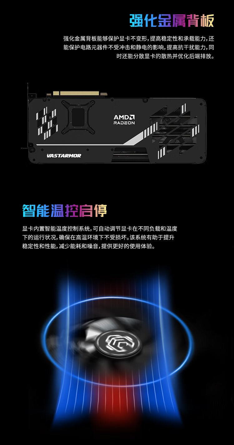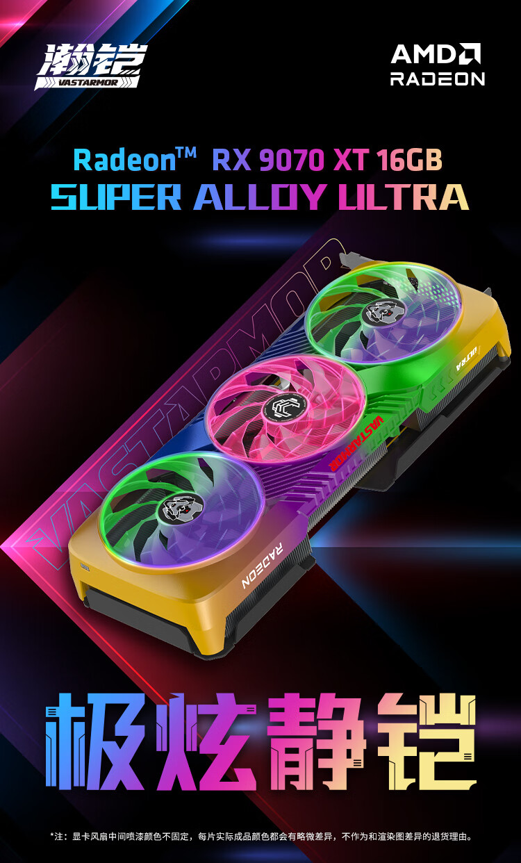 瀚铠(VASTARMOR)AMD RADEON RX 9070 XT 16GB OC 超合金ULTRA 旗舰级超强性能 ARGB灯效 电竞游戏AI显卡