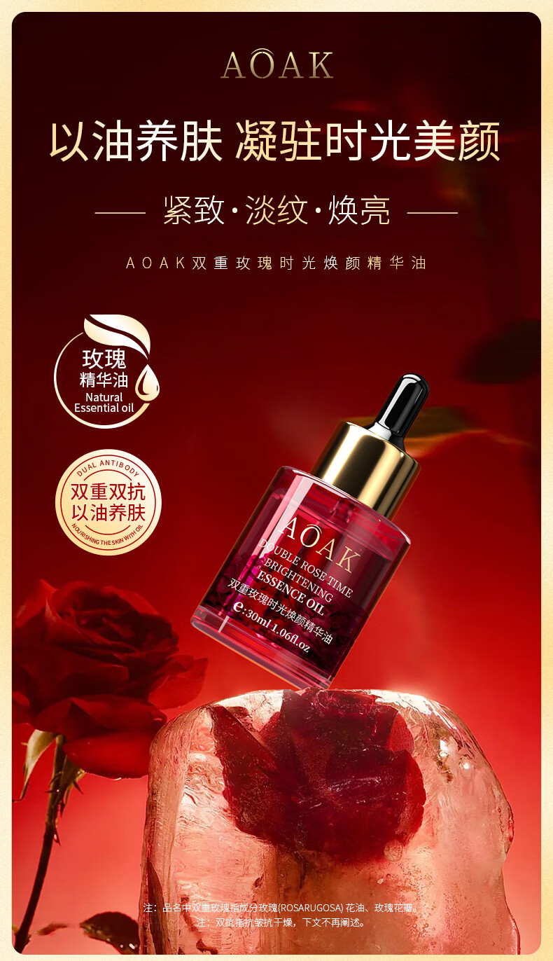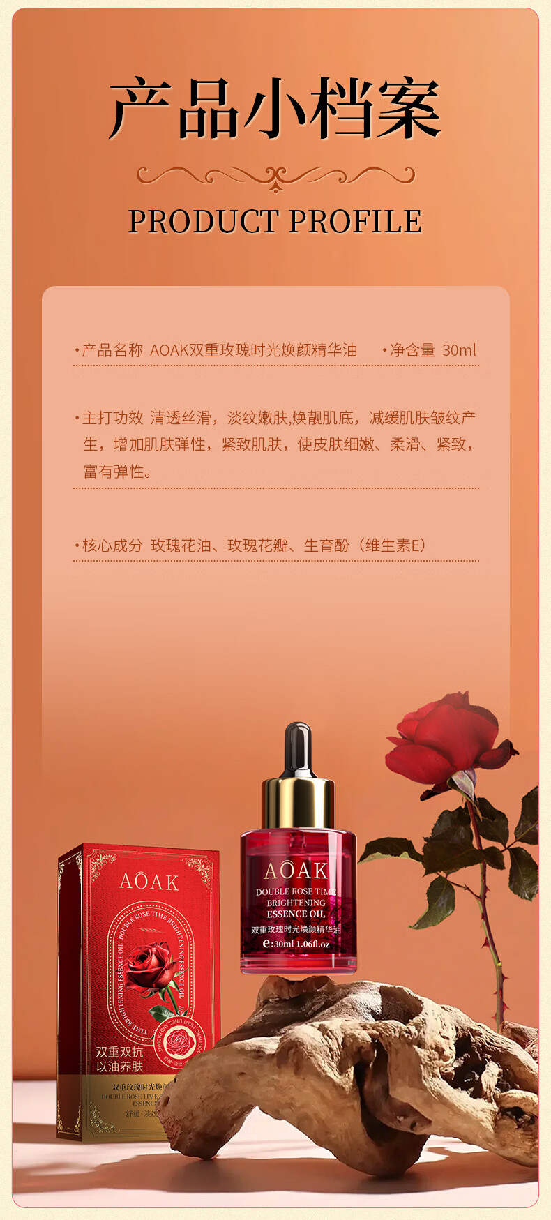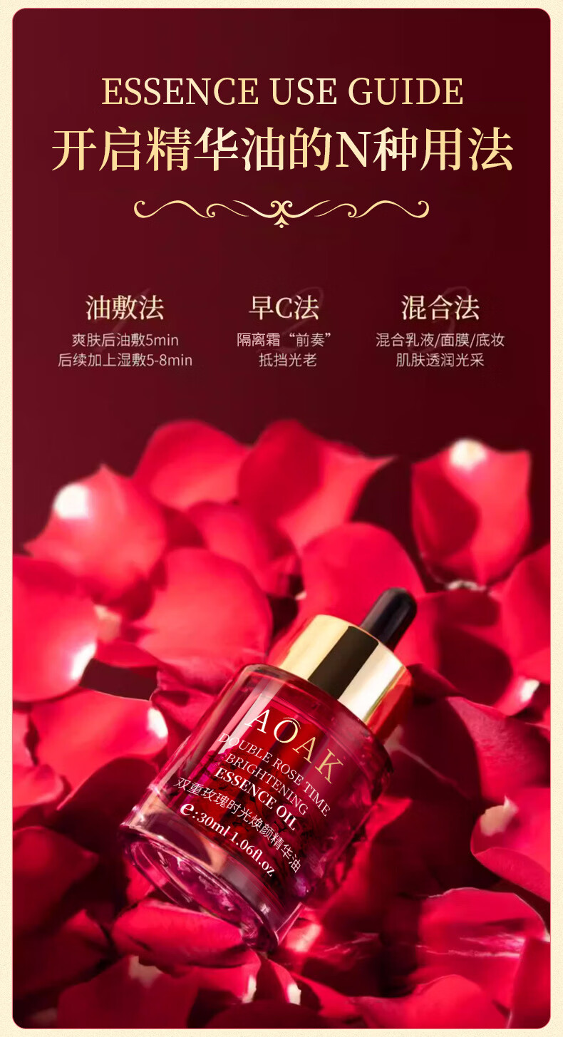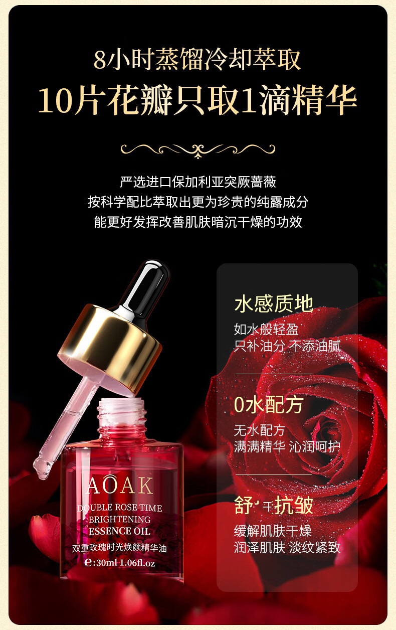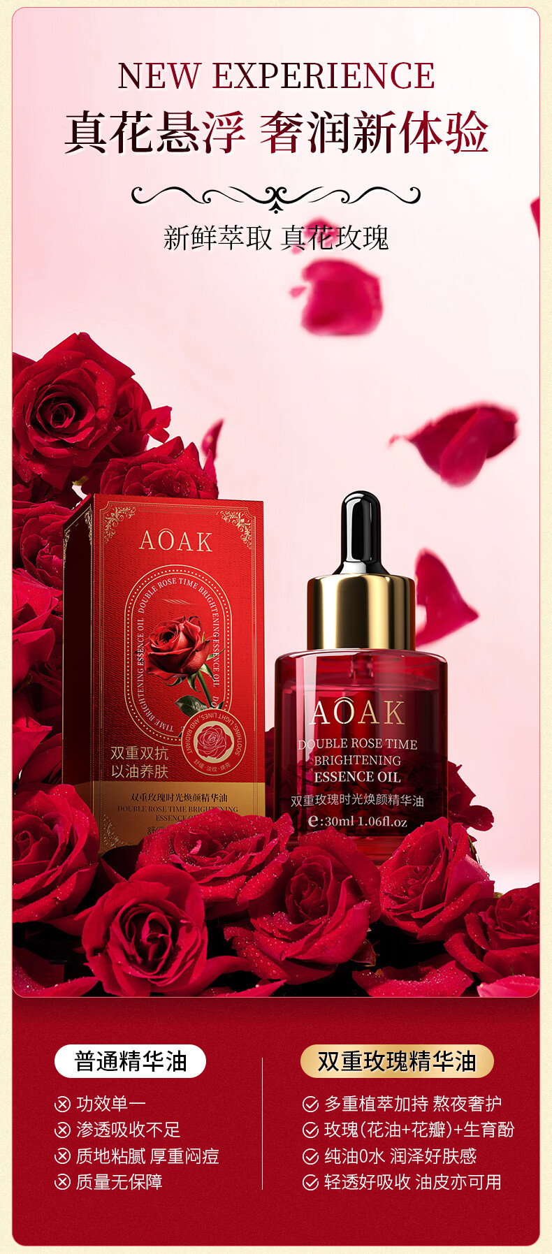 AOAK玫瑰精油面部精华油紧致抗皱护肤以油养肤补水保湿滋润淡纹精华液 抗皱紧致玫瑰精华油30ml/瓶
