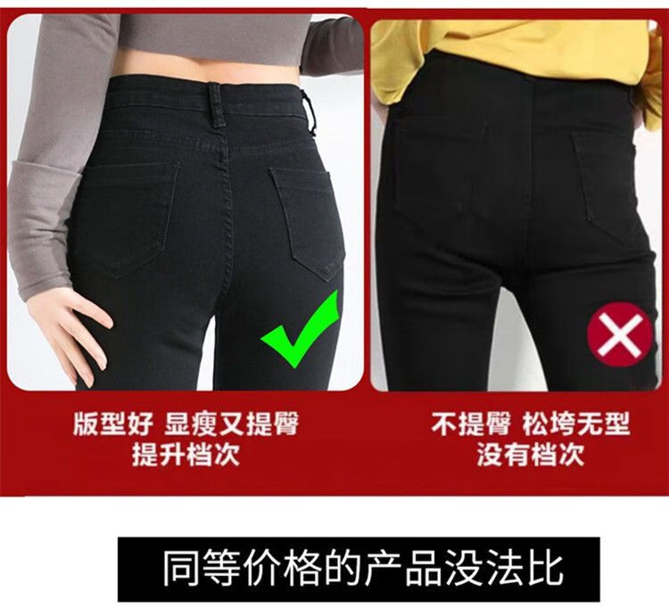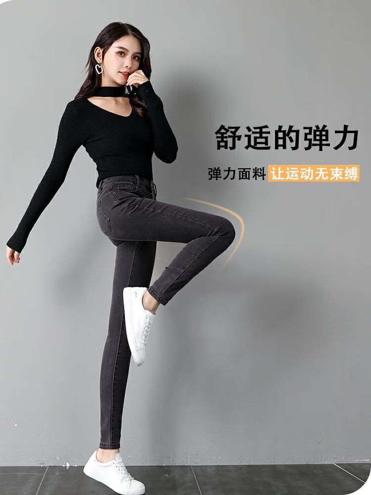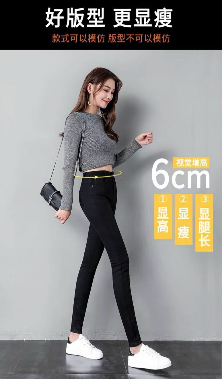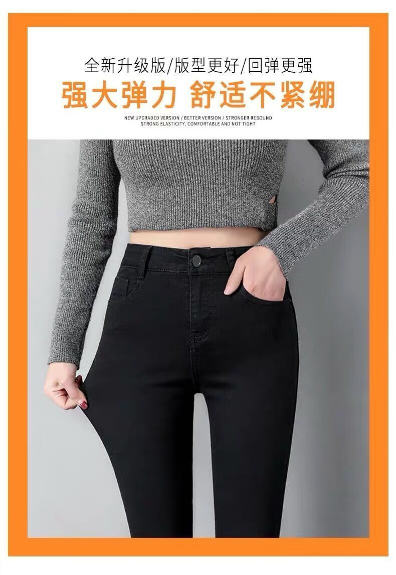 舒翎黑色高腰紧身小脚牛仔裤女2025春夏新款弹力百搭修身铅笔裤打底裤 黑色九分[不加绒单裤] 25 [1尺8腰] 75到84斤