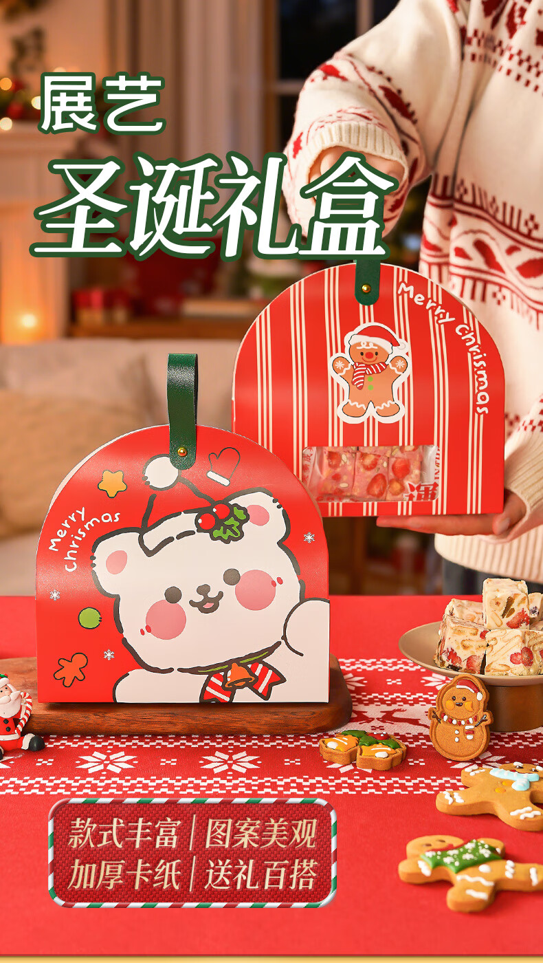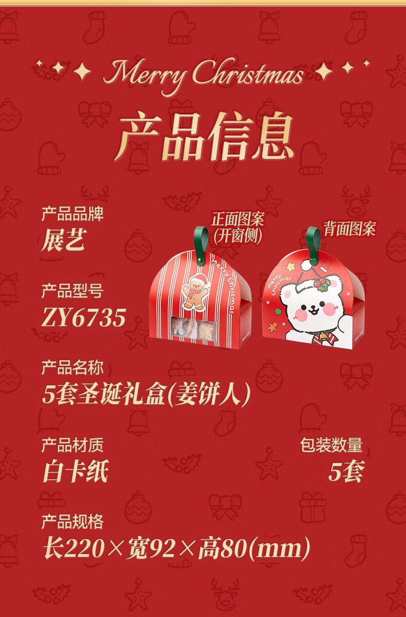 展艺包装礼盒5套 糖果饼干曲奇溶豆雪花酥手提袋伴手礼物袋新年姜饼人