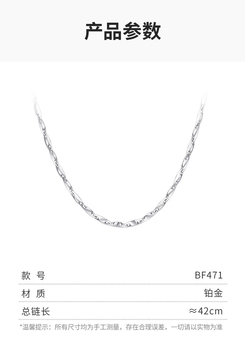 谢瑞麟(TSL)新年礼物铂金项链简约Pt铂金素链女士锁骨链BF471