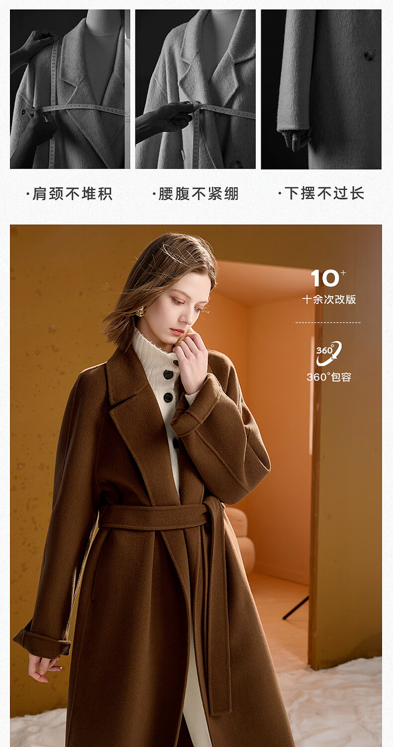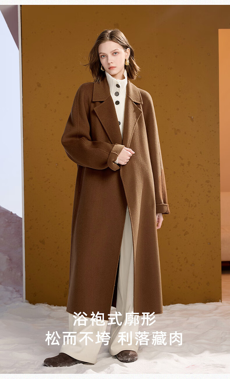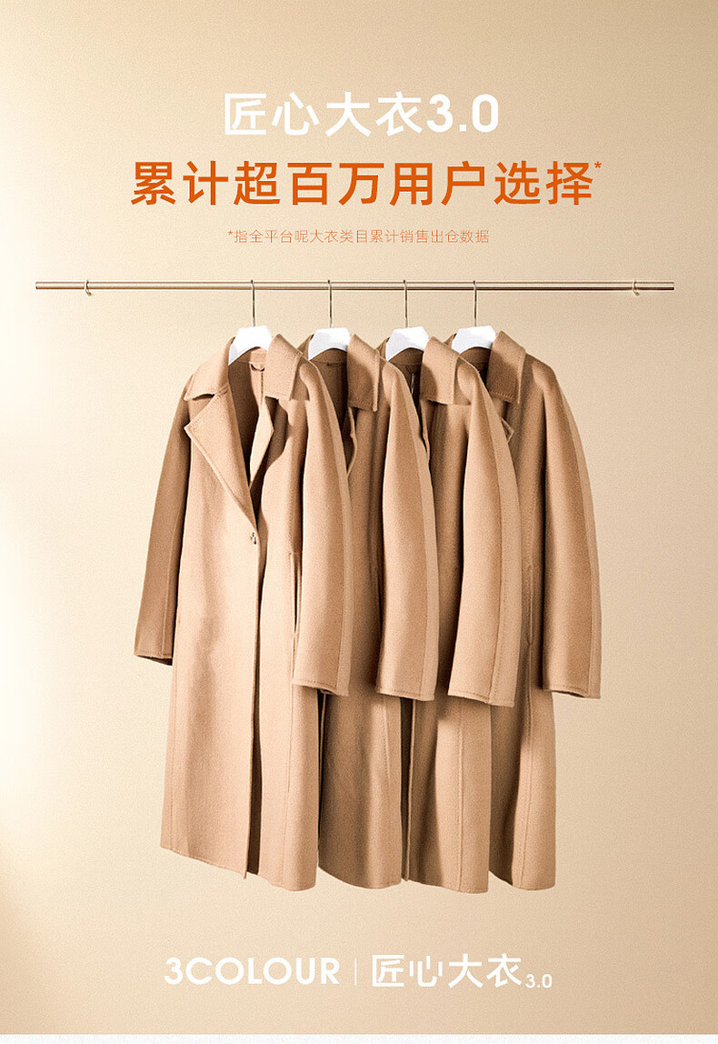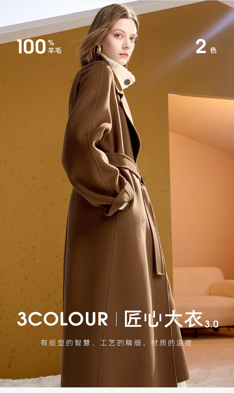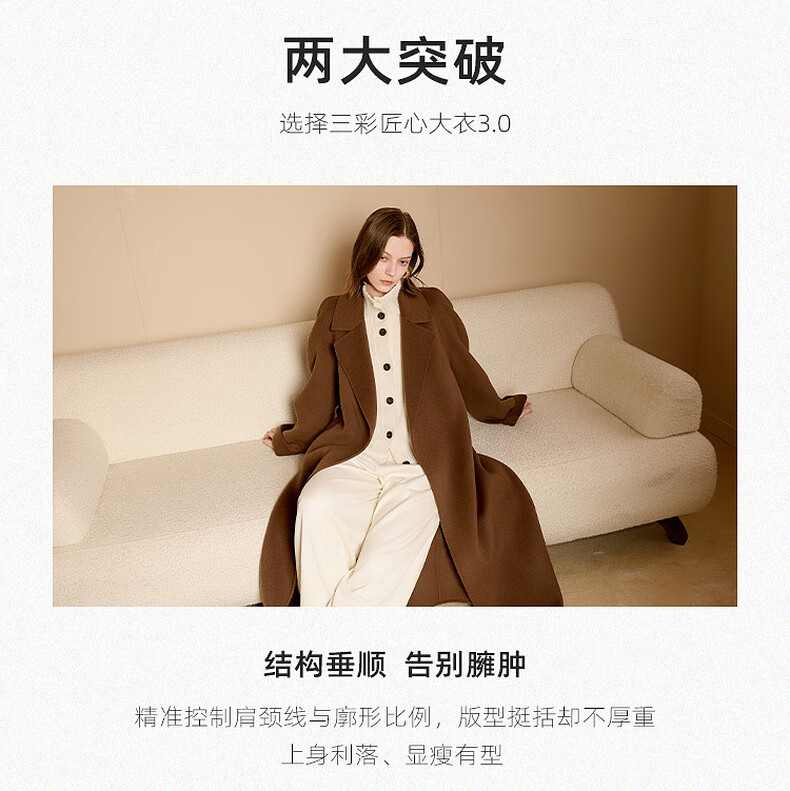 三彩【匠心大衣】100绵羊毛三彩2025冬季新款翻领双面毛呢外套长款女M