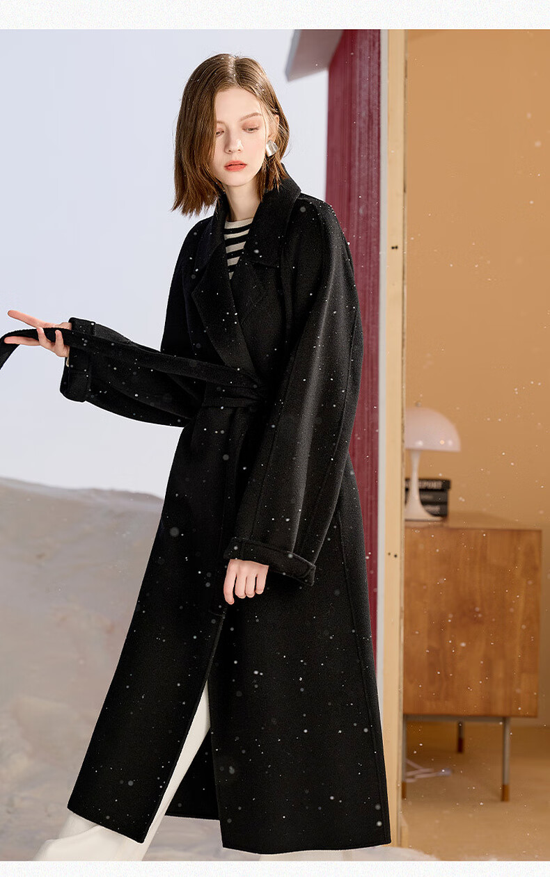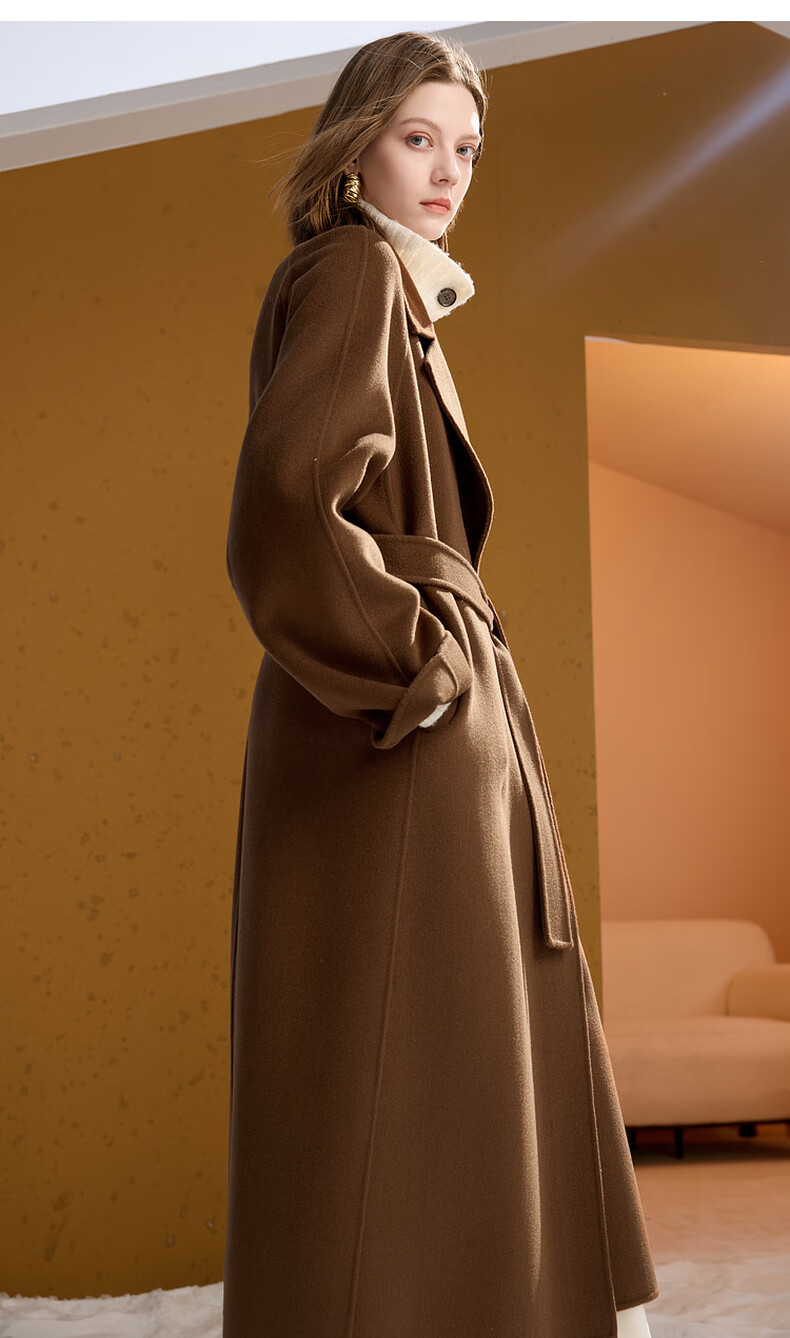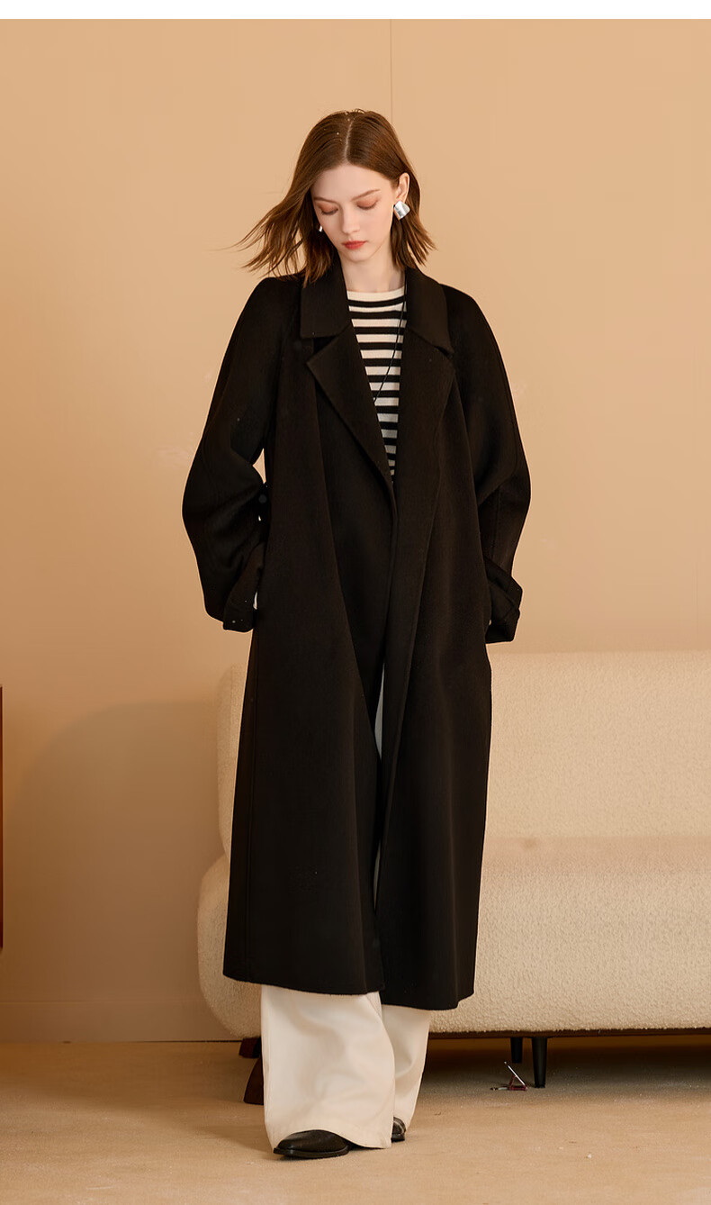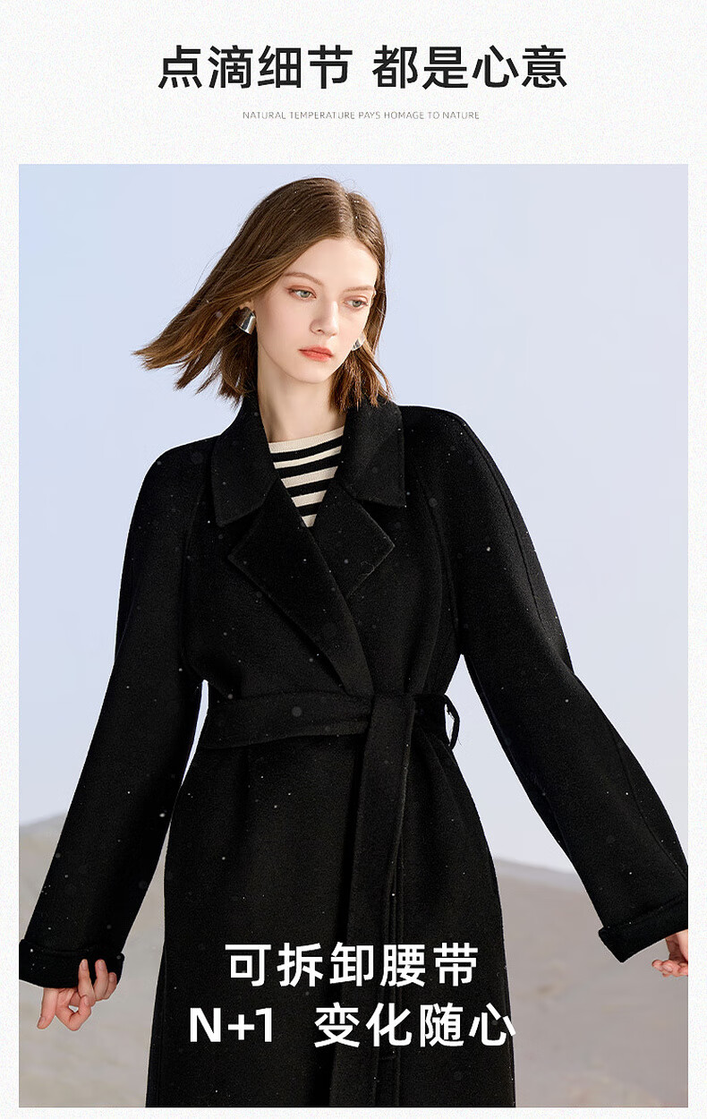 三彩【匠心大衣】100绵羊毛三彩2025冬季新款翻领双面毛呢外套长款女M