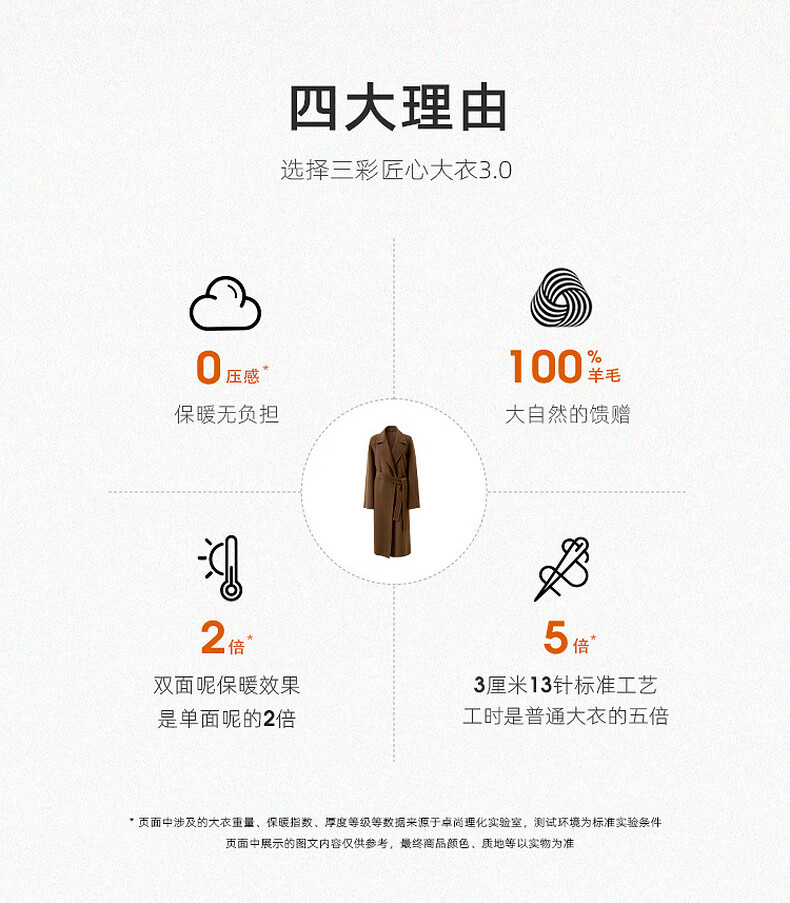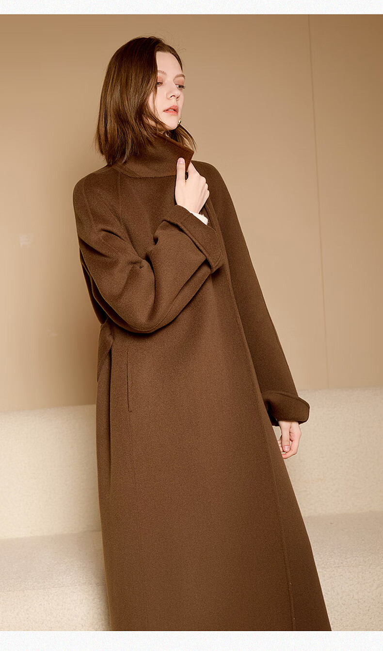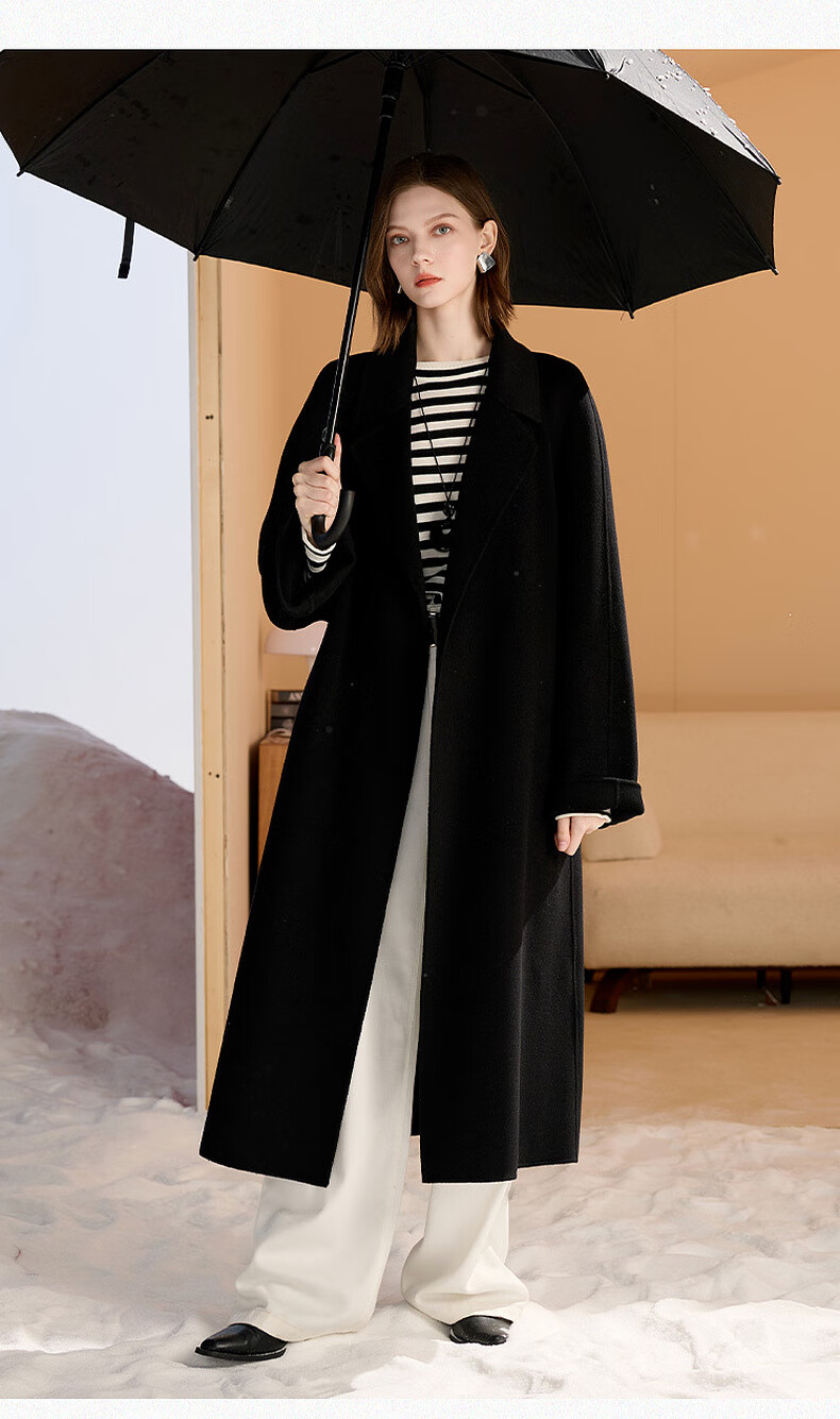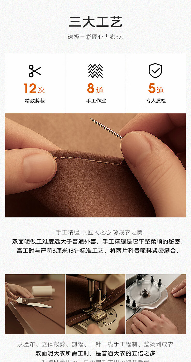 三彩【匠心大衣】100绵羊毛三彩2025冬季新款翻领双面毛呢外套长款女M