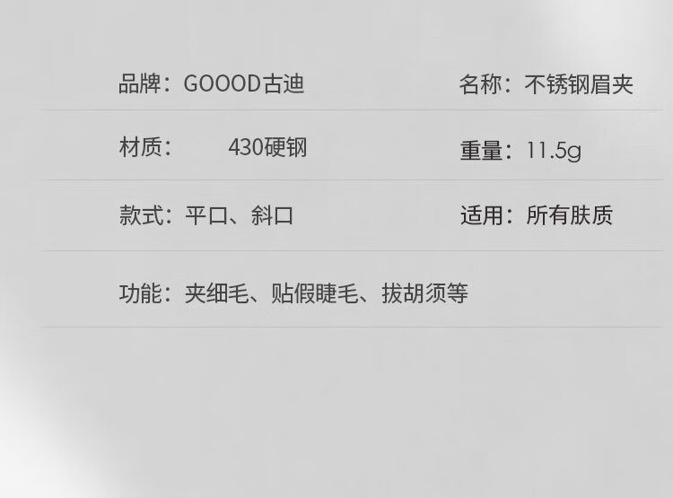 古迪GOOOD 高精密眉毛夹小镊子眉夹修眉拔毛钳假睫毛夹子拔胡子套装