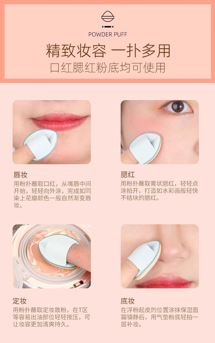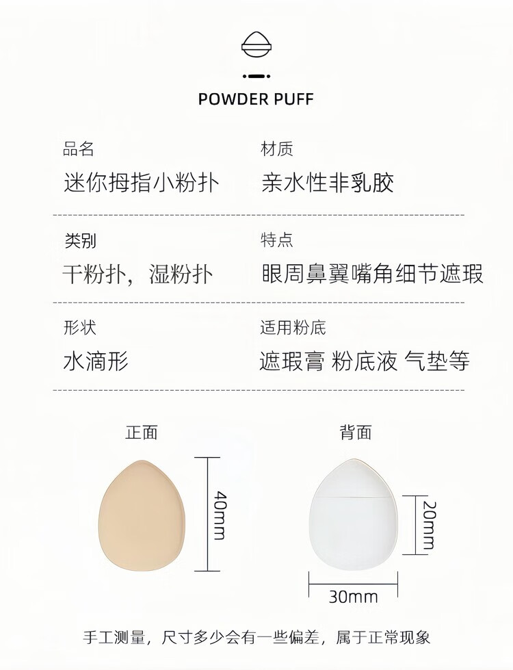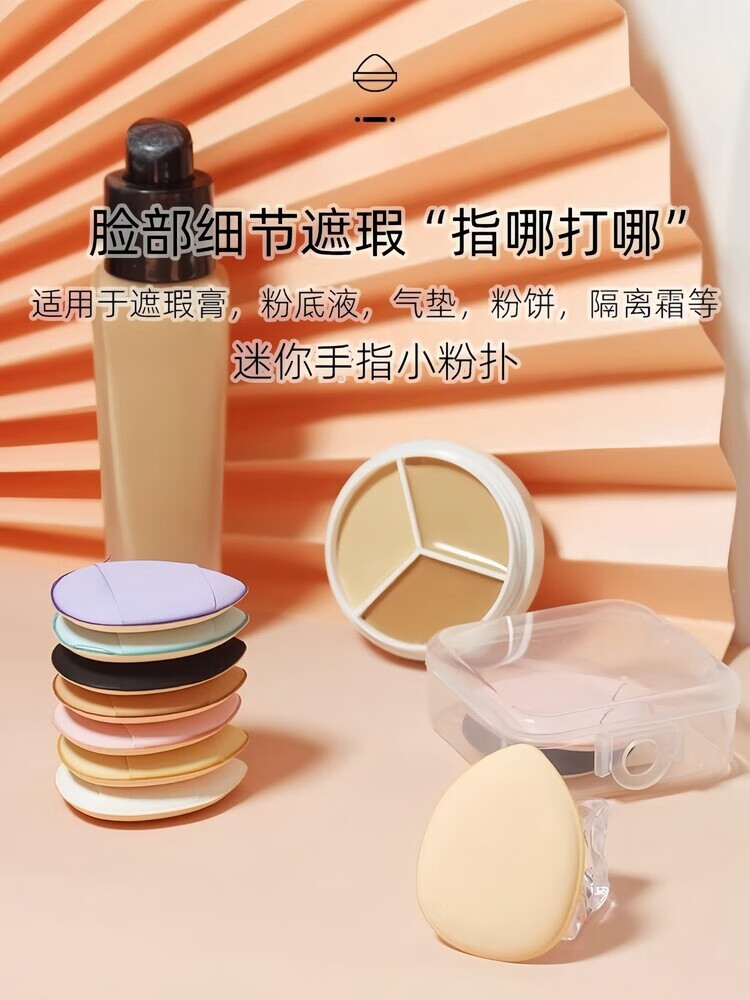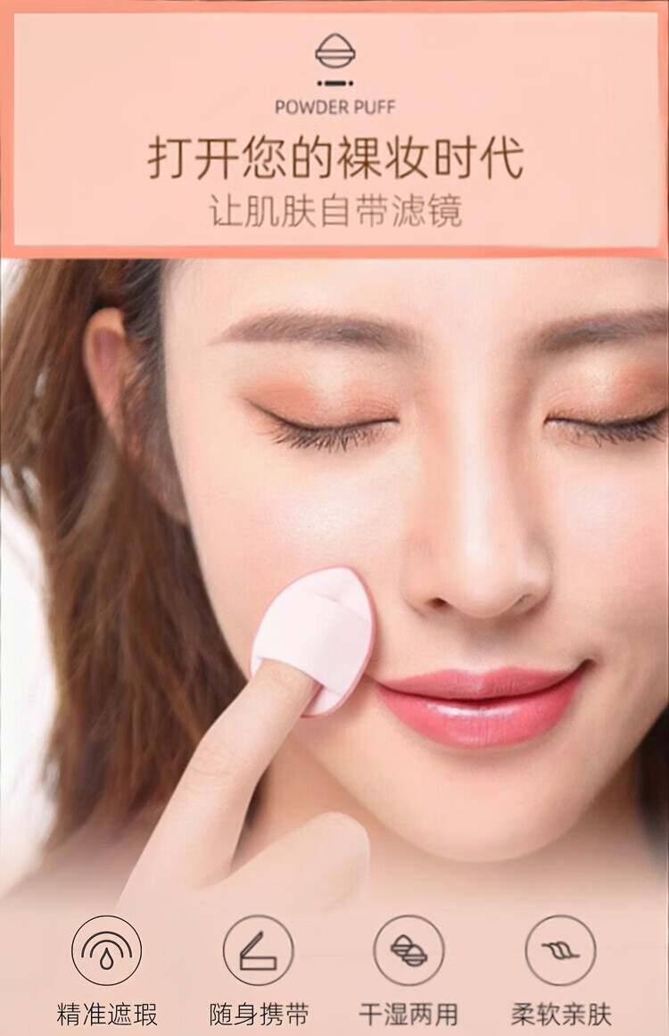 睫蓓手指拇指小粉扑指腹粉扑尖头定妆小号指尖气垫mini精准遮瑕小拖鞋 【2个】 细节粉扑 闭眼入 颜色随机 1件