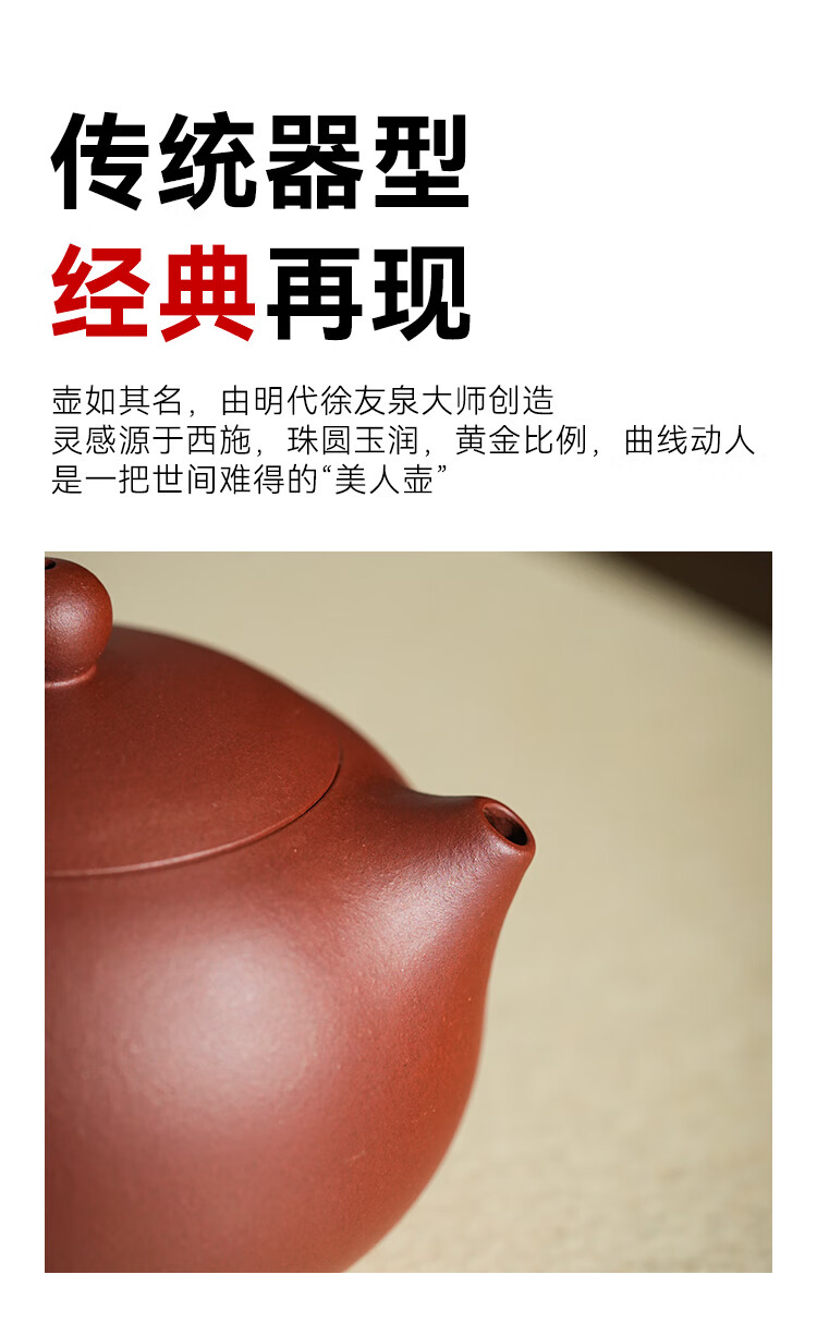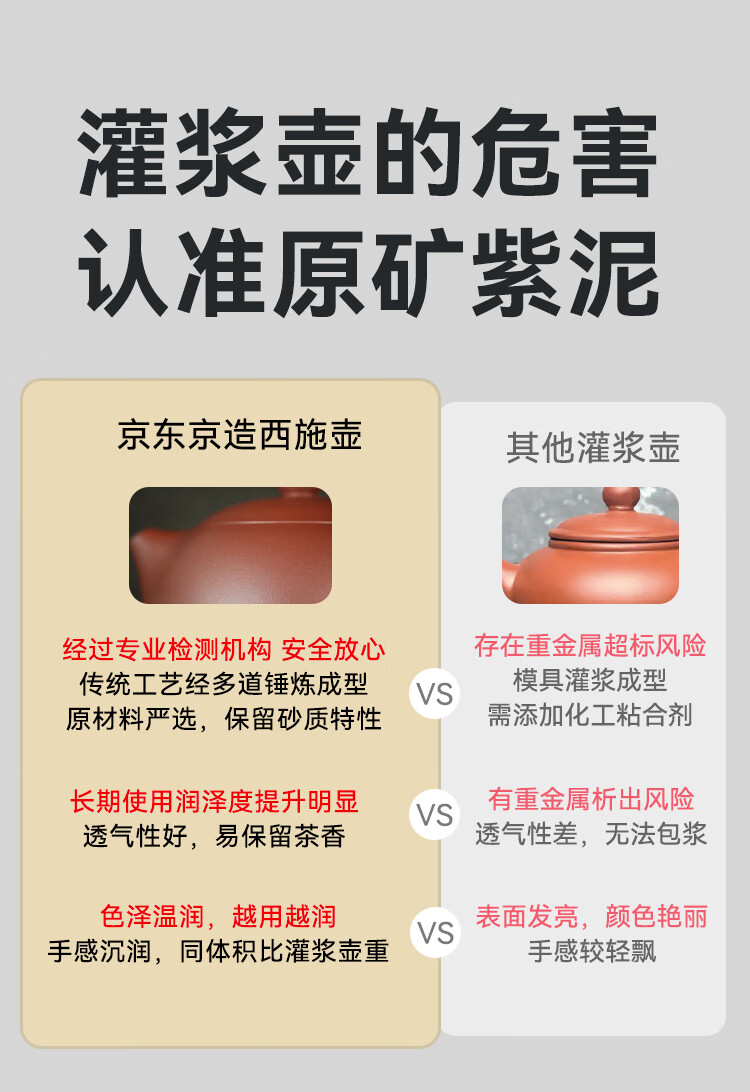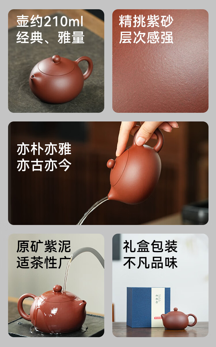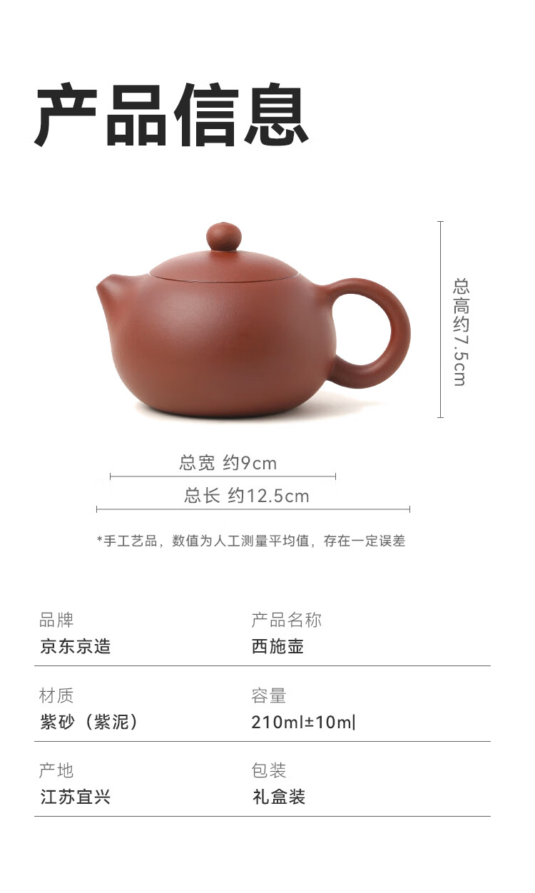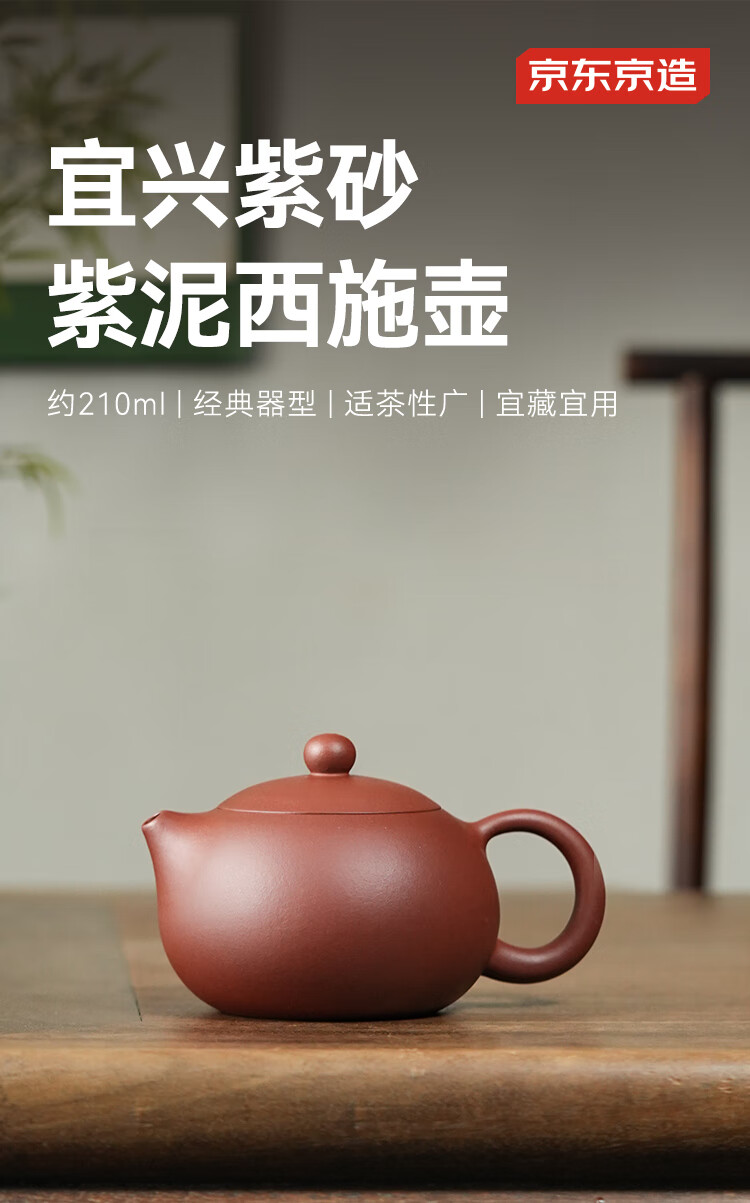 京东京造 宜兴紫砂壶 手工【原矿紫泥】煮茶泡茶壶茶具 西施壶210ml